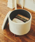 ●座面を開けるとたっぷり収納でき、ブランケットや小物の収納におすすめ。