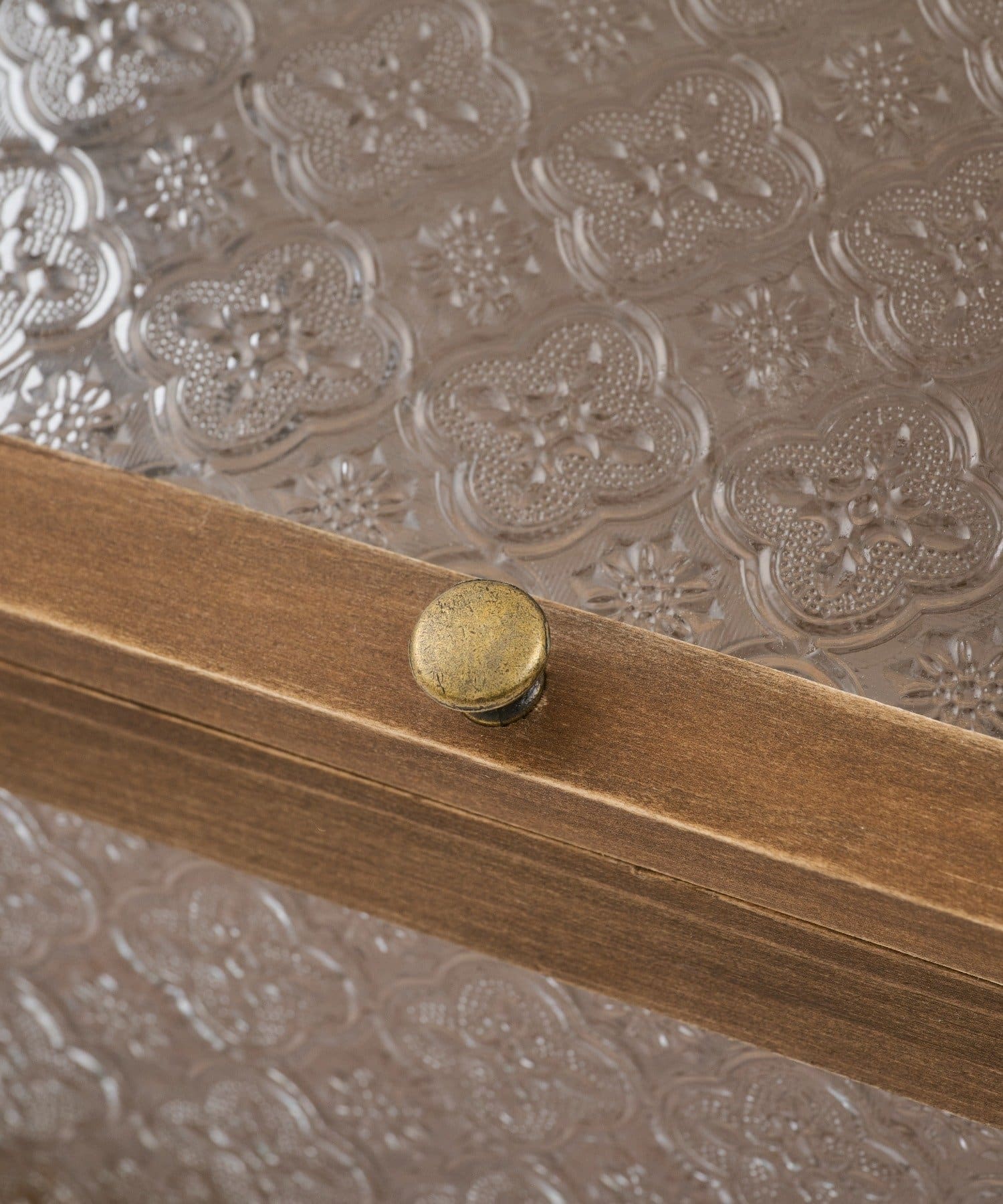 ●花柄の型押しが可愛らしいフローラガラスを使用したワイドキャビネット。