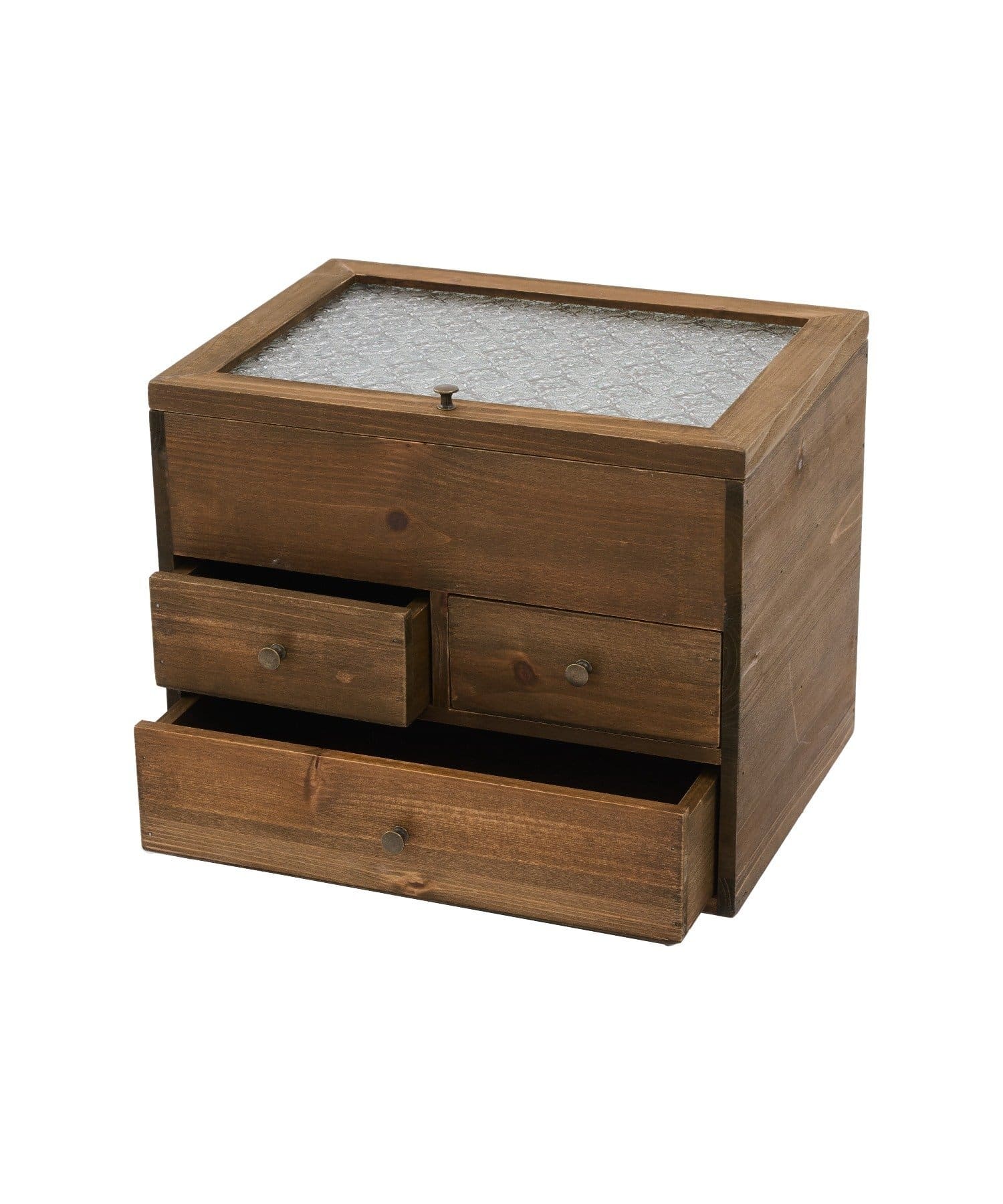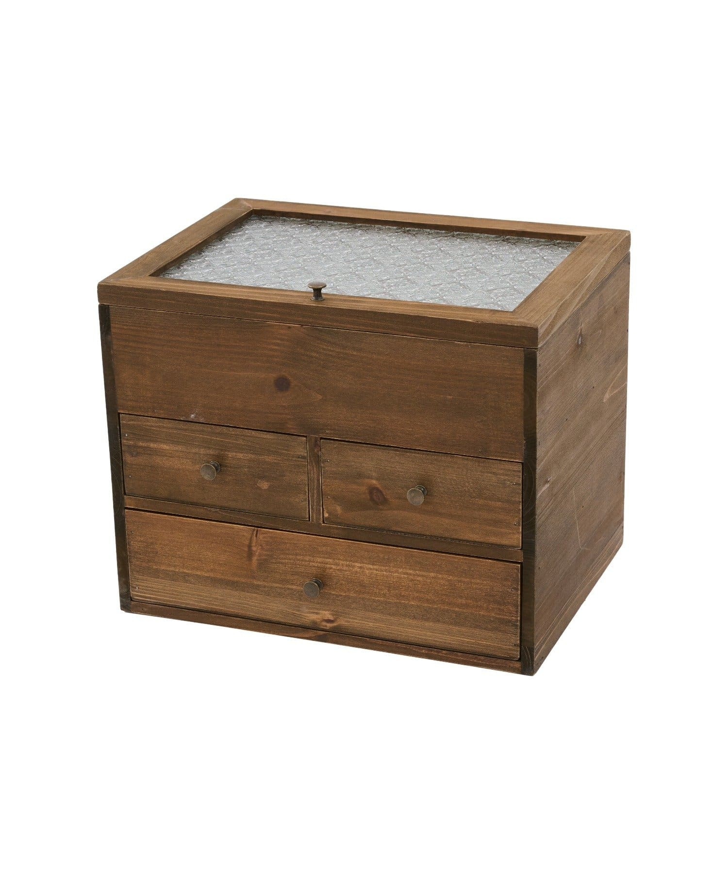 ●花柄の型押しが可愛らしいフローラガラスを使用したマルチ引き出しボックス。