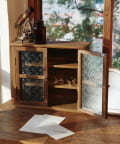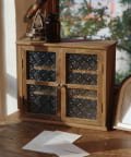 ●レトロな花柄のフローラガラスを使用したアンティーク調の両開きキャビネット。