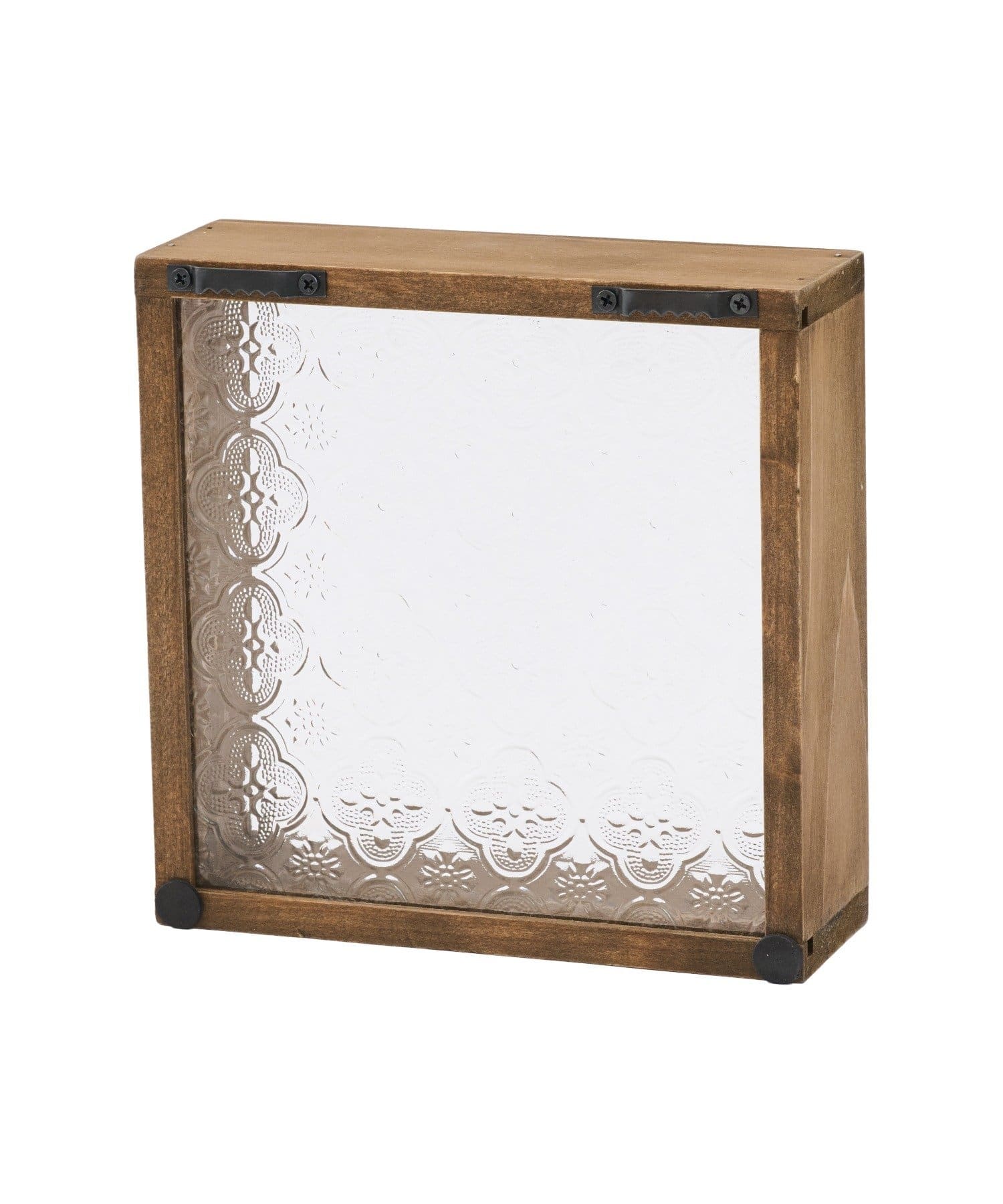 ●レトロな花柄のフローラガラスを使用した正方形のウッドボックス。