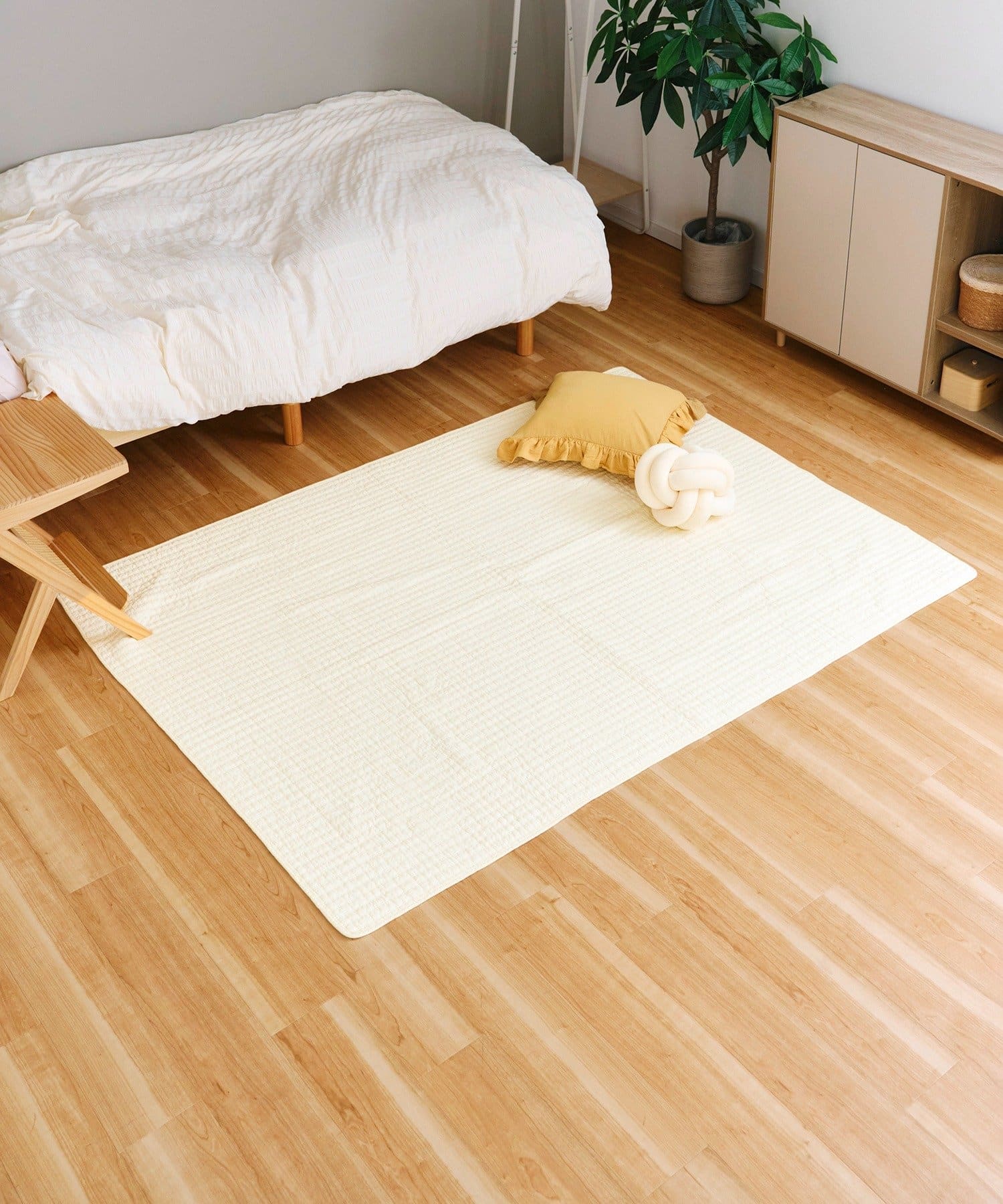 ●ふんわりやわらかいオフホワイトのキルトマット。