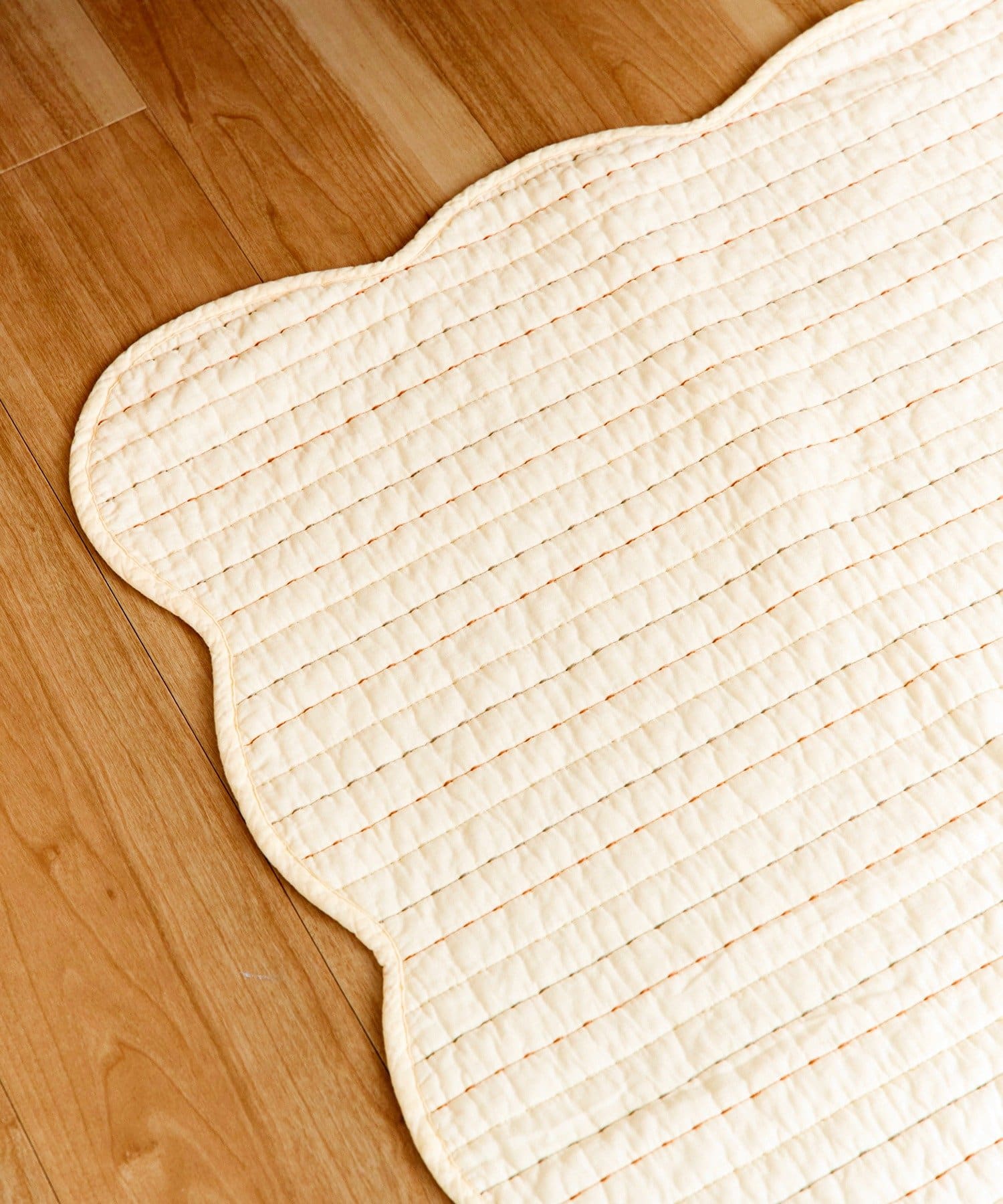 ●等間隔に施されたボーダー柄のステッチがアクセントのキルトマット。