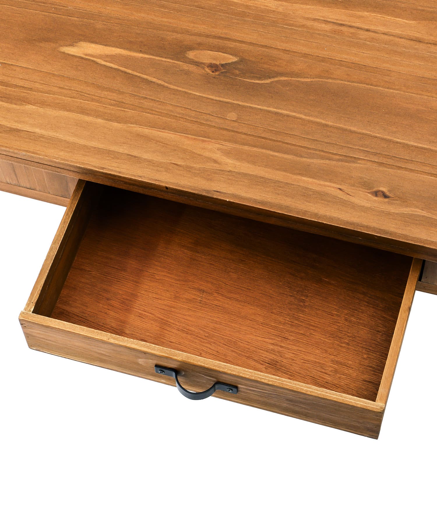 色味はいい感じですが、組立後に引き出しを開けると支えている細い木材が割けていました。その後交換の手続きをして1週間ほどで交換品がきましたが、開けてみると今度は机の天板の部分に木材の割けが…大きい重い商品なので配送するのも手がかかるので今回は交換を諦めて、渋々使うことにしました。木材の検品をしっかりしてほしいと思います。オンライン商品なので現品を確認できず購入するので今回のようなことが続くて買えない。