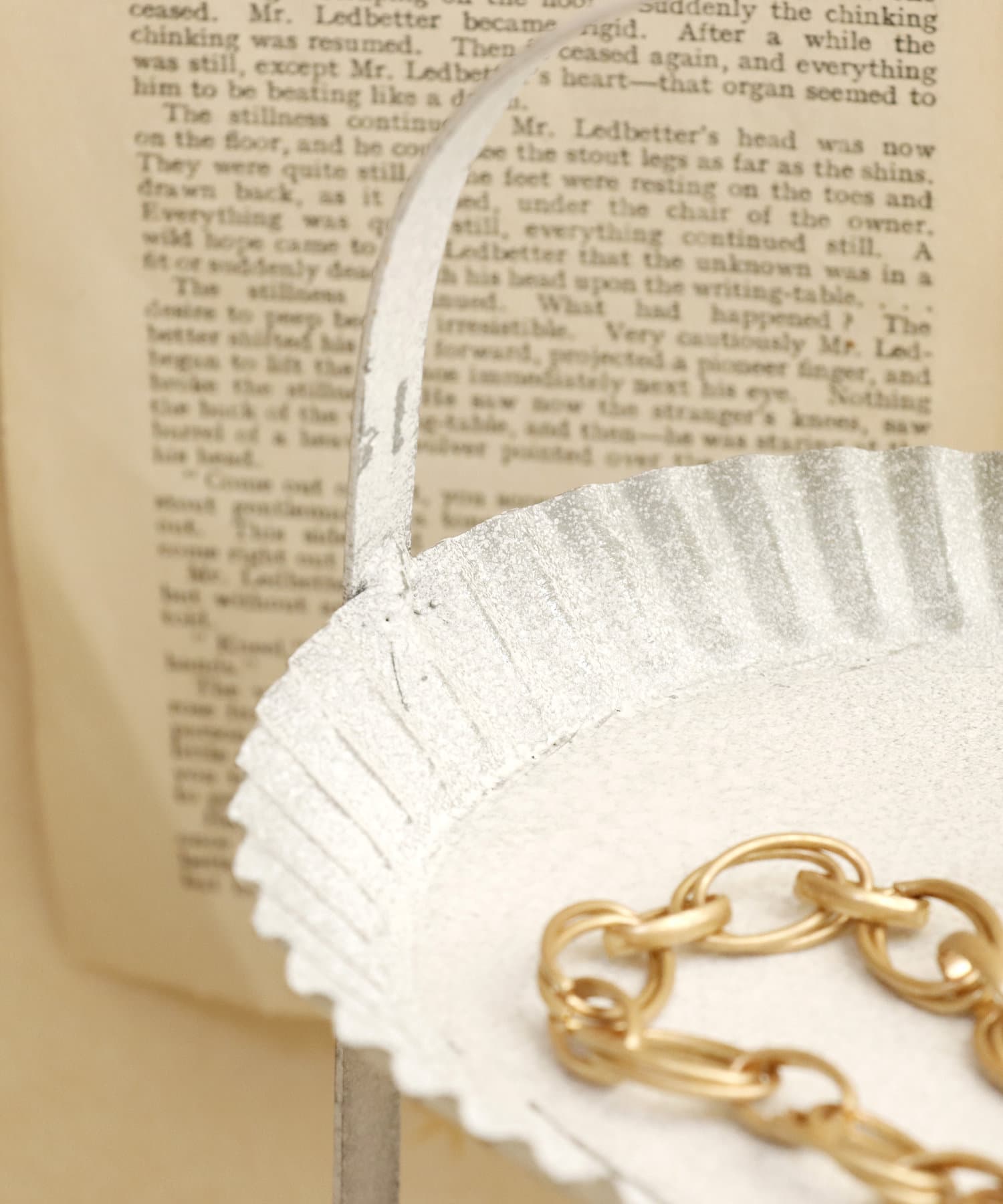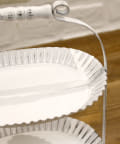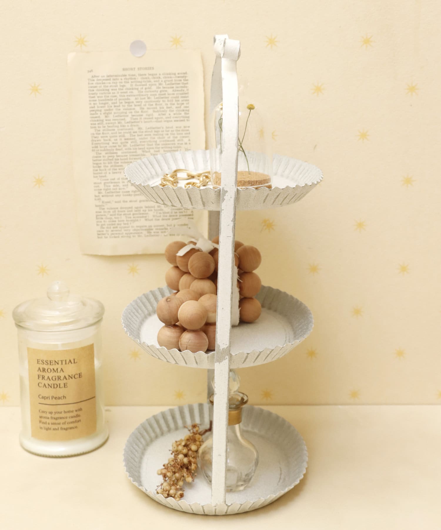 ●シャビーシックなアンティーク加工が魅力的な白を基調とした三段トレー。