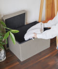 WEB限定リネン風収納スツール:ワイド