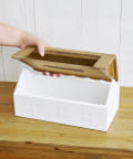 ●手軽に生活感を隠せるおうちのかたちのティッシュボックスカバー。