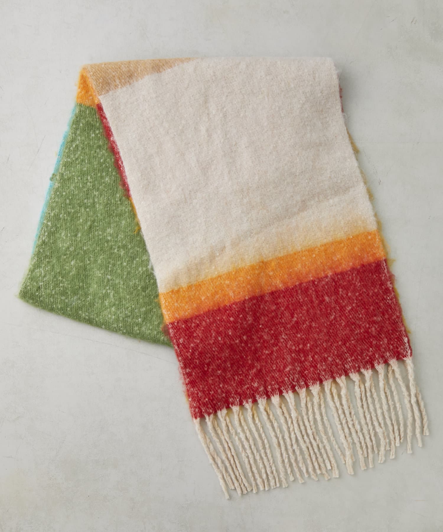 カラフルな色の組み合わせが目を引くマルチカラーのマフラー。