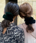 寝過ごしてダッシュで出社した友人がシュシュ(ふんわりフェイクファー)を忘れて一日テンションだだ下がりだったので、万一のためにロッカーに入れとき?と2カラーを渡しました。