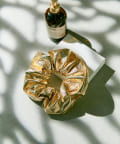 目立つギラギラゴールドのシュシュ。付けてみるとすっごく可愛くて素敵。手首につけるのも夏のおすすめ!