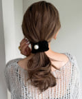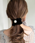 ・秋冬にぴったりのベロア素材にパールが上品な印象に◎