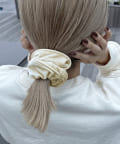 どんな髪型でも、このシュシュをつけるとおしゃれに見えるので仕事で愛用してます♡