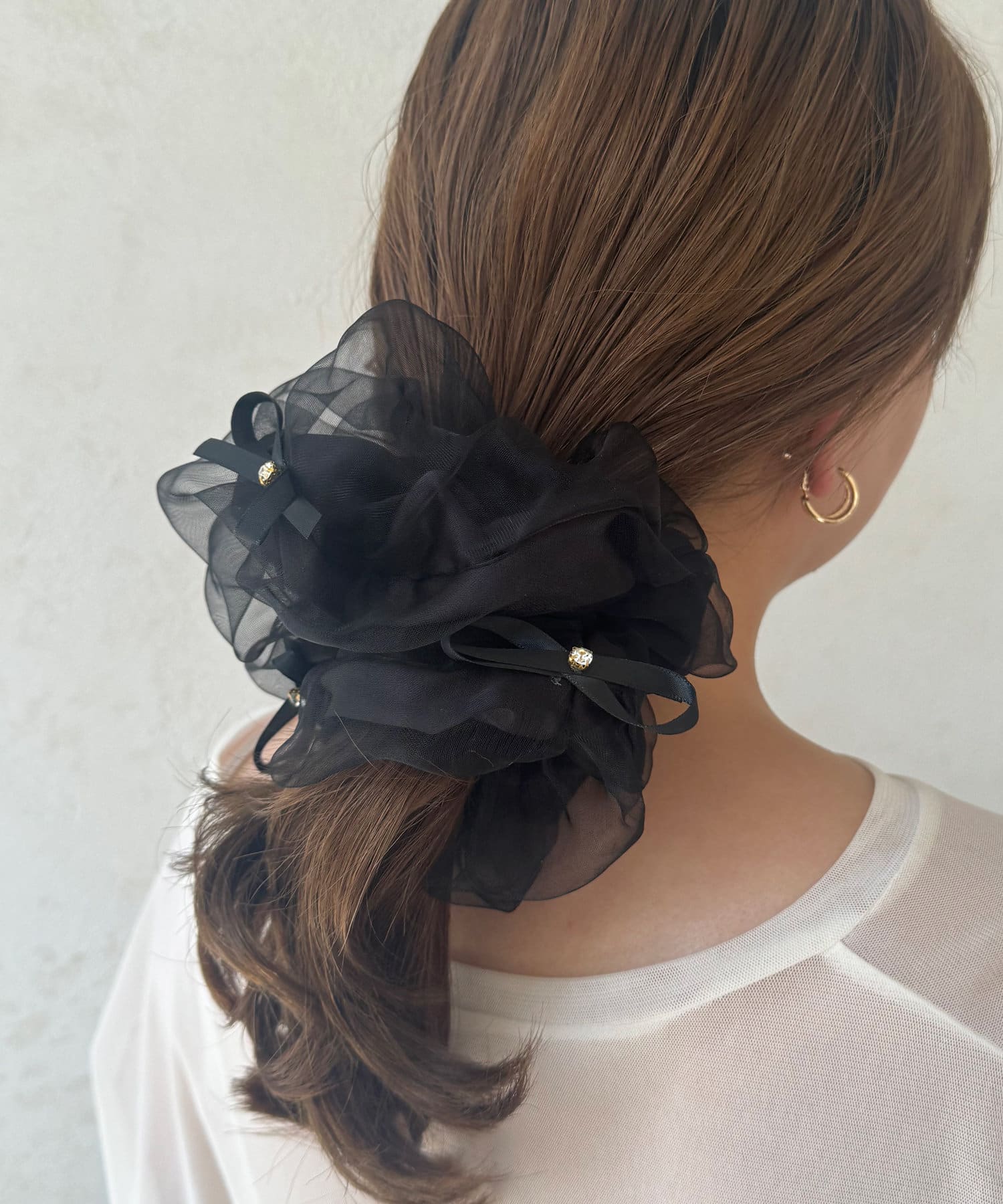リボンとシアー素材が可愛いシュシュが登場