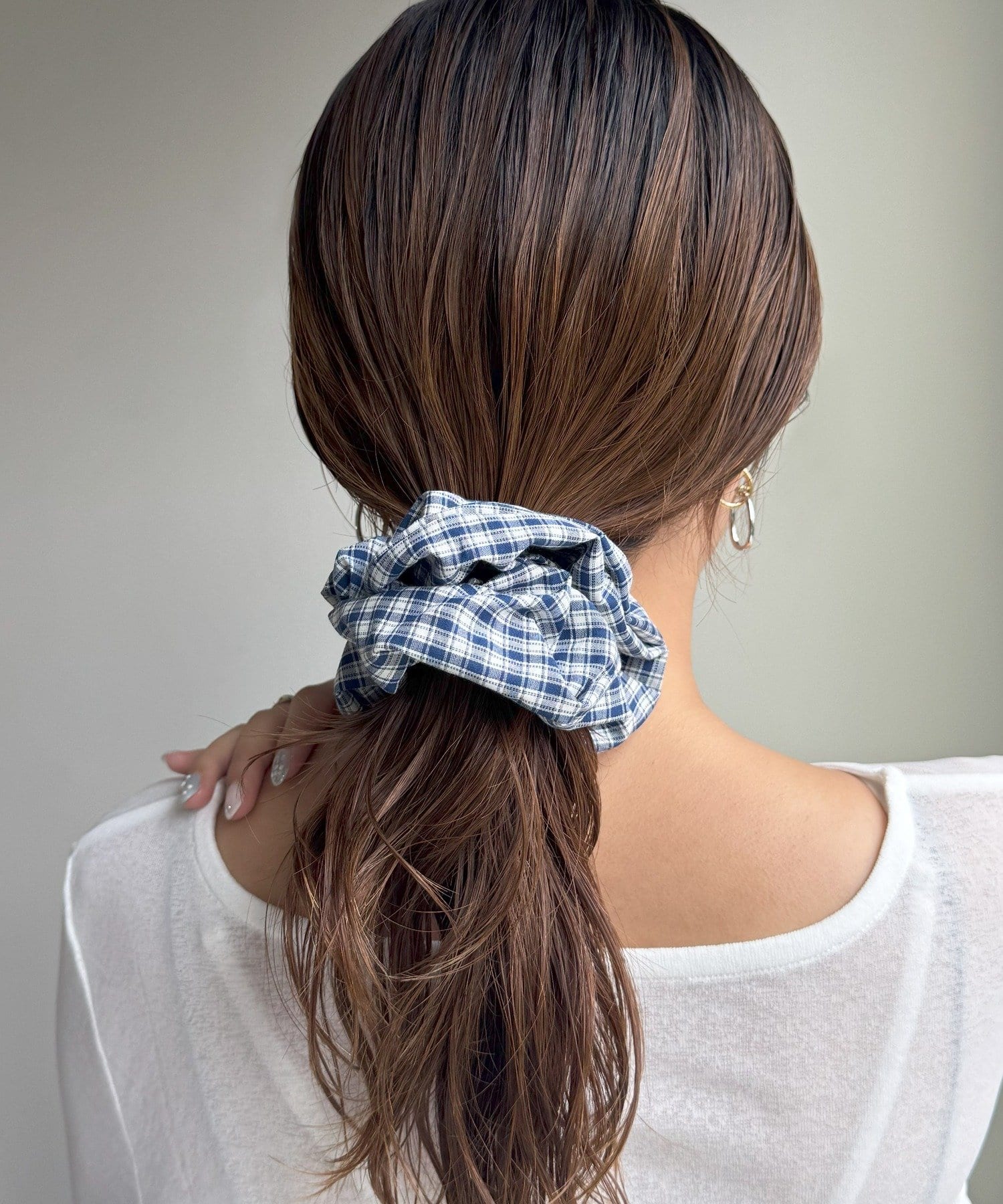 秋らしいチェック柄がポイントのシュシュ