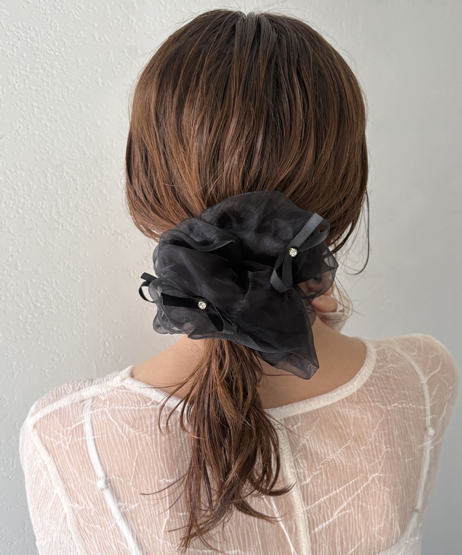大人可愛いリボン付きのシアーシュシュ