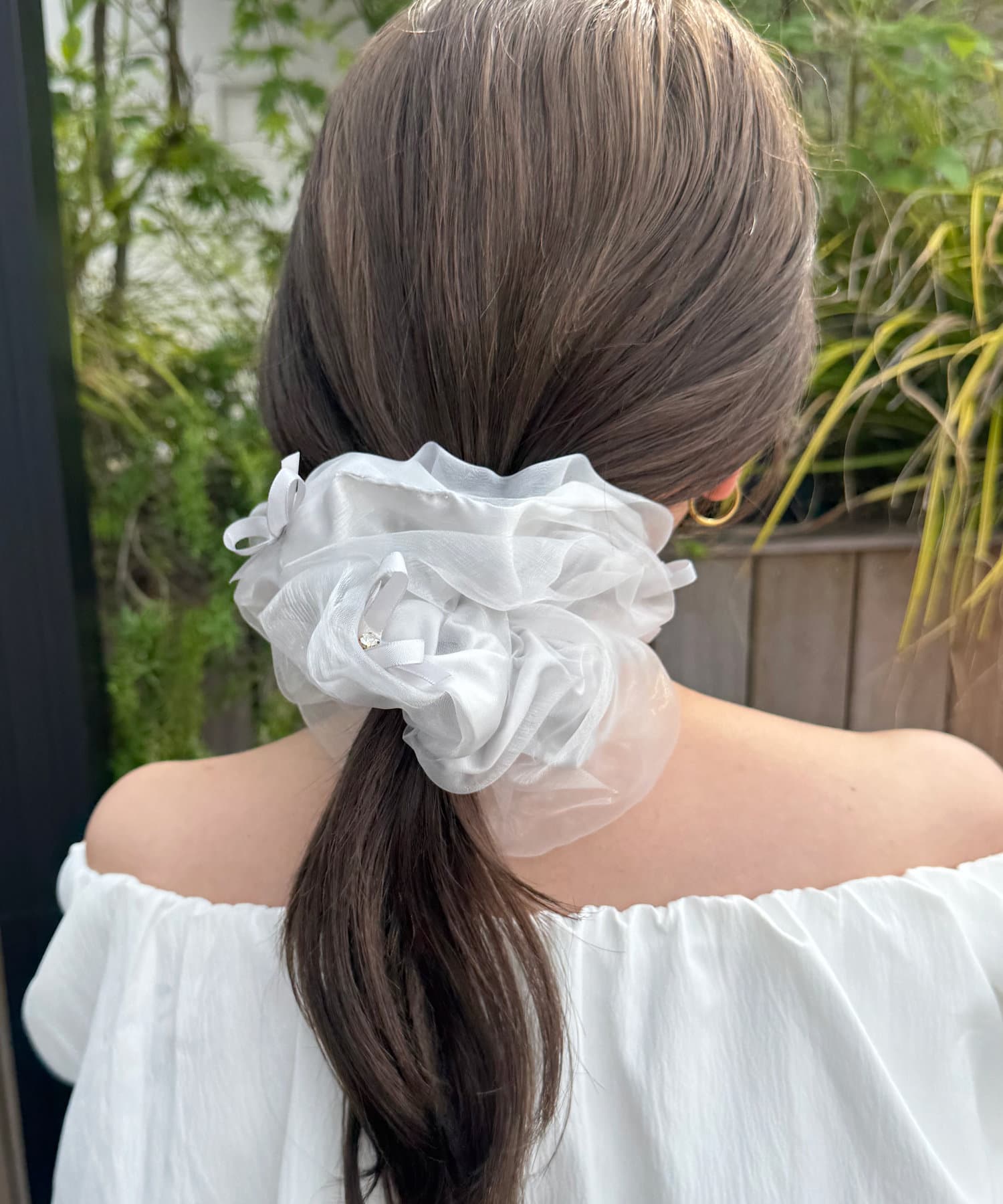 かなり大きめのシュシュで、これをつけるだけでかわいくなります!