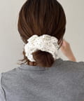 スウェット素材がカジュアルな印象のドットシュシュ