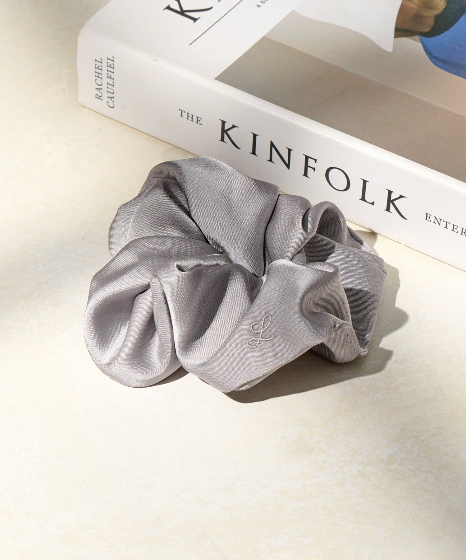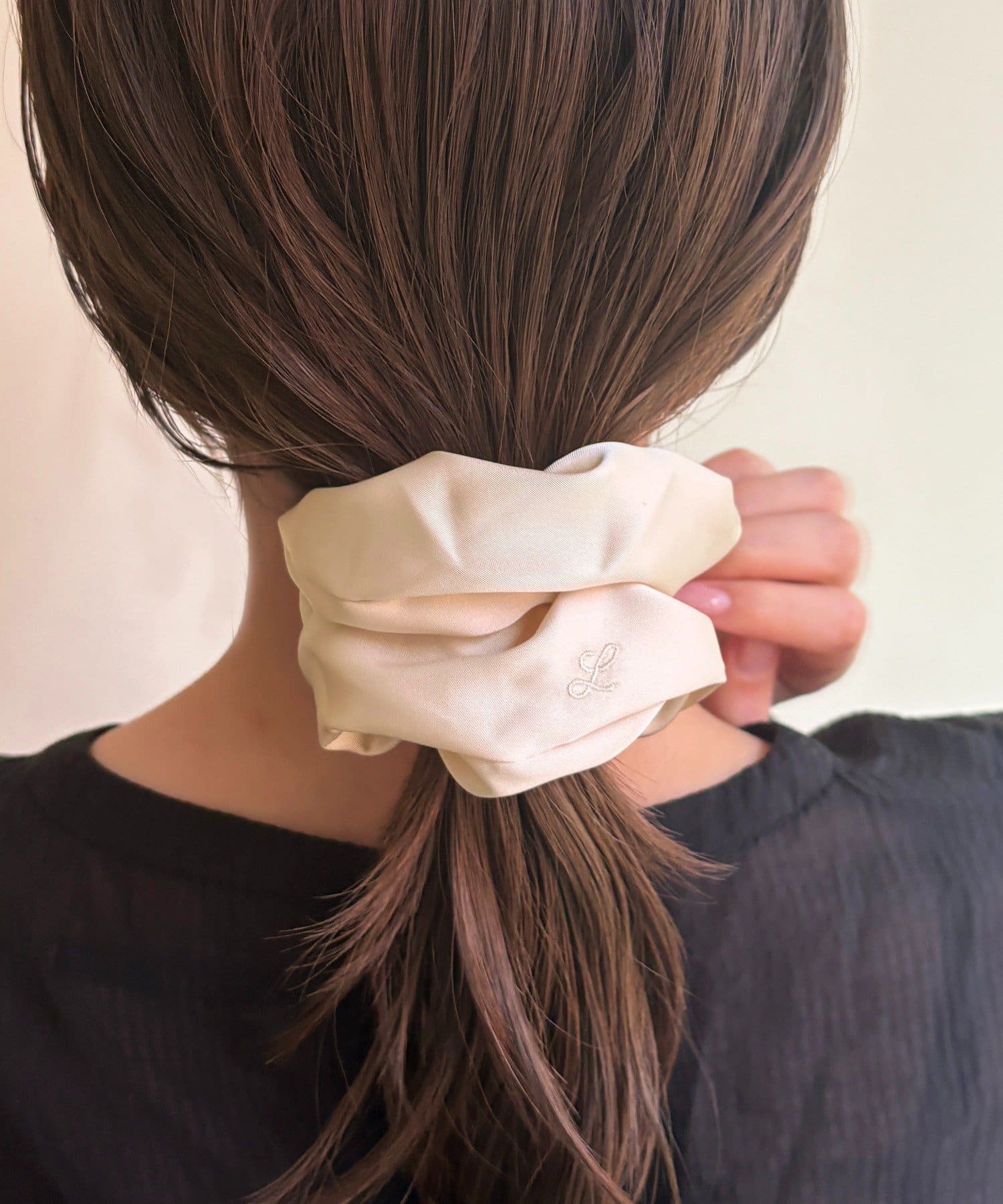 ロゴ入りの大人可愛いサテンシュシュ