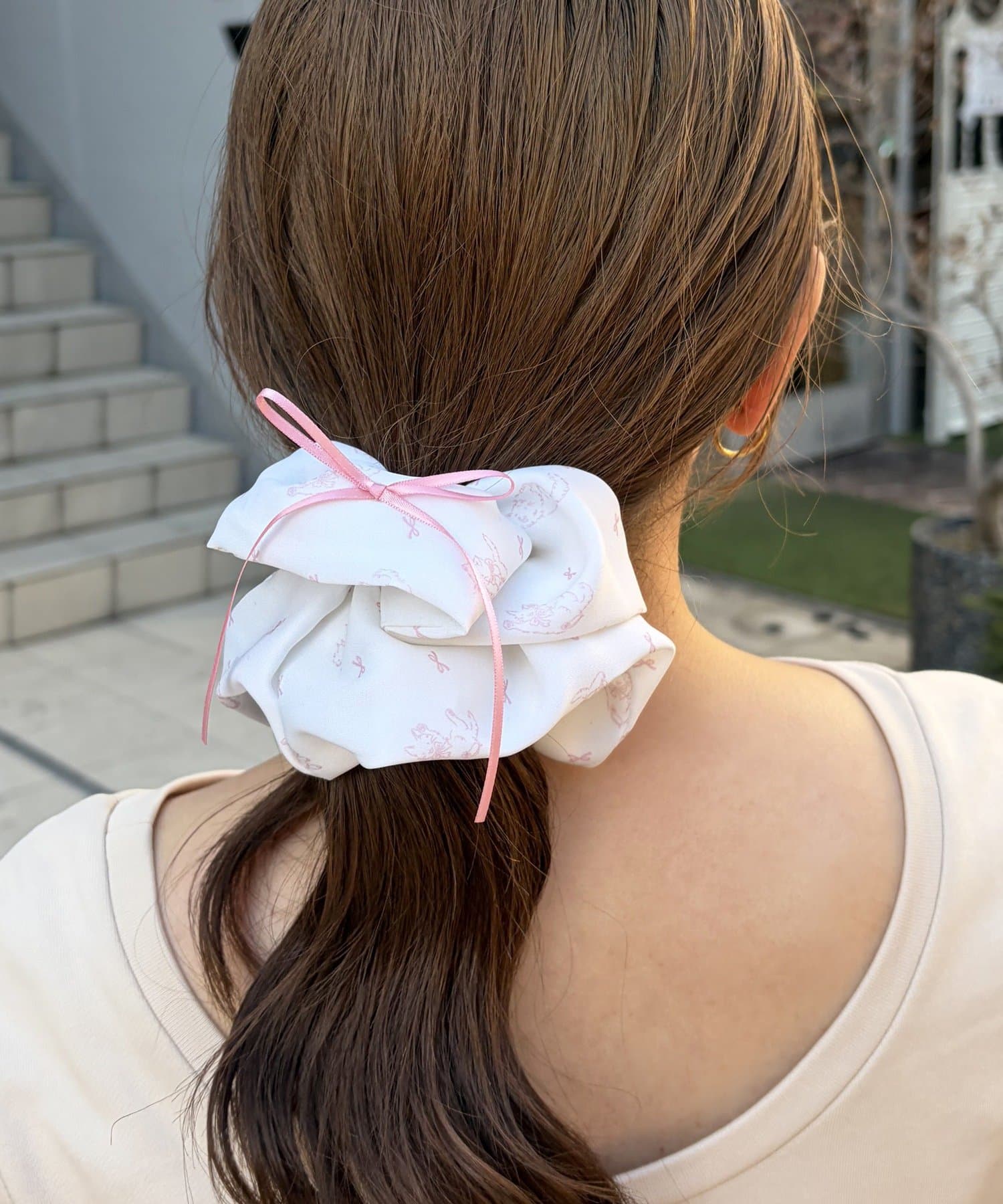 リボンがついたガーリーなシュシュ