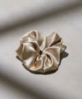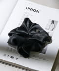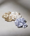 光沢のあるサテン生地にモチーフを組み合わせたシュシュ
