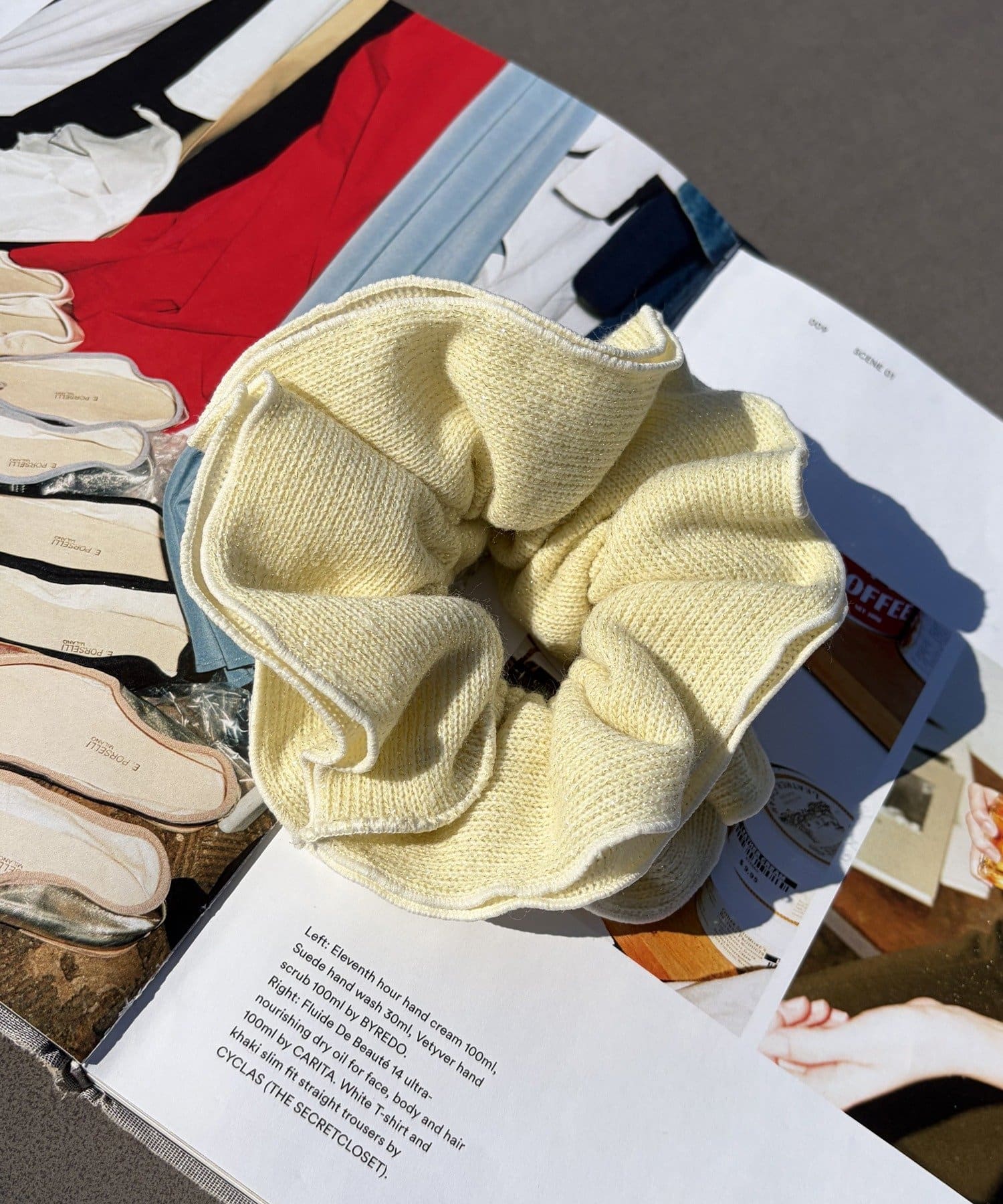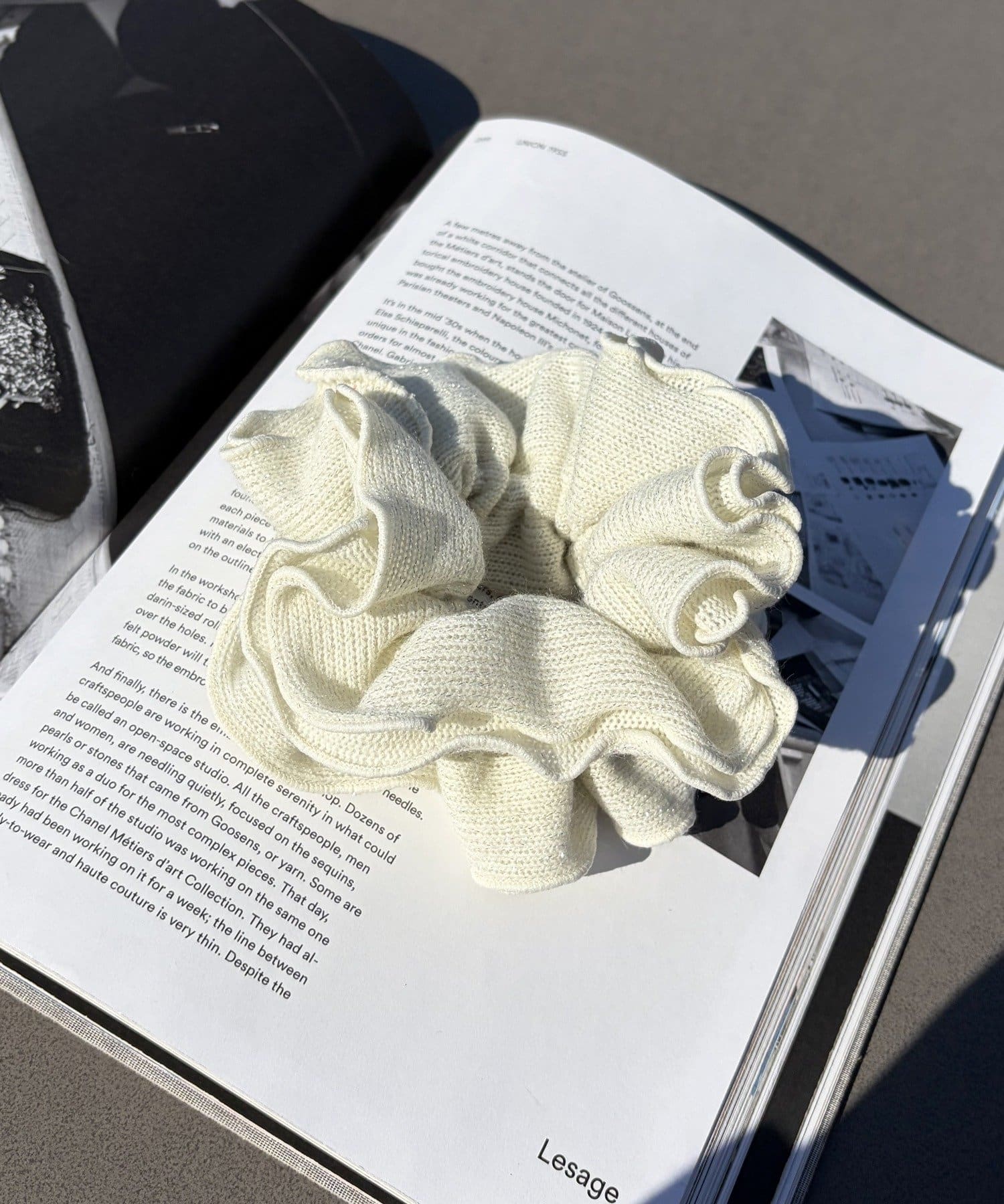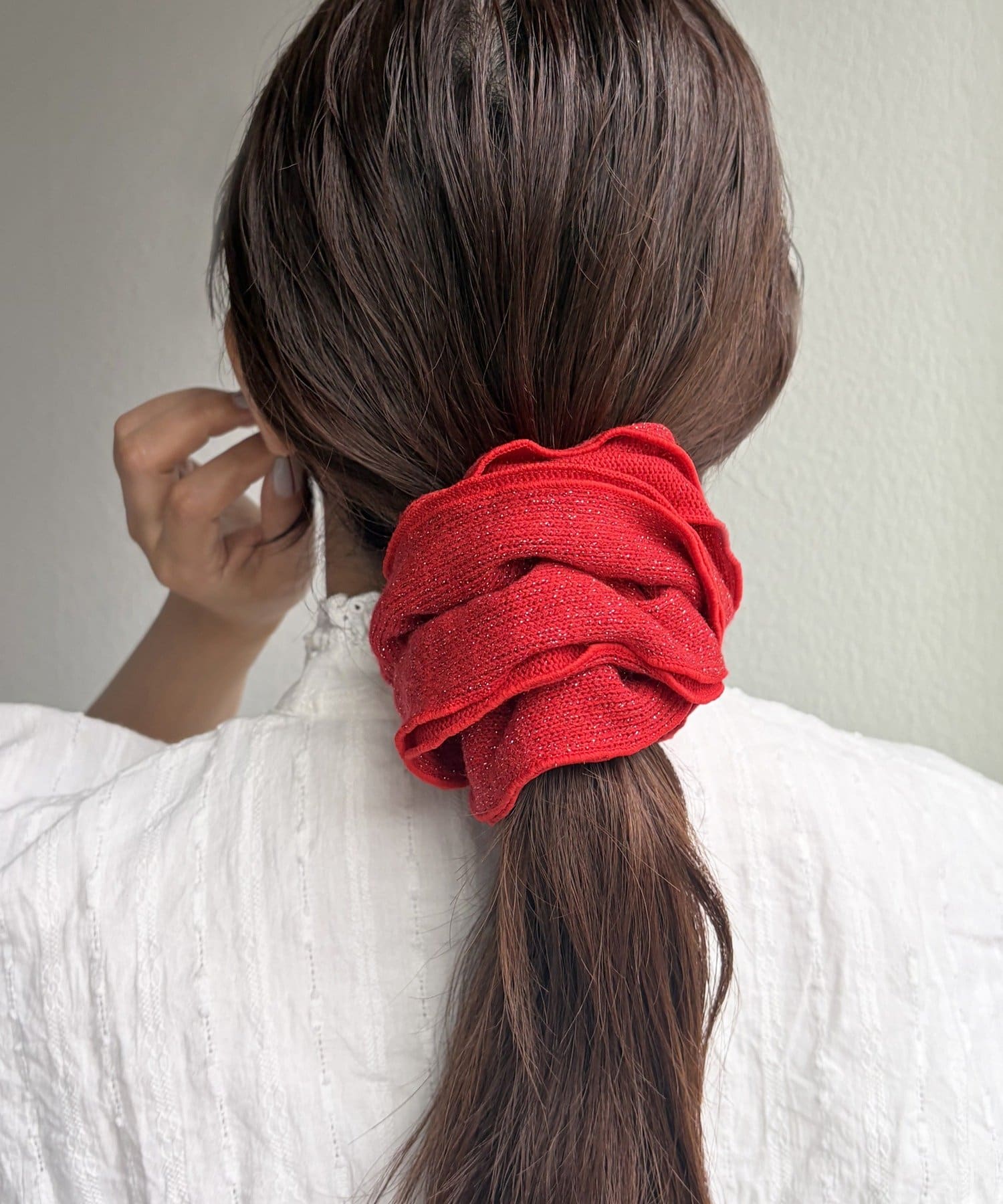 コーデの主役になるボリュームたっぷりのラメニットシュシュが登場