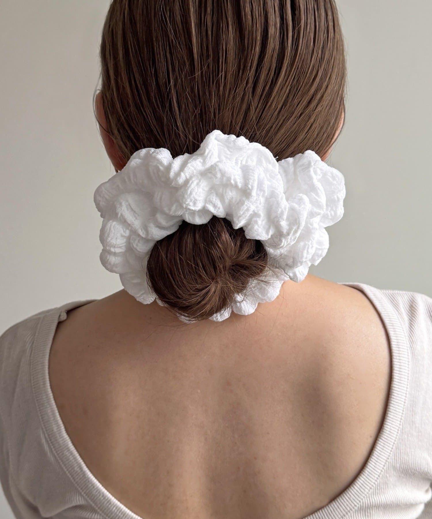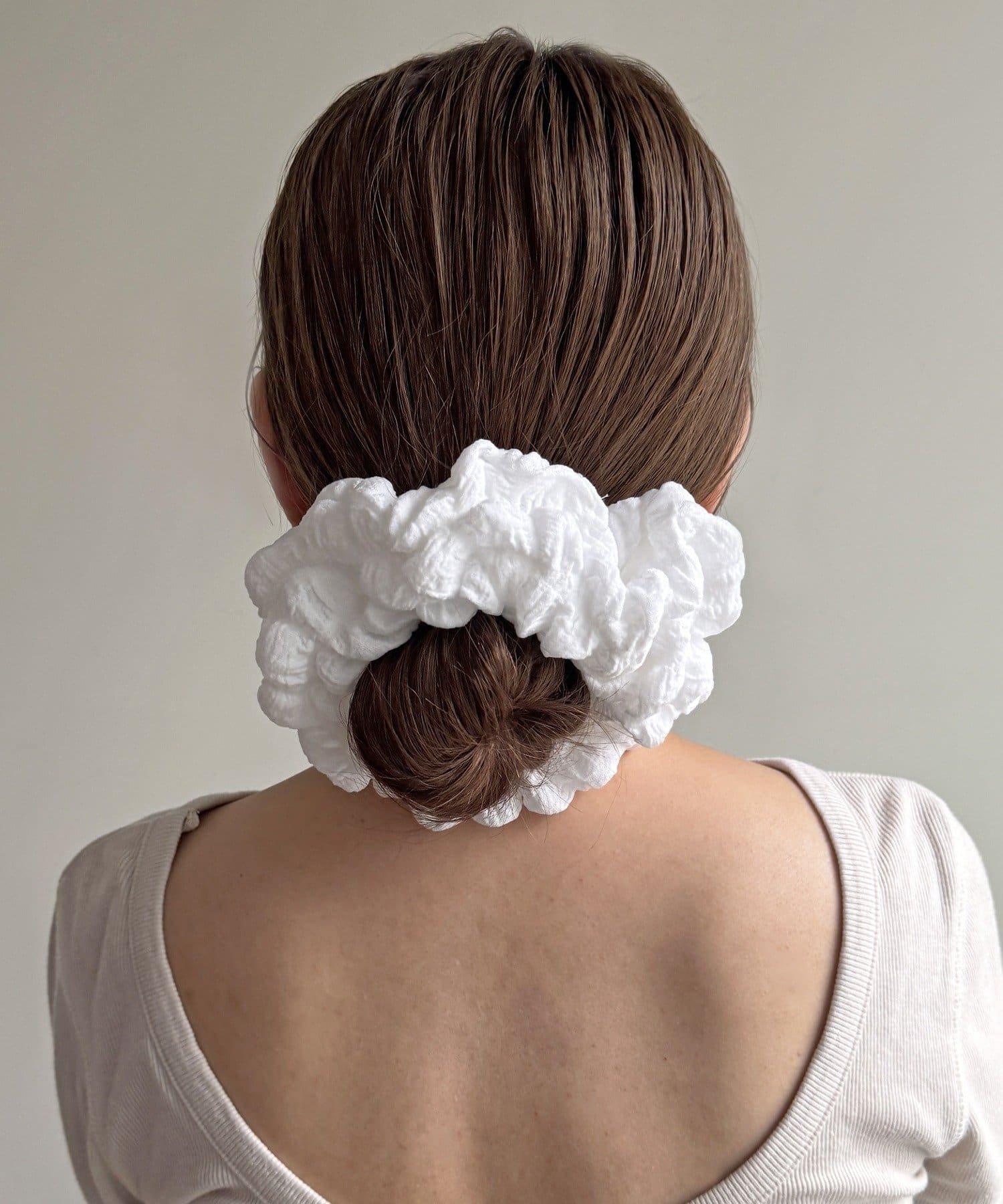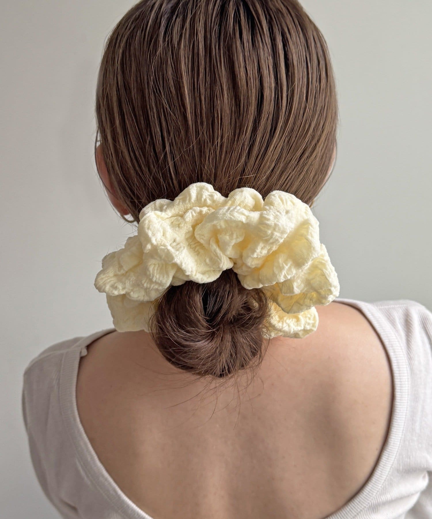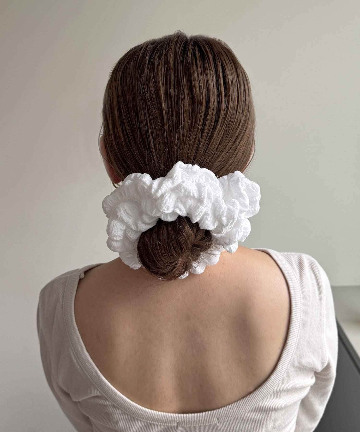くしゅっとしたボリューム感のあるデザインで、ヘアアレンジにプラスするだけで一気に華やかな印象に。
