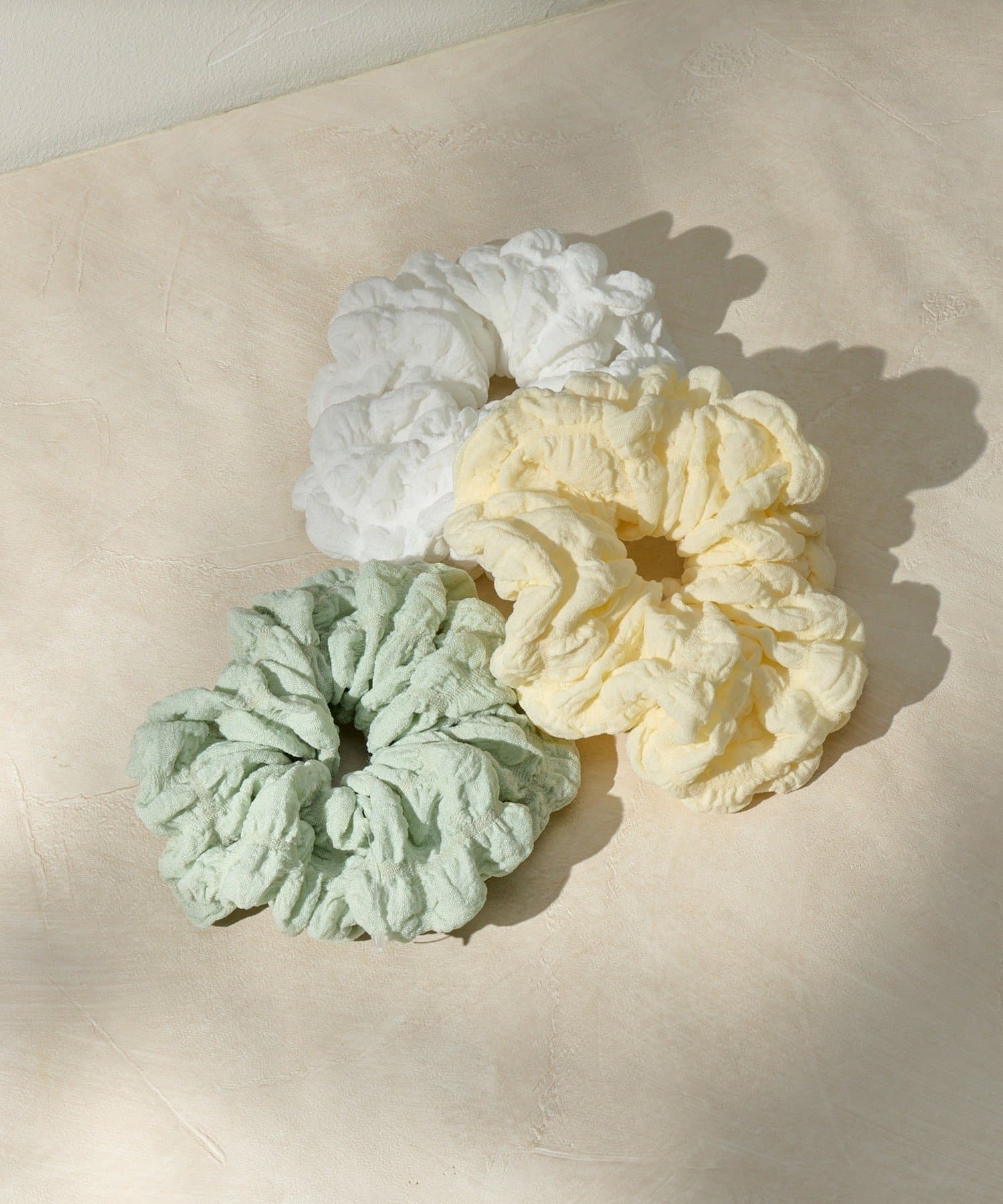 ぽこぽことした立体的な生地が目を惹く新作のカラーシュシュ