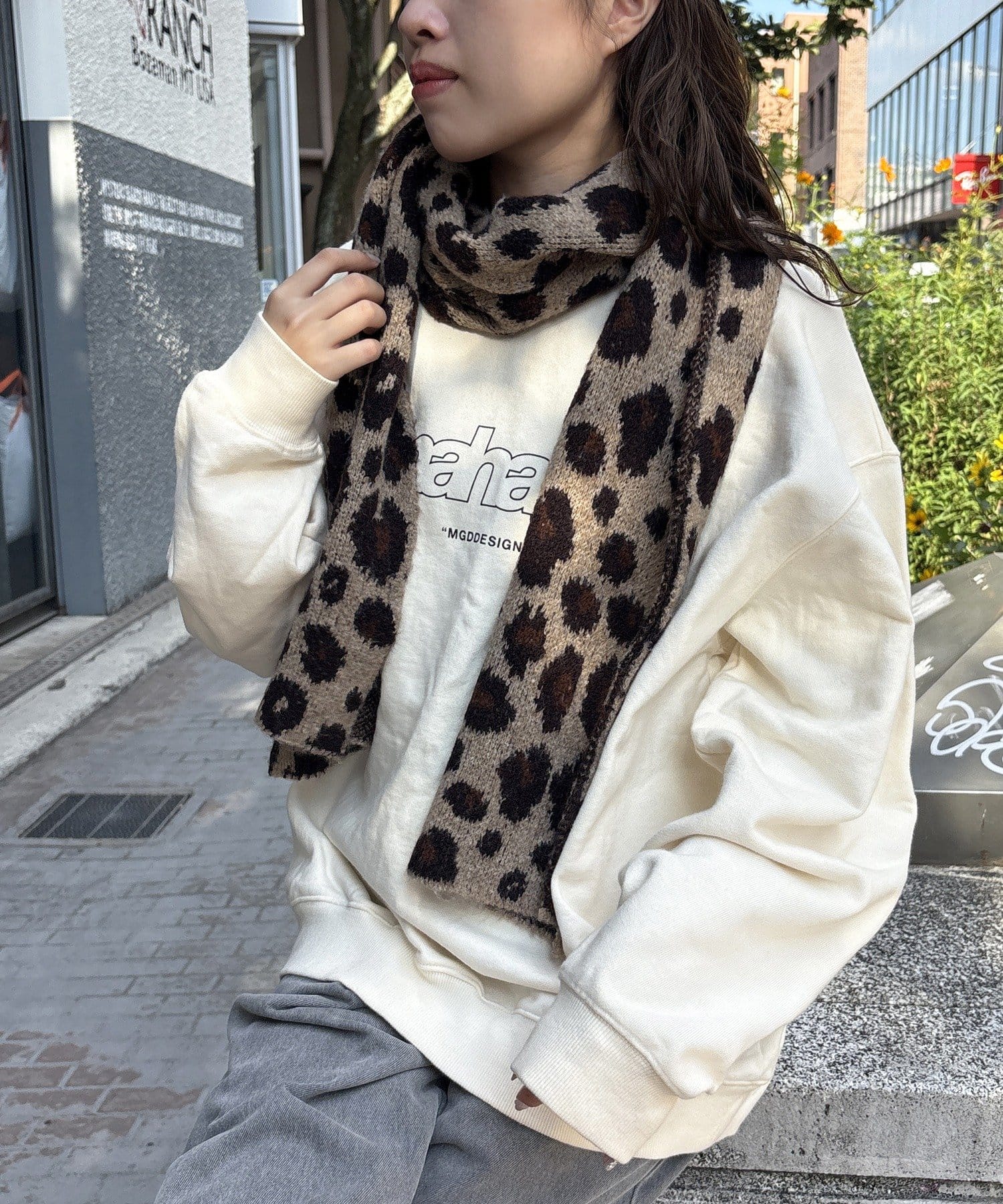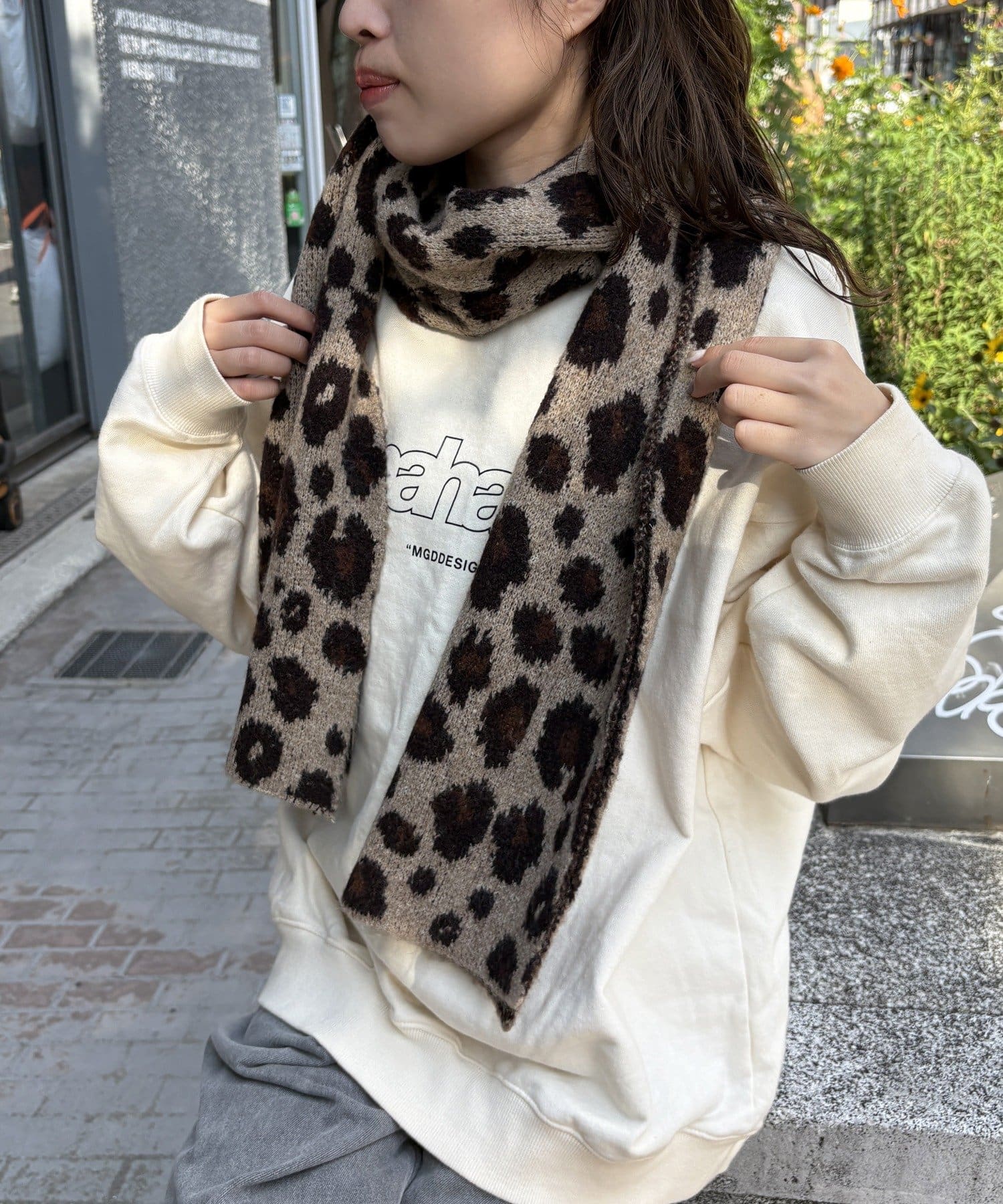 コーデのポイントになるレオパードマフラー