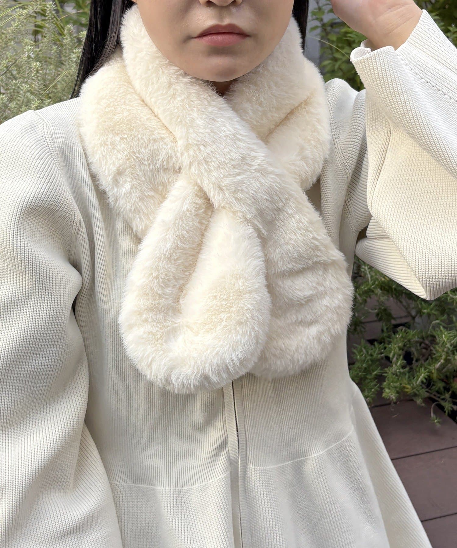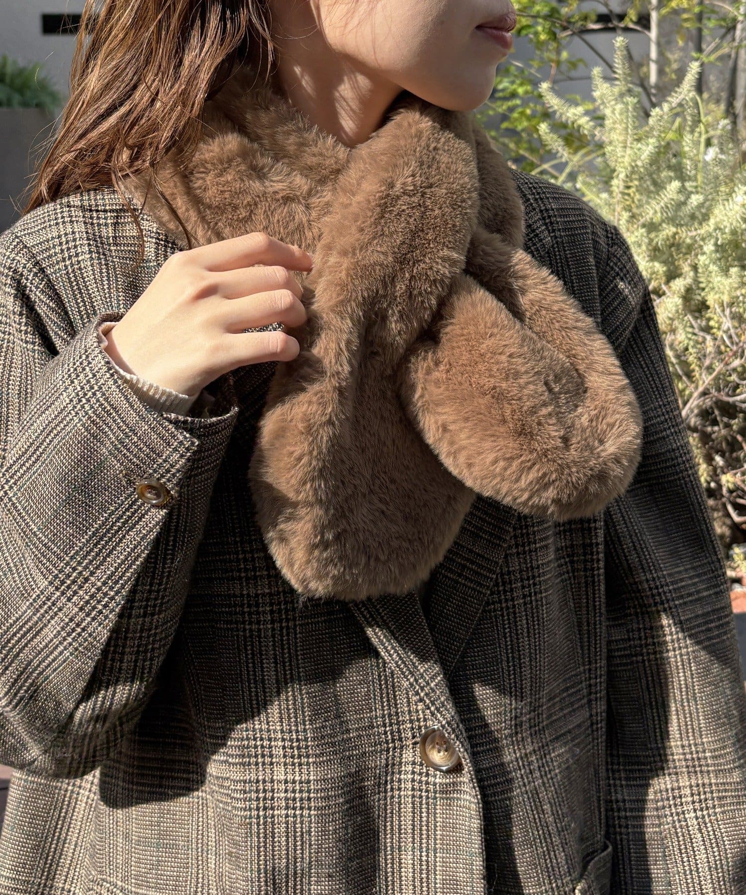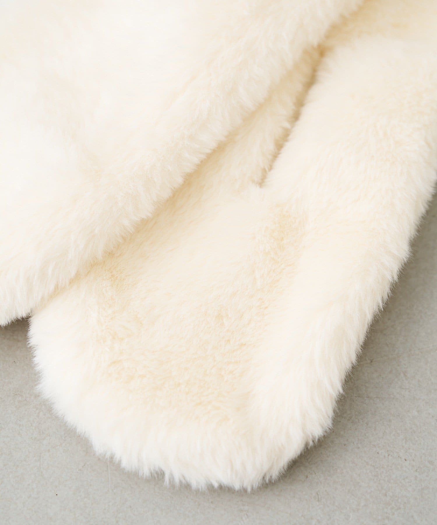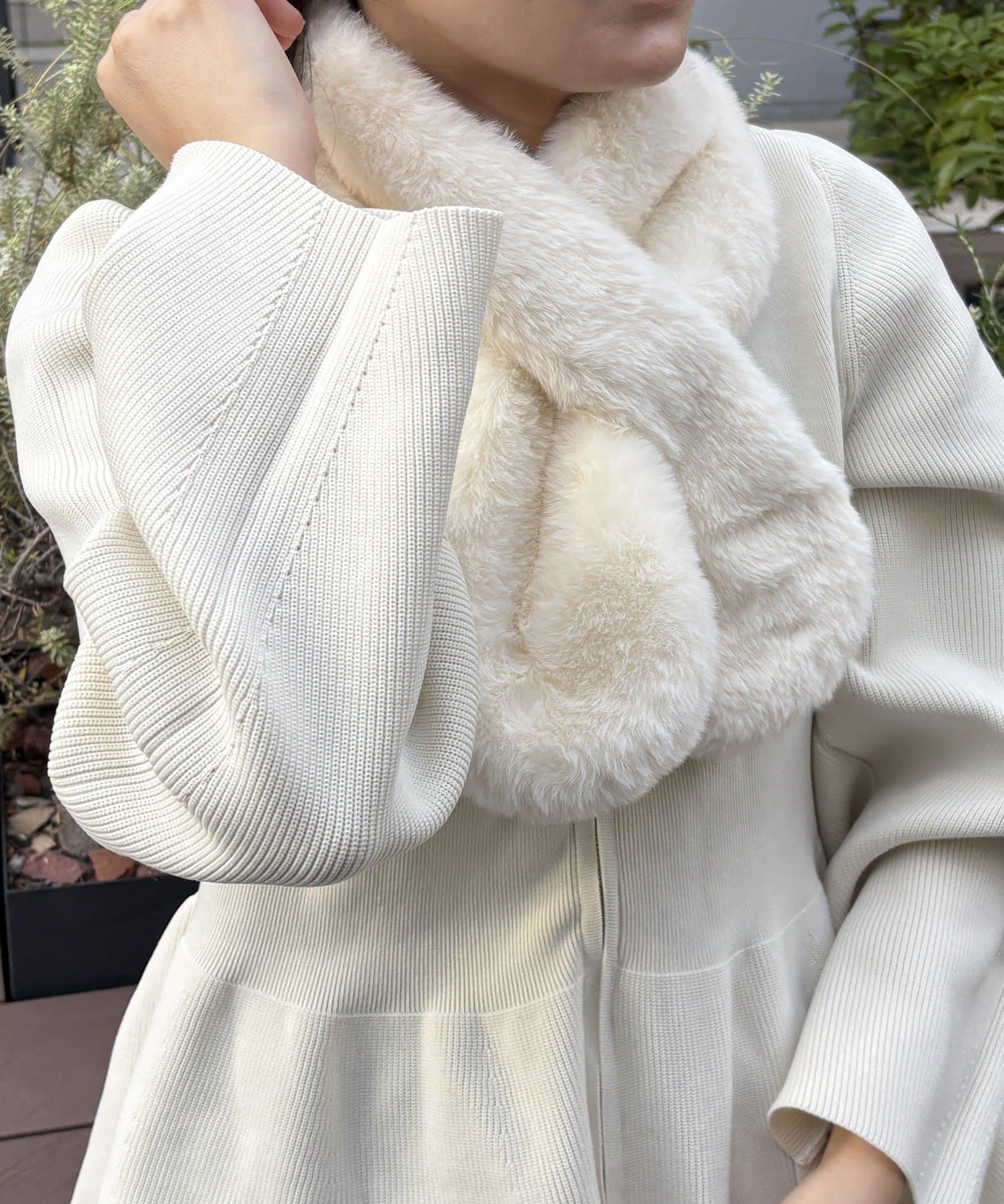 ふわふわの柔らかい触り心地で、ボリュームのあるエコファーが顔回りを華やかにしてくれます。