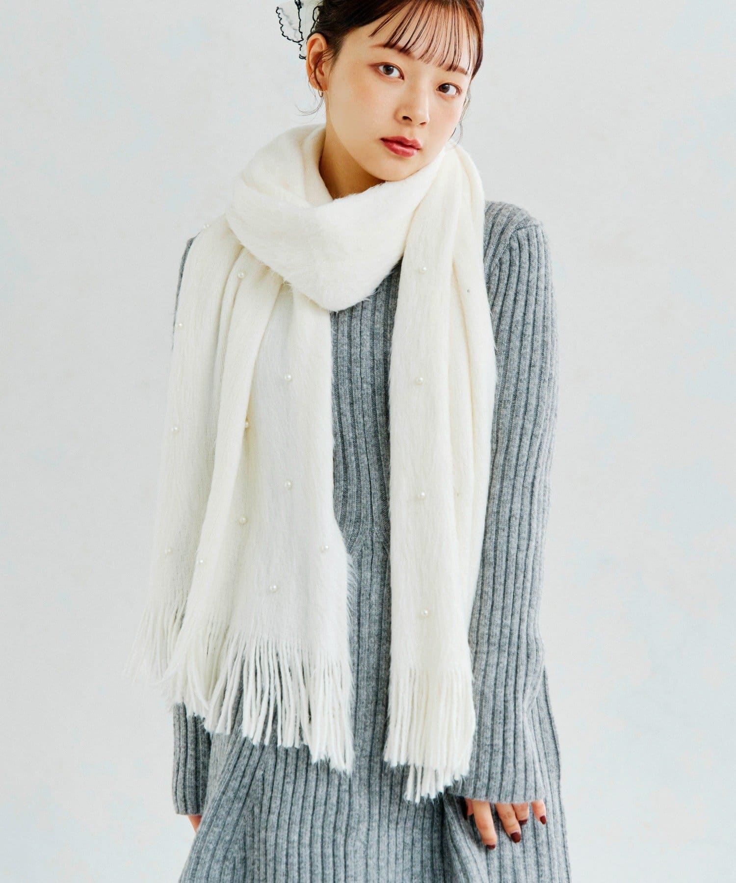 シンプルなマフラーにパールをあしらった、女性らしさ際立つマフラー!