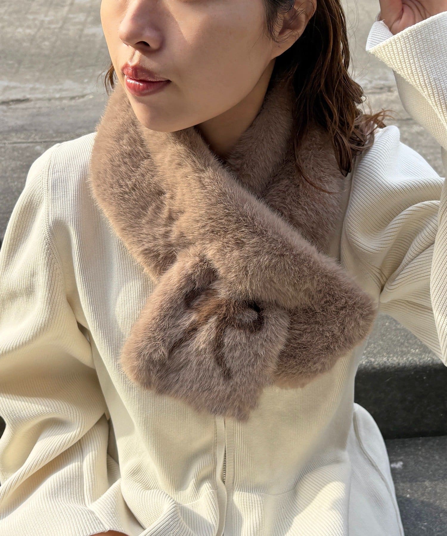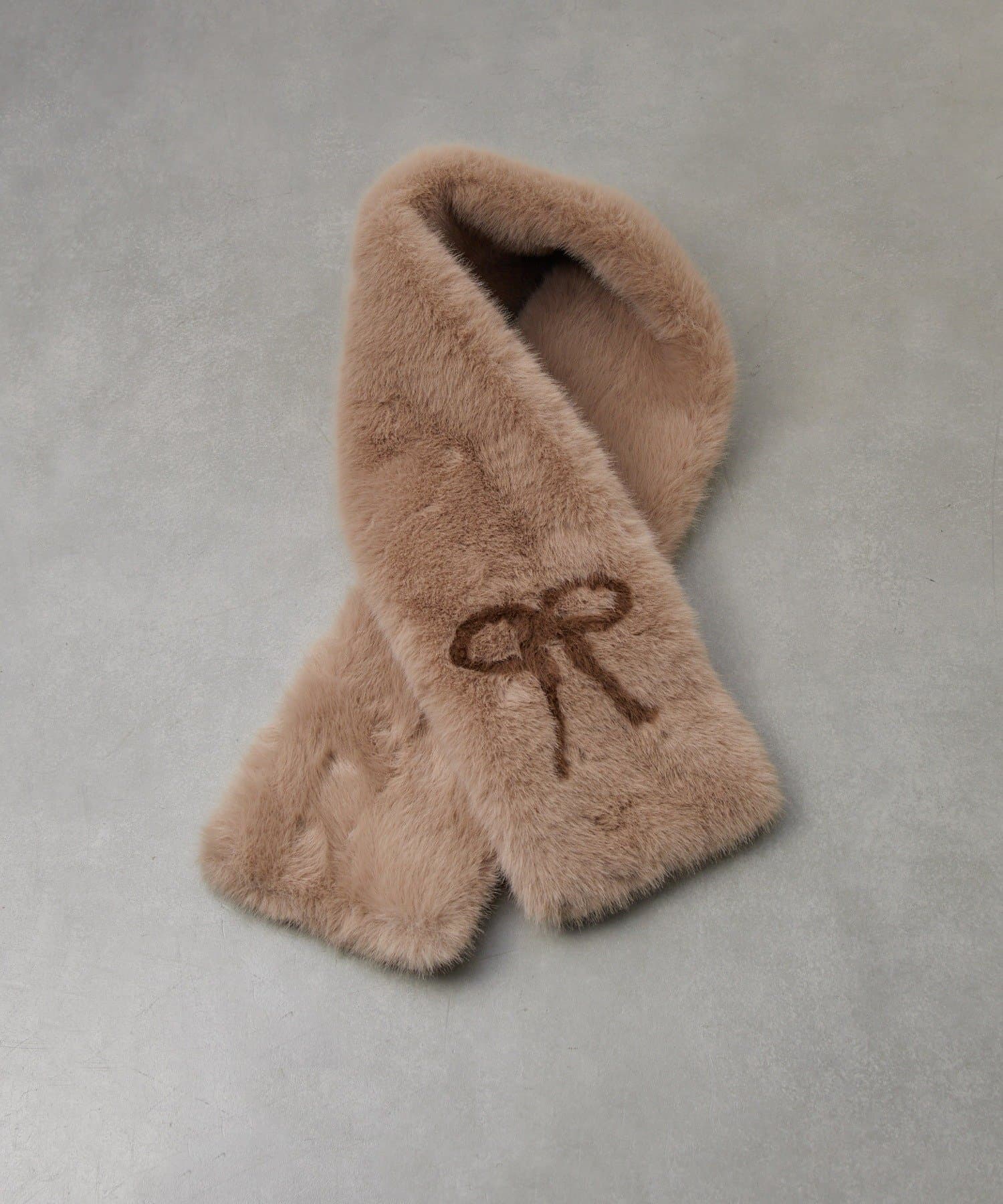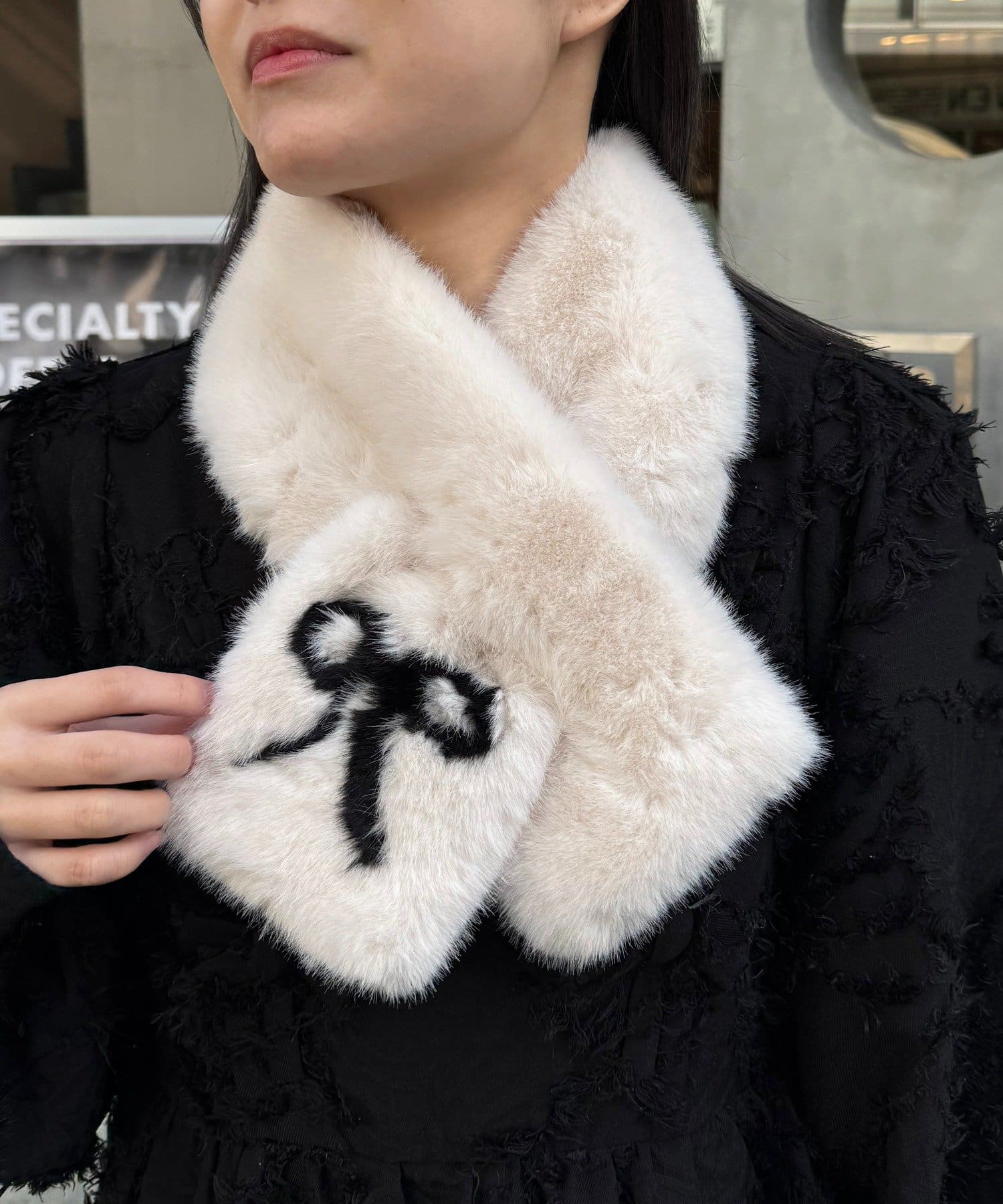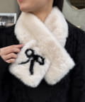 肌触りの良いエコファーを使用したリボン柄のティペットです。