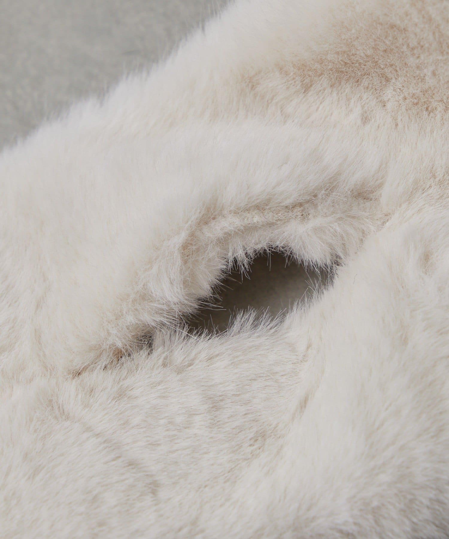 ふわふわの柔らかい触り心地で、ボリュームのあるエコファーが顔回りを華やかにしてくれます。