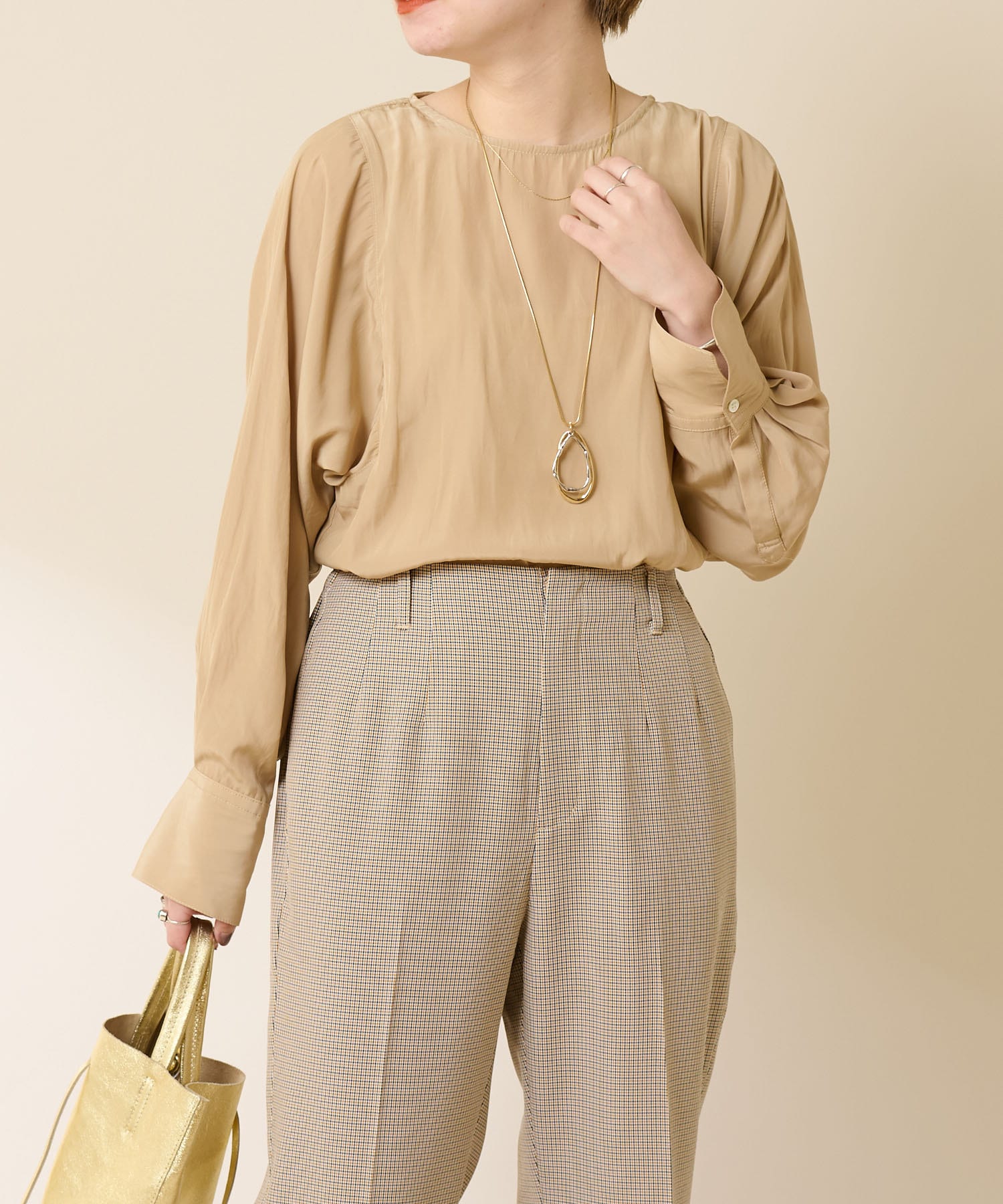 シルクのようなツヤと落ち感が特徴的な素材で、とろみのあるソフトな風合い。