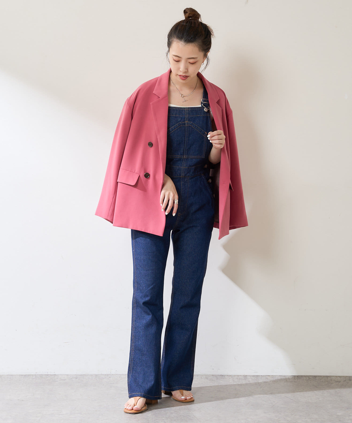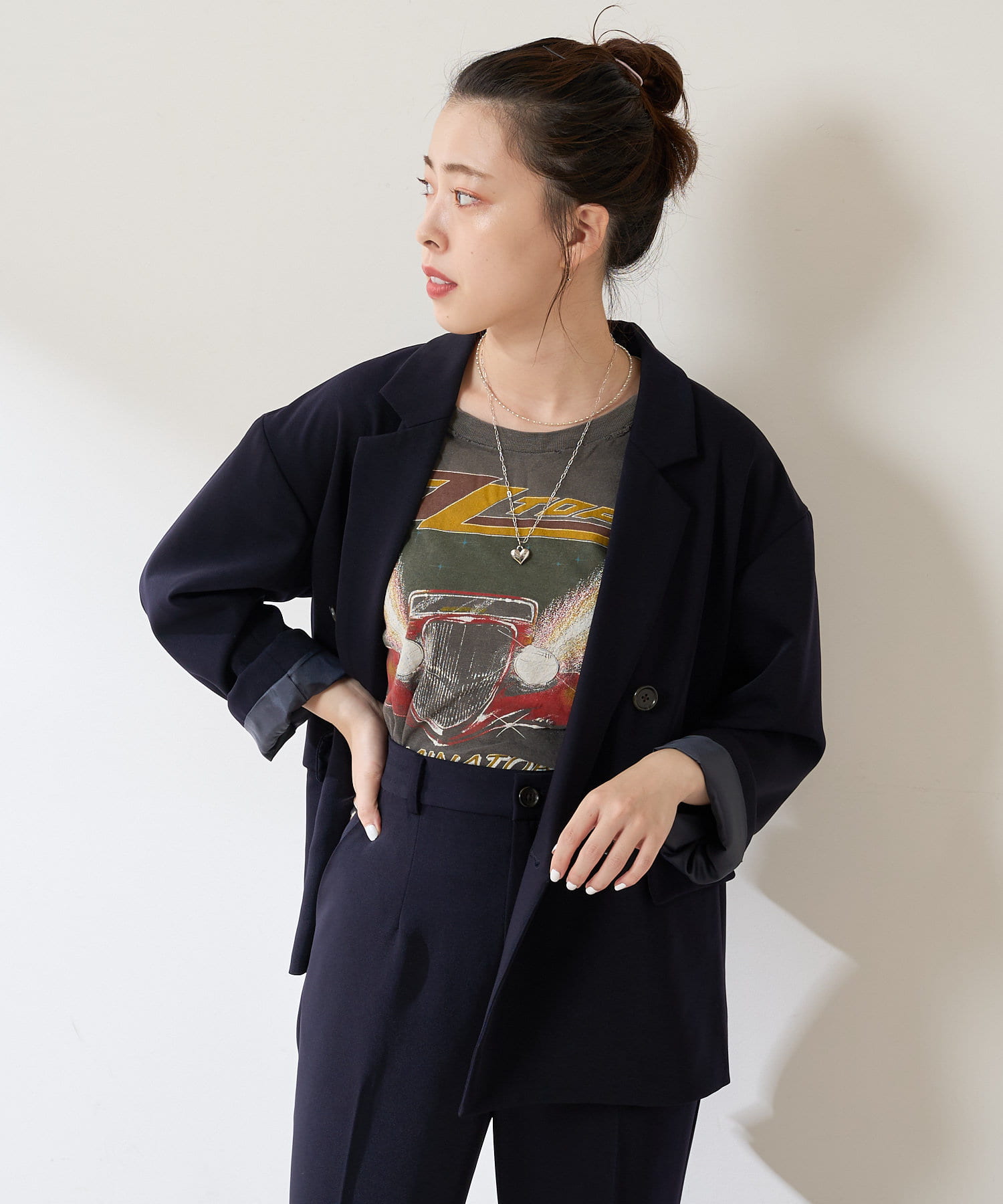 ヴィンテージのジャケットをイメージしているので少し、メンズライクな印象です。
