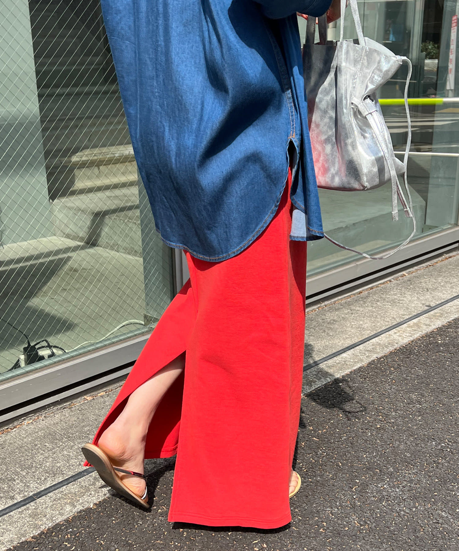 タイトシルエットですが、後ろにスリットが入っていて歩きやすく着やすい1枚。