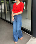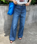♦サイド切替がポイントのバギーデニムパンツ