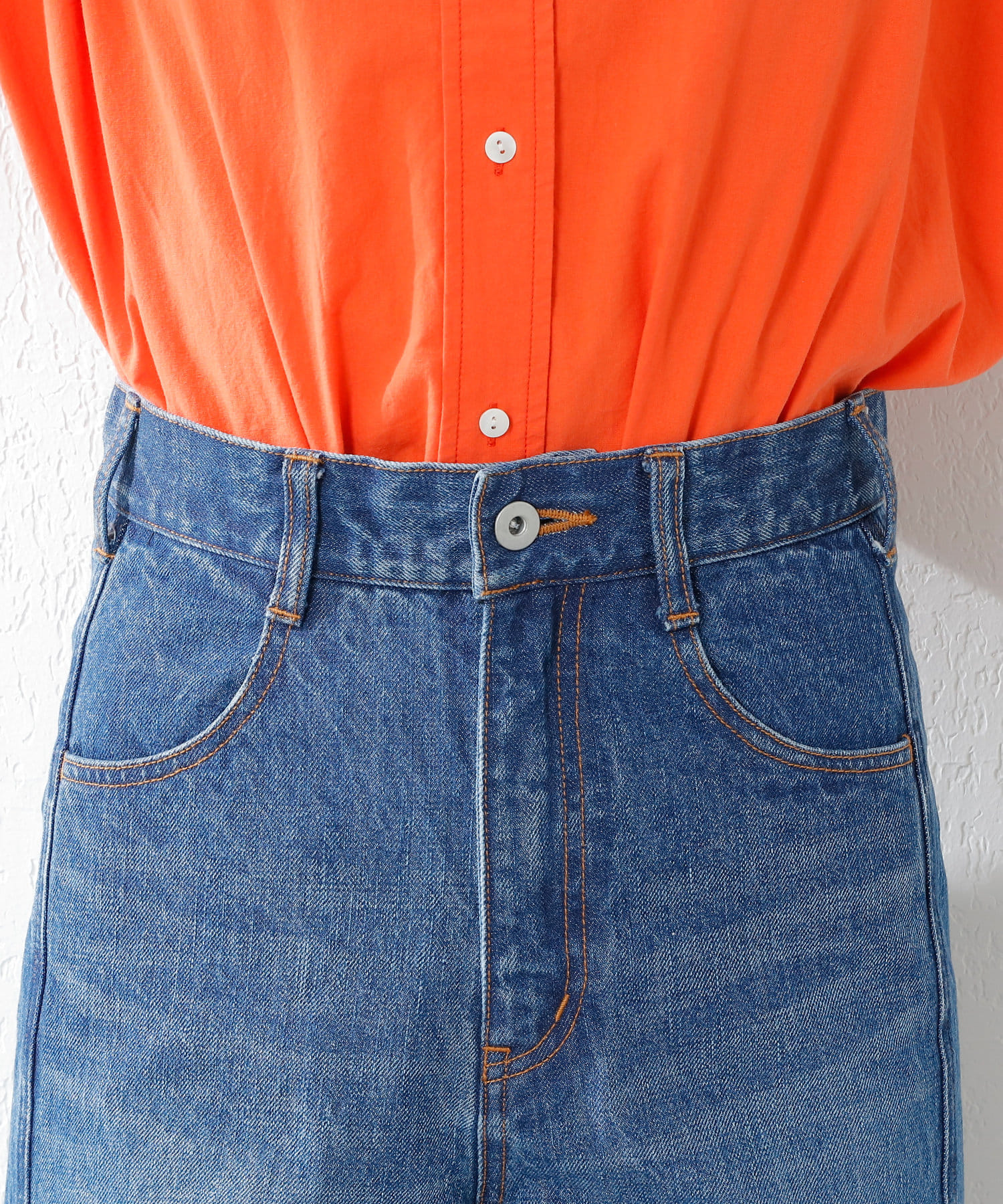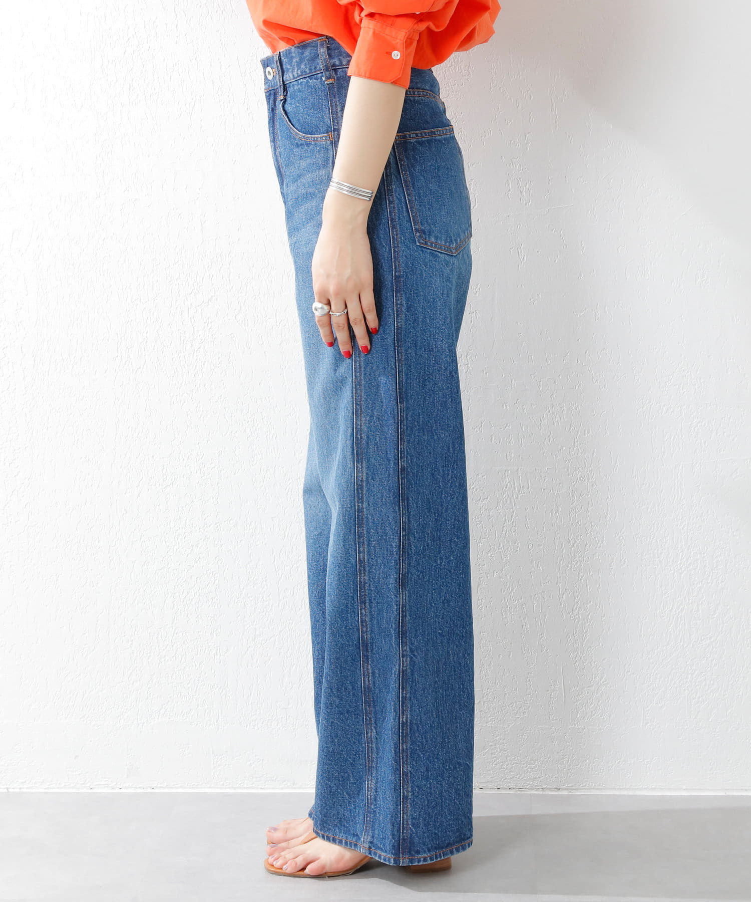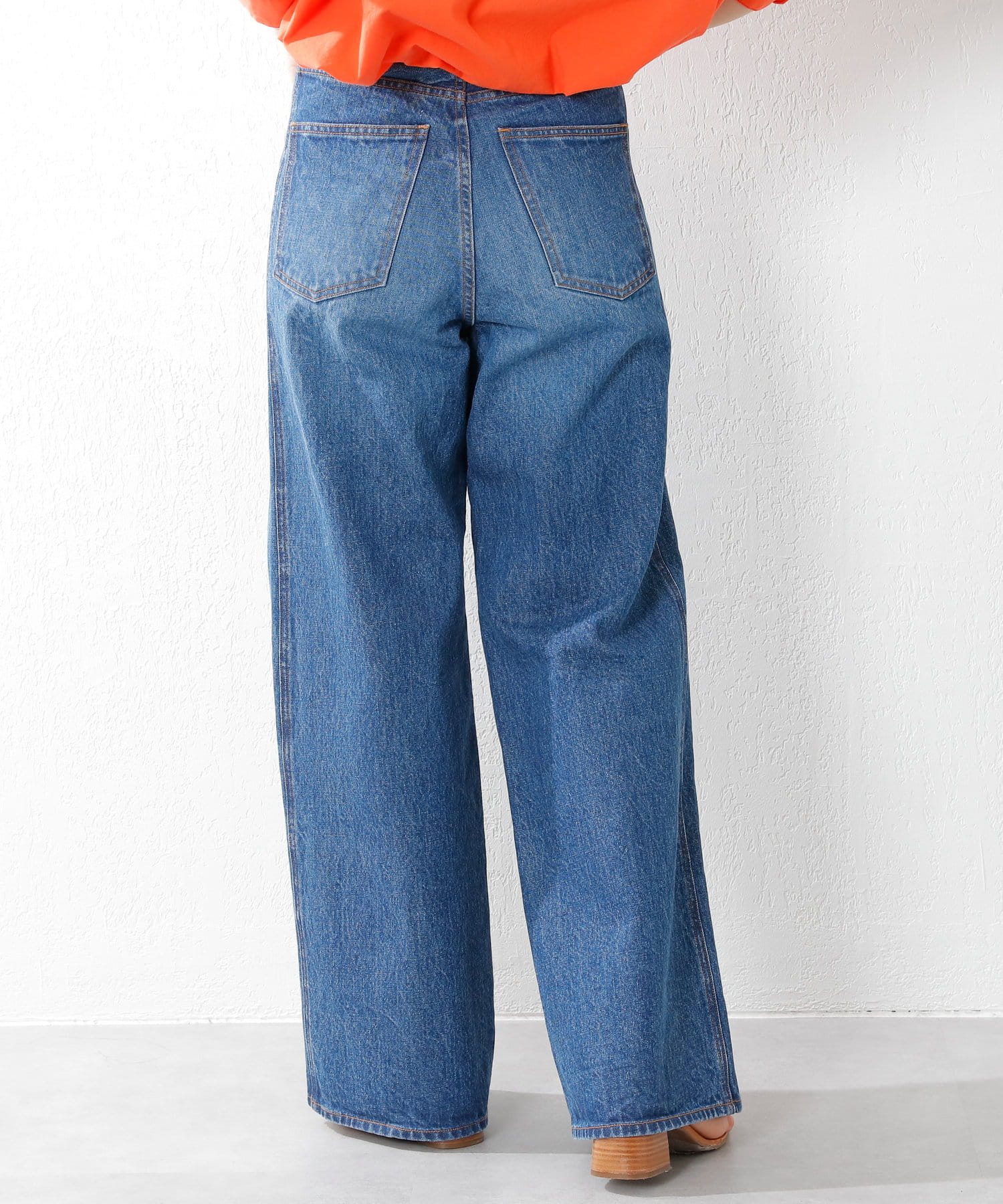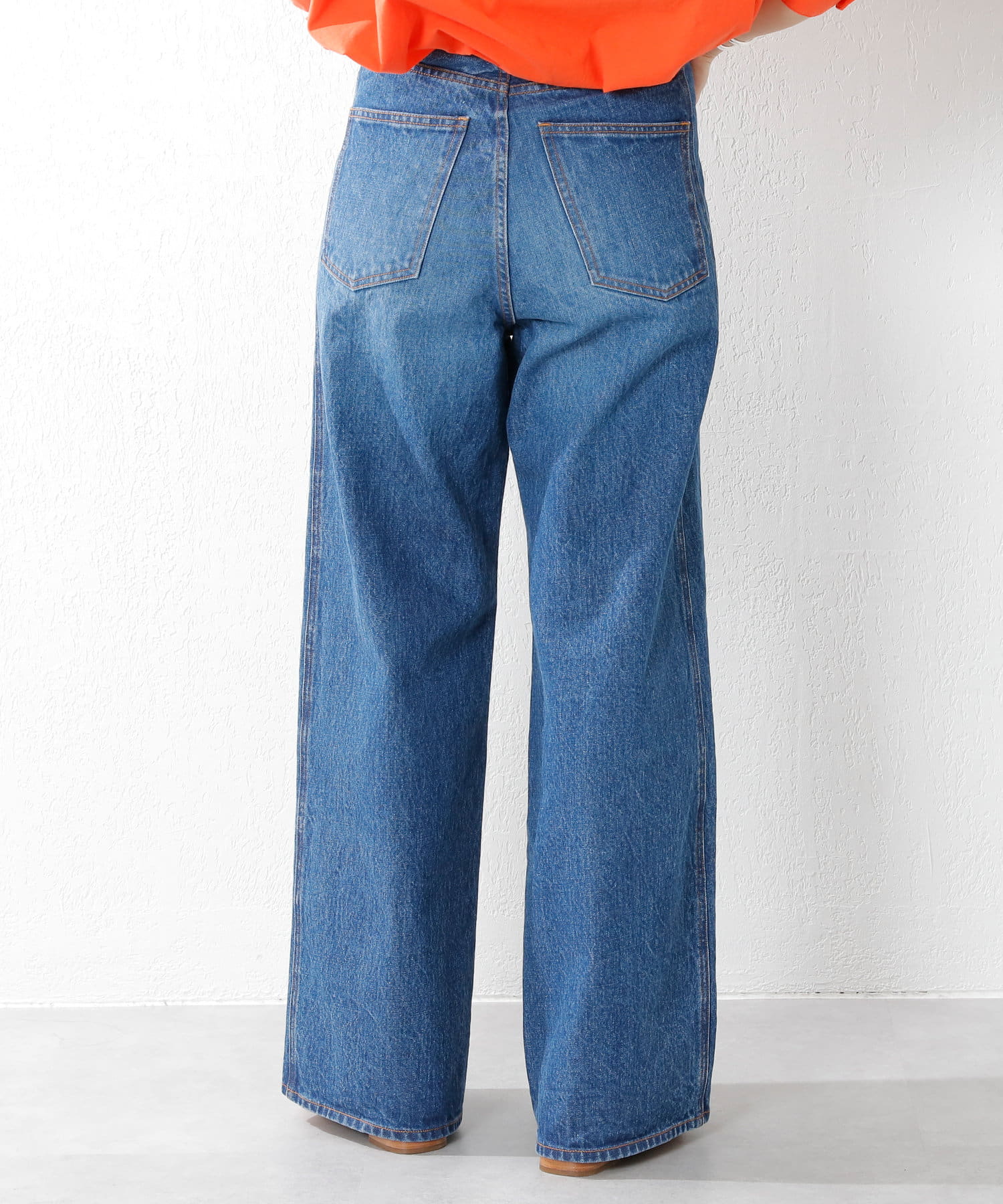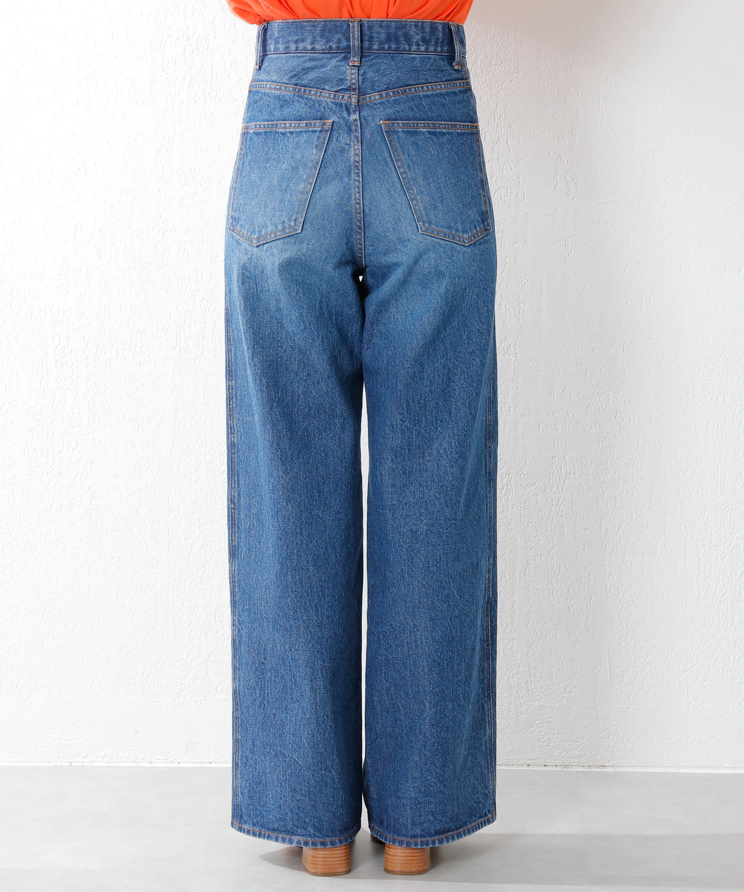 ※インディゴ染めの特性上、着用中の摩擦や汗などにより、他の衣類や下着、淡い色のベルトやカバン、ソファーなどに色移りしますのでコーディネートや取り扱いにはご注意ください。