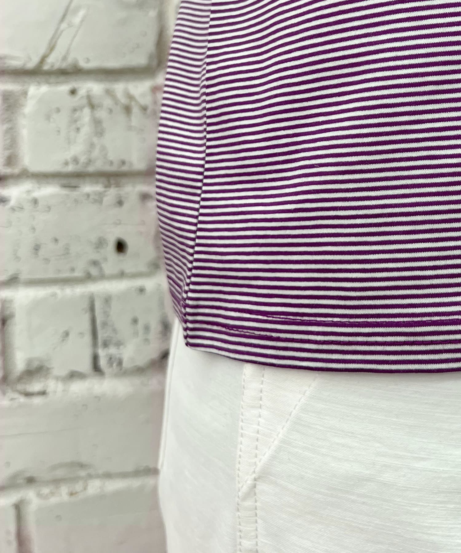 今っぽいコンパクトなサイズ感と、細ボーダーがヘルシーな印象に。
