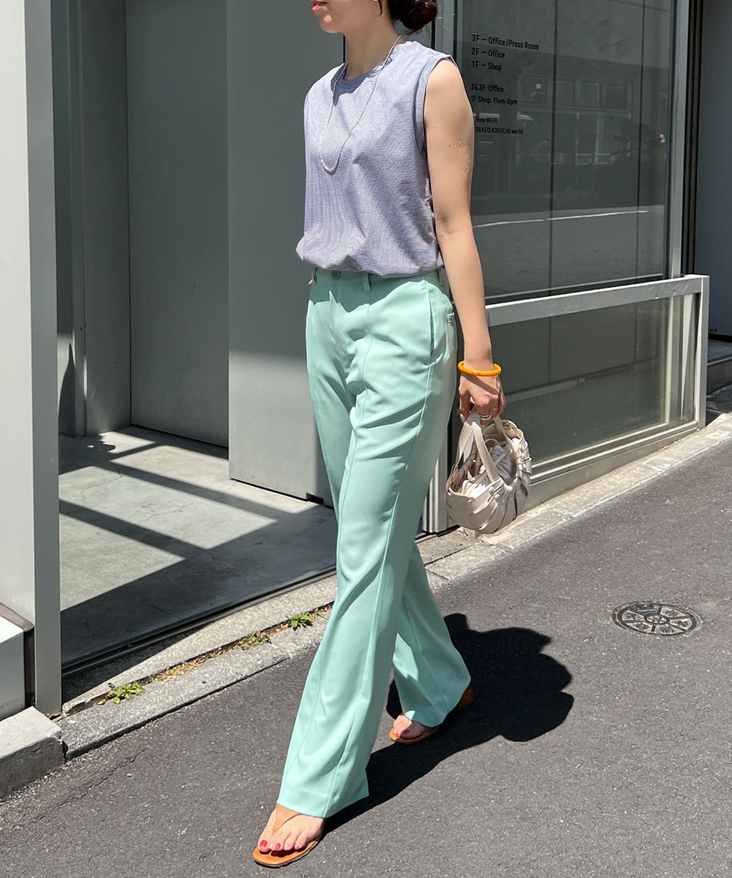 センターステッチフレアパンツ(SNZ1021602A0001)や、タックギャザーロングスカート(SNZ1021201A0003)との合わせがおすすめです。