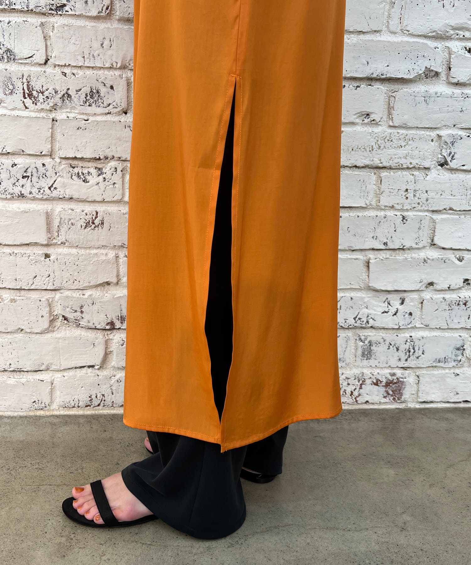 程よい艶感と透け感がドレッシー過ぎず合わせやすい1枚。