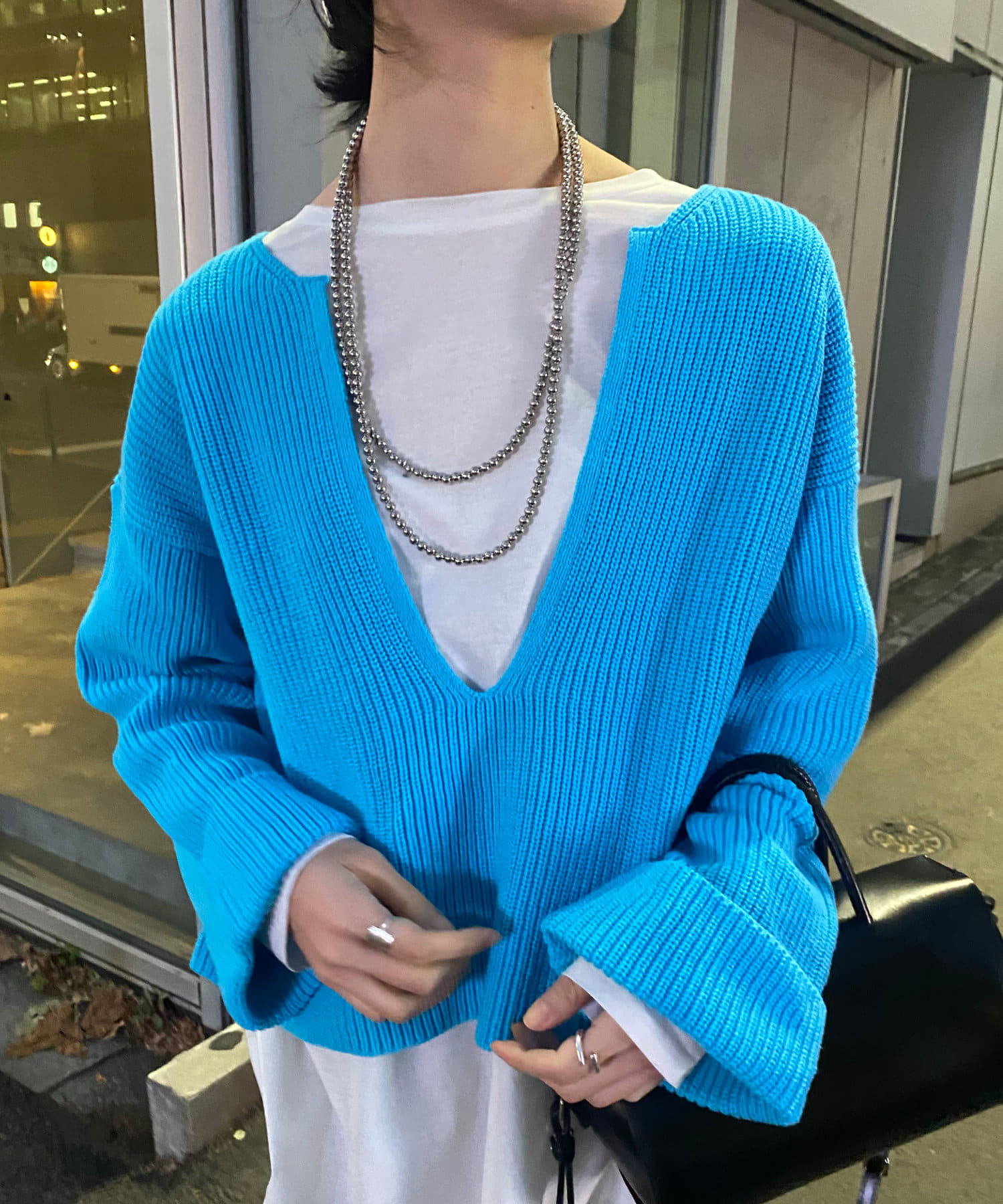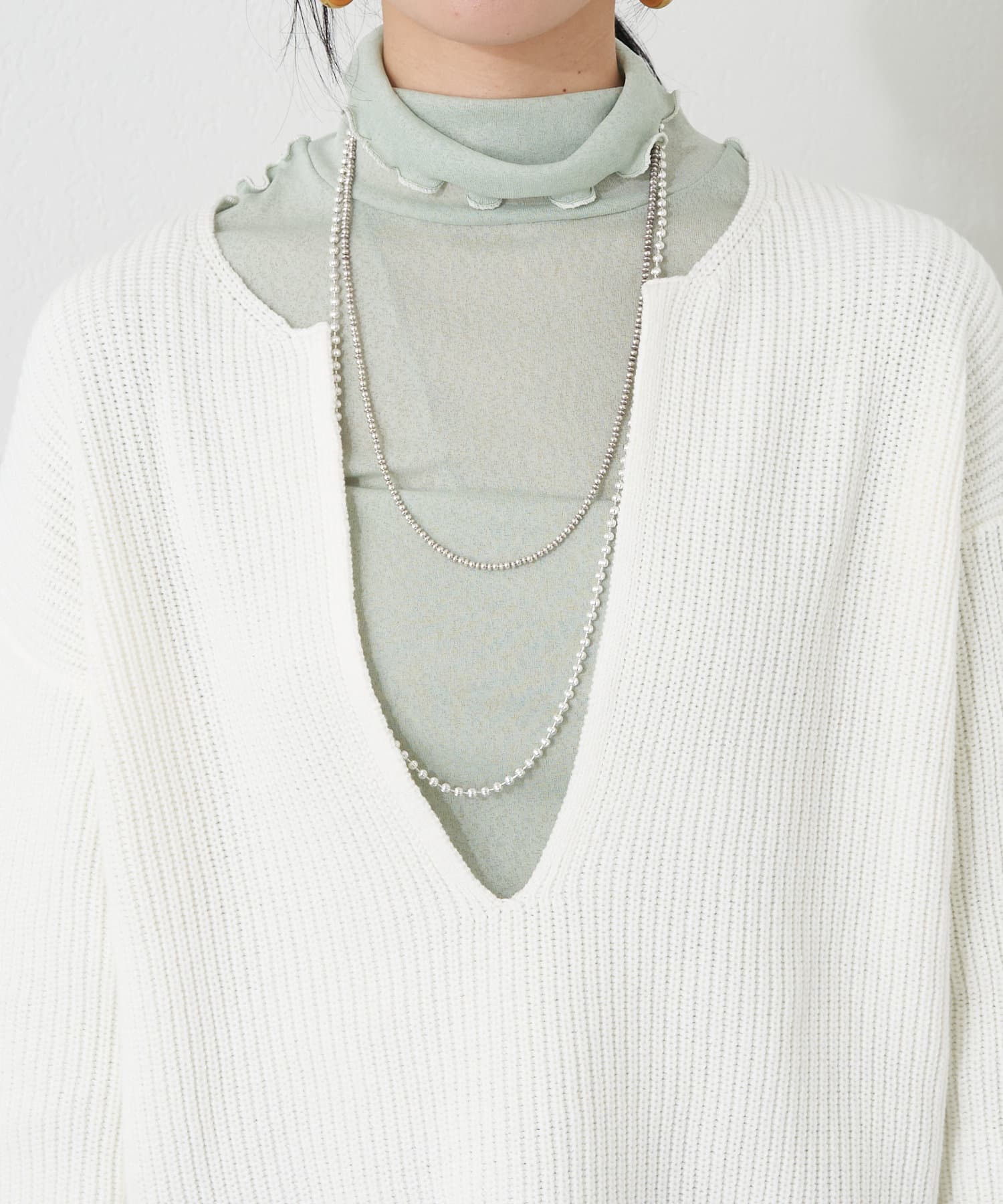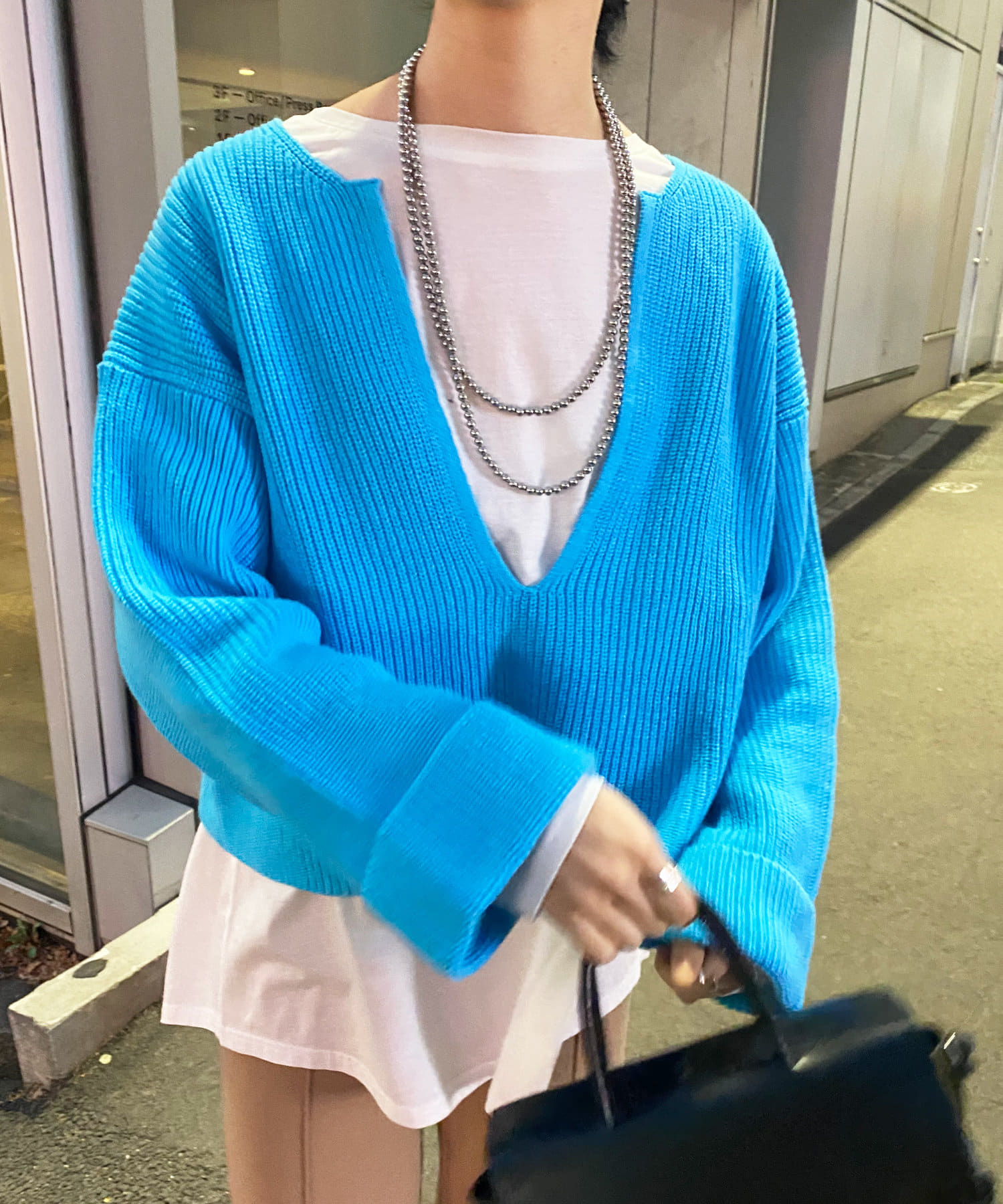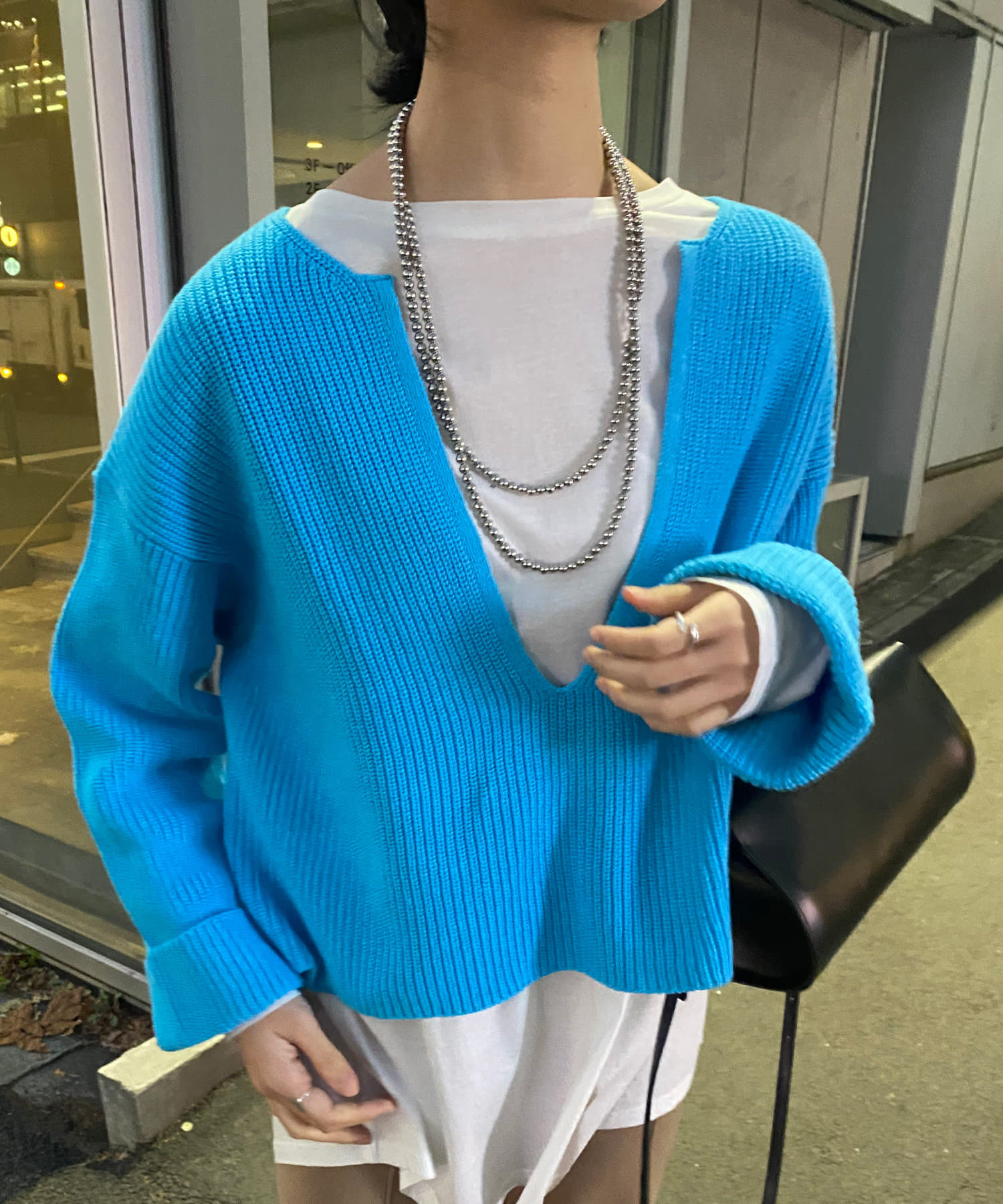深めに開けたスリットネックは、デコルテラインを綺麗に見せてくれます。