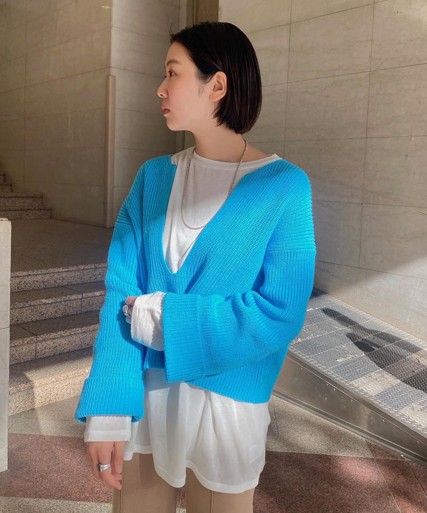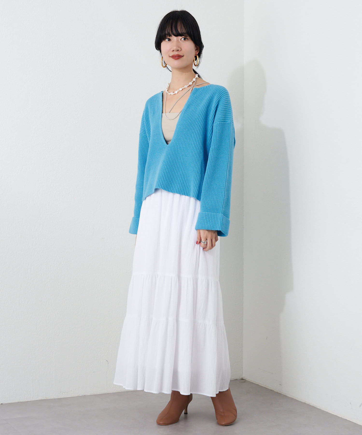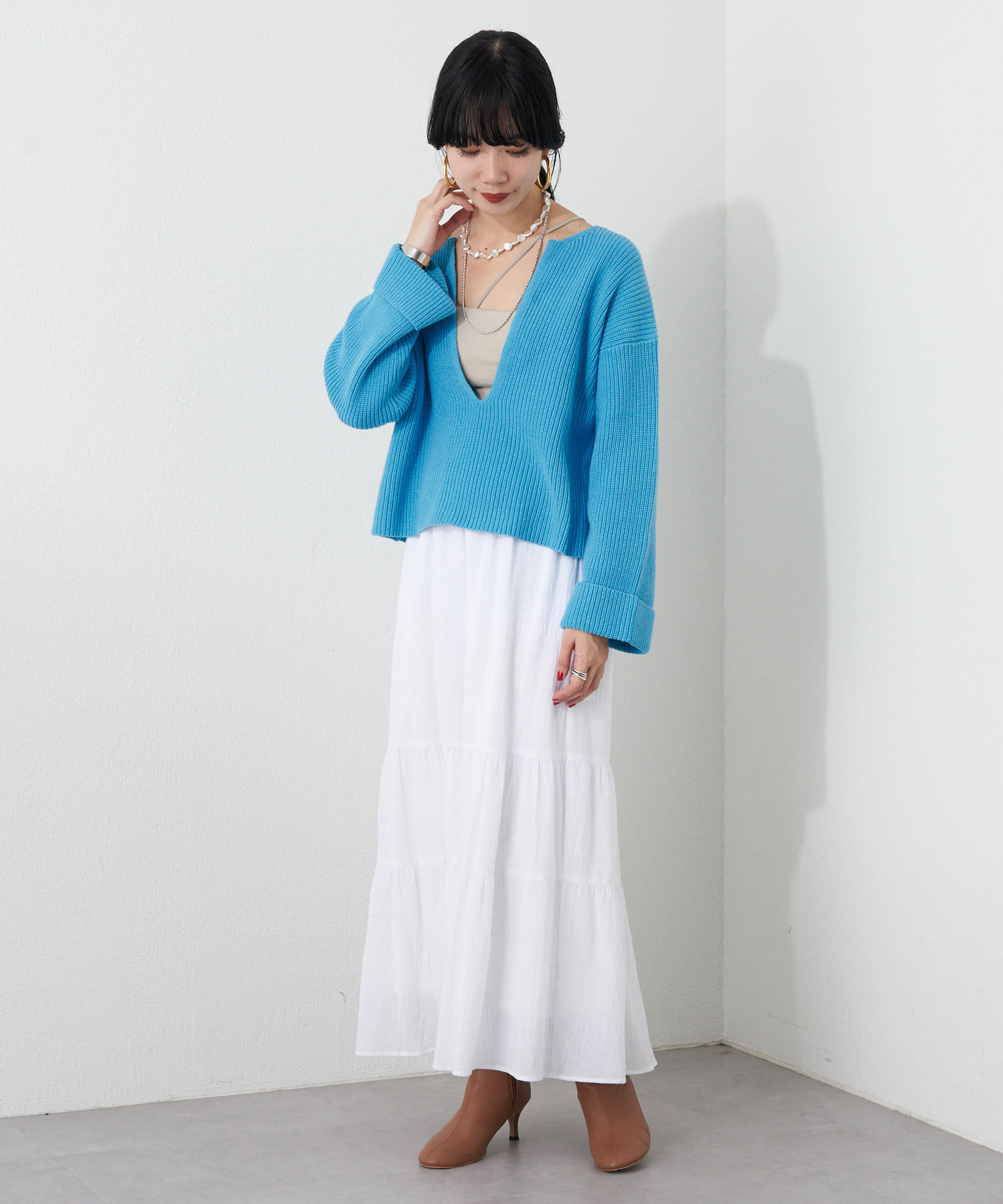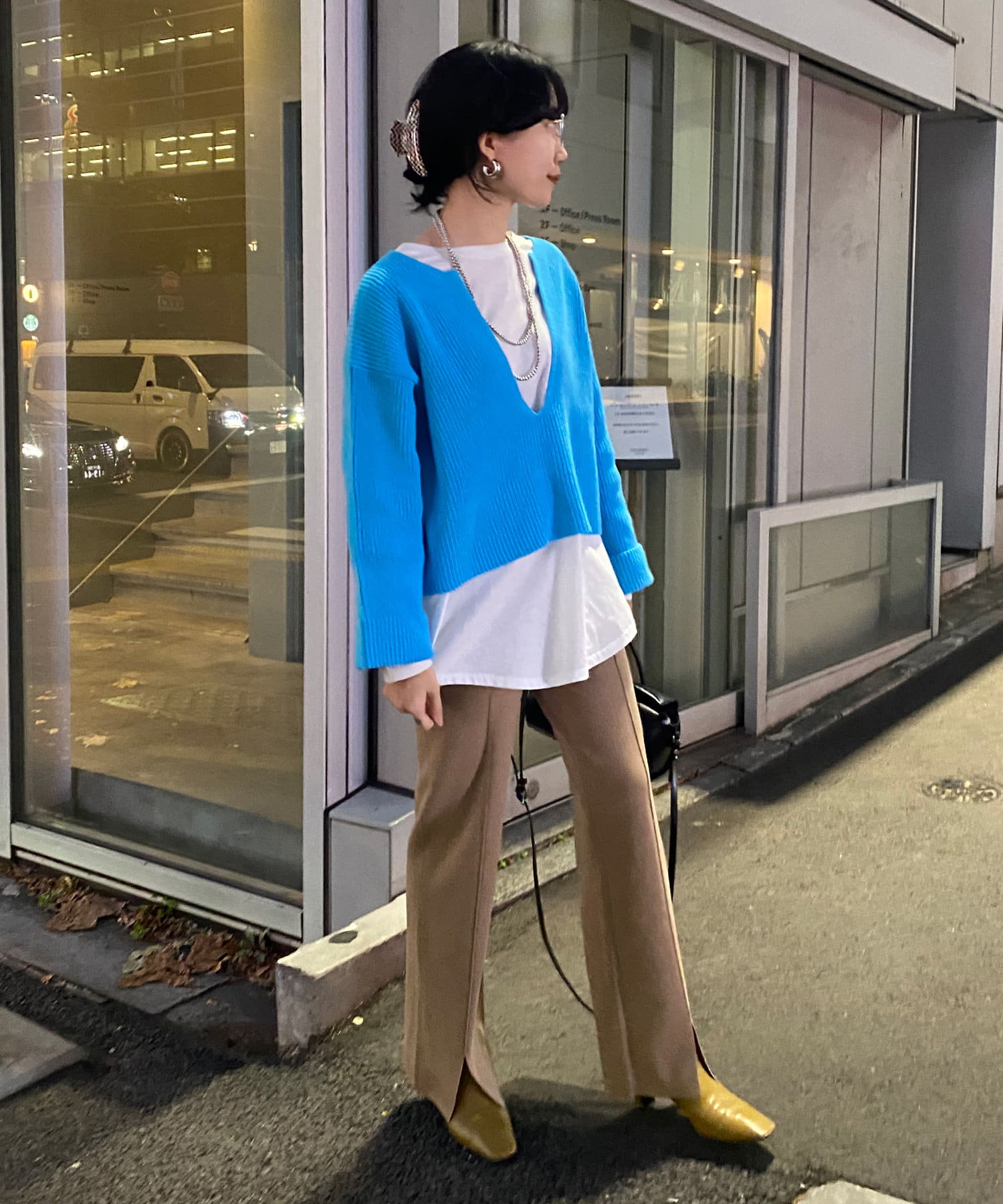 ルーズロンTee(SNZ1022106A0007)や、ティアードロングスカート(SNZ1022201A0001)との合わせがおすすめです。