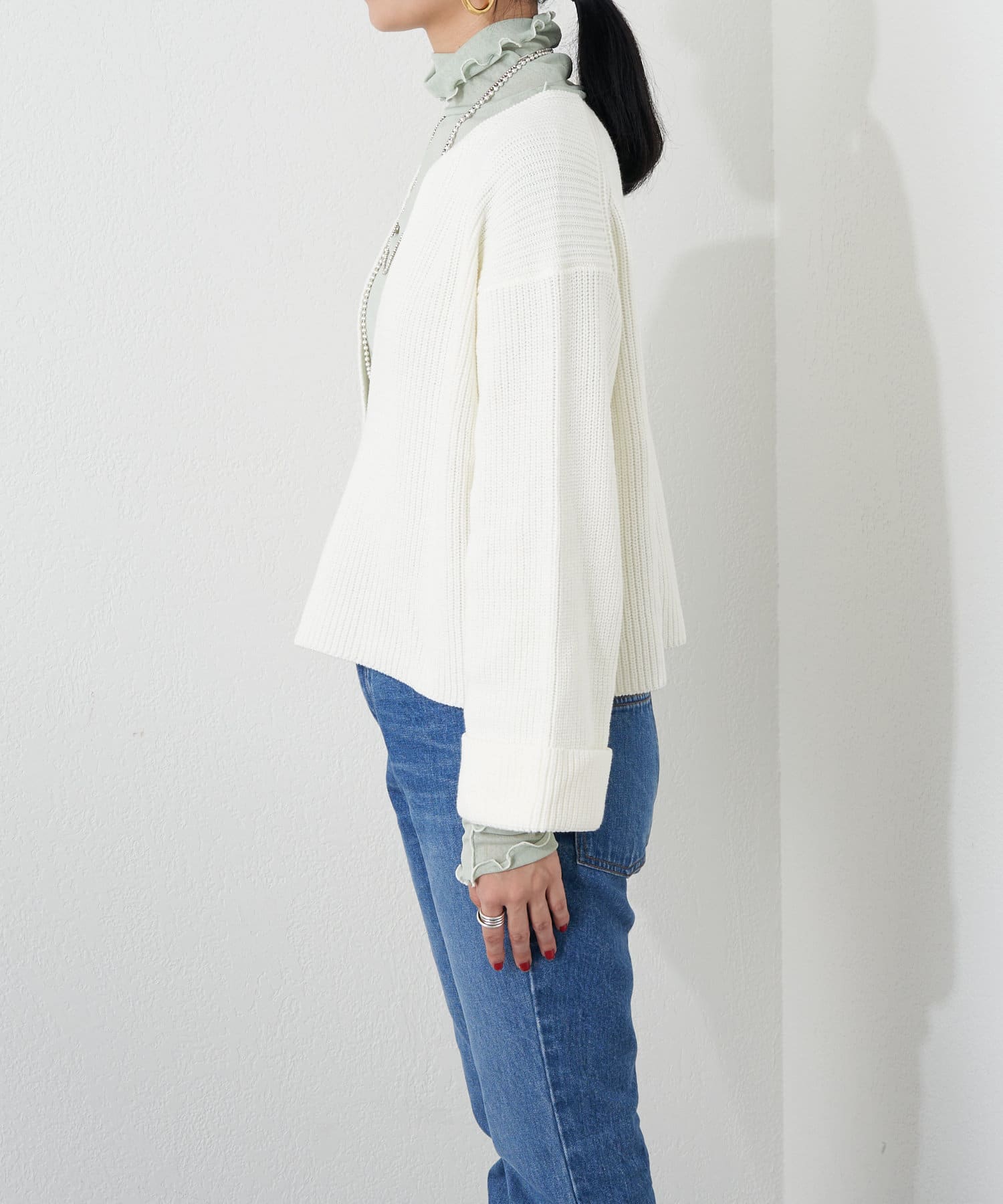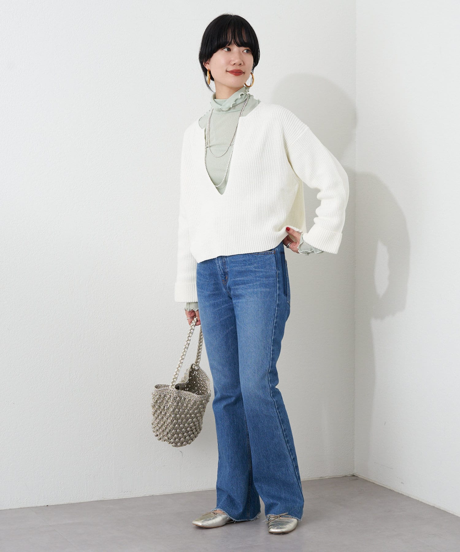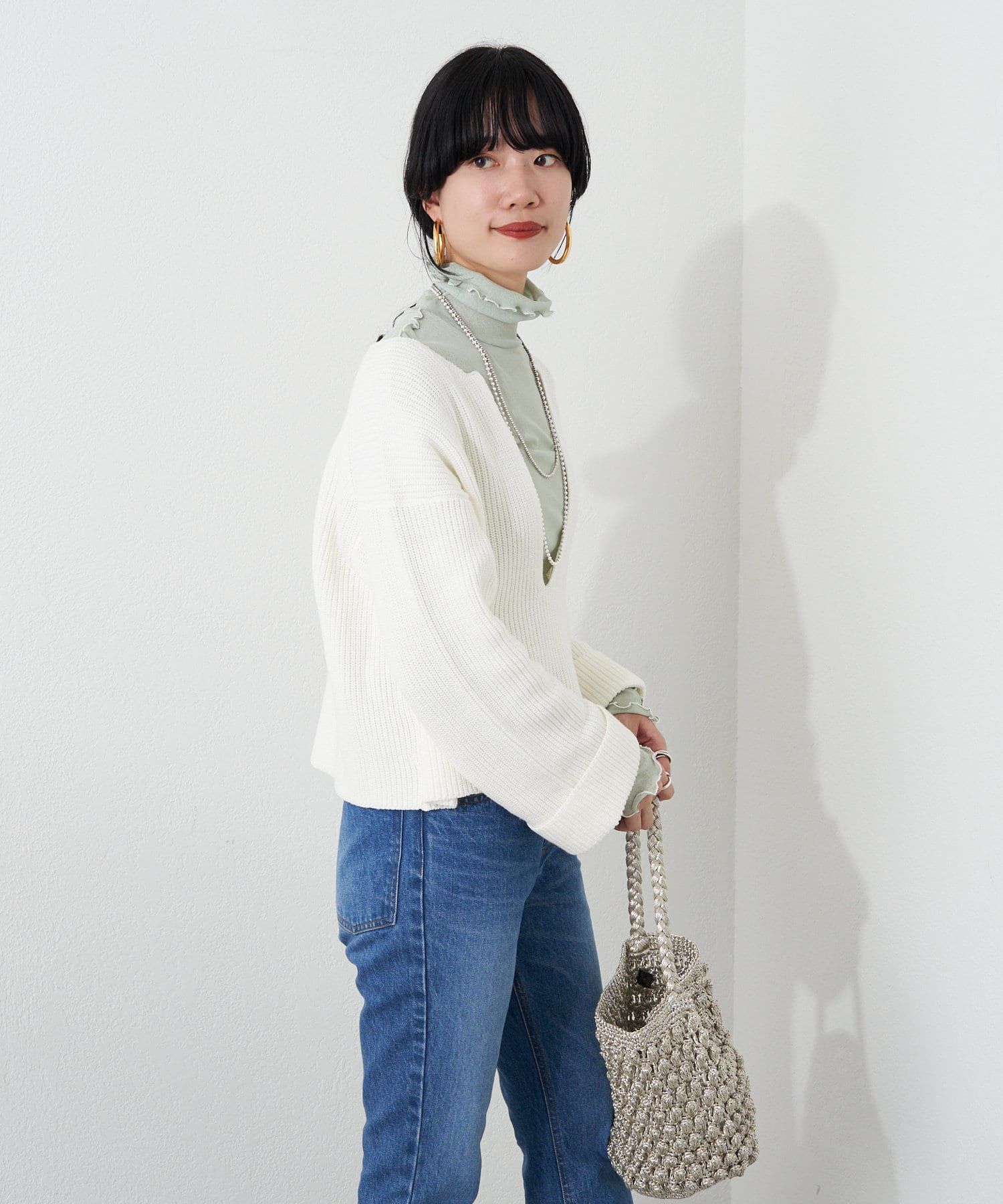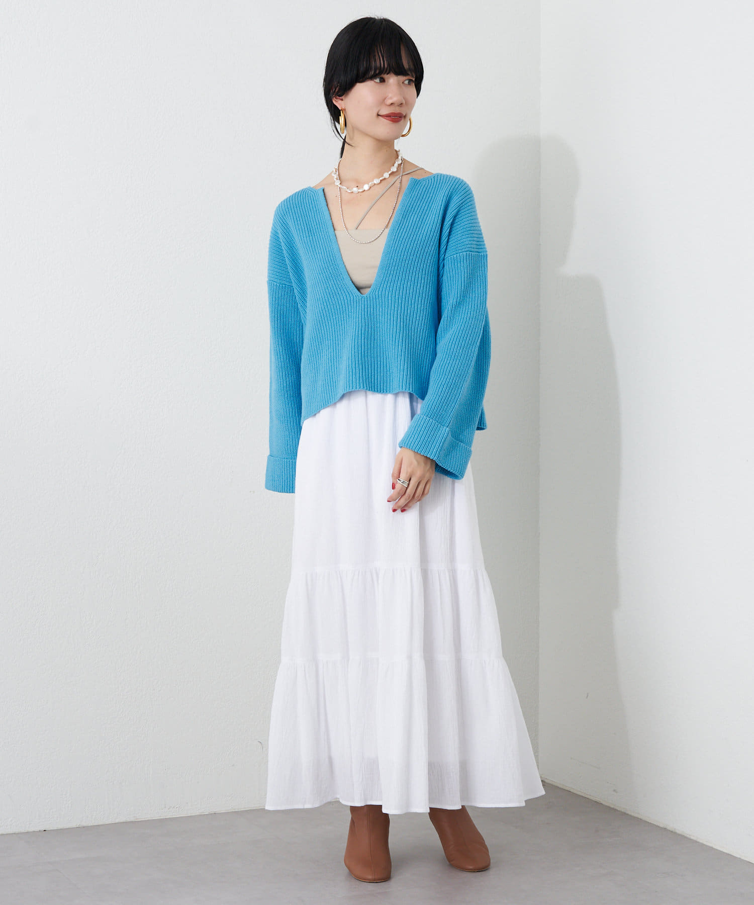 ルーズロンTee(SNZ1022106A0007)や、ティアードロングスカート(SNZ1022201A0001)との合わせがおすすめです。