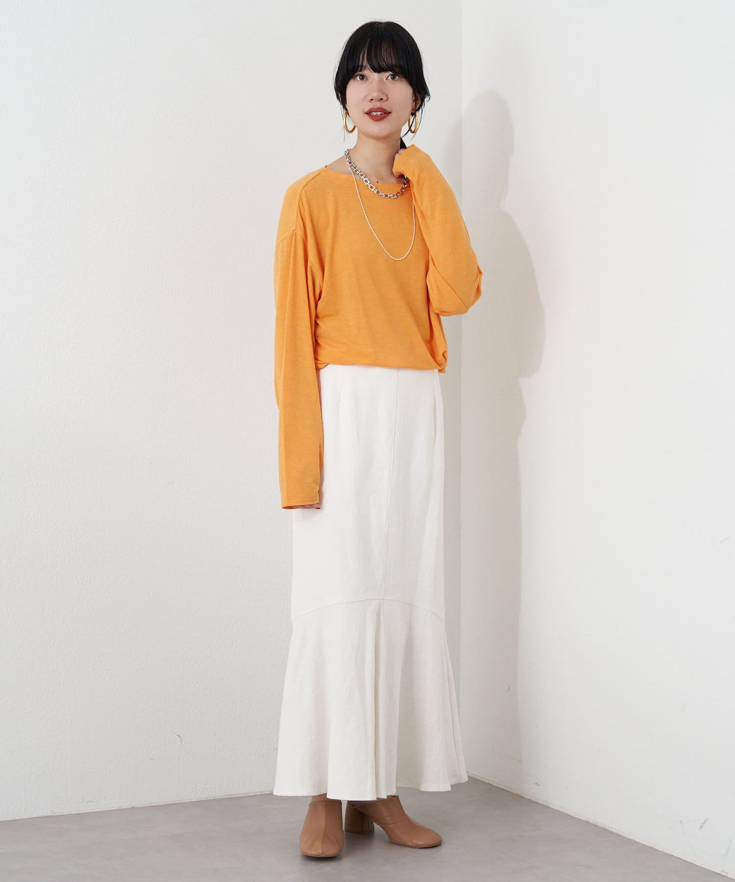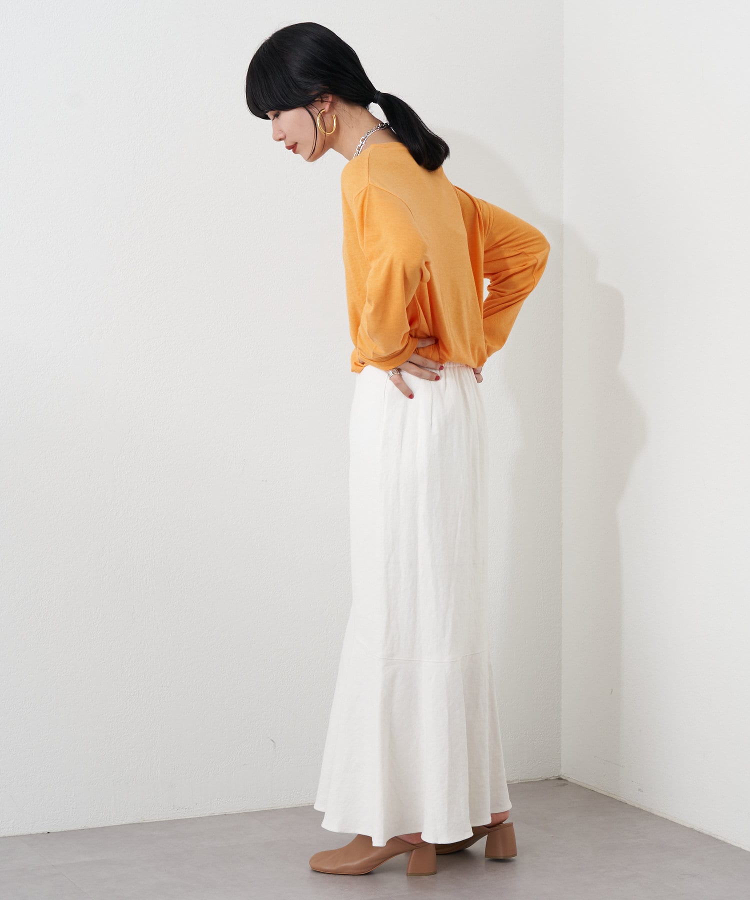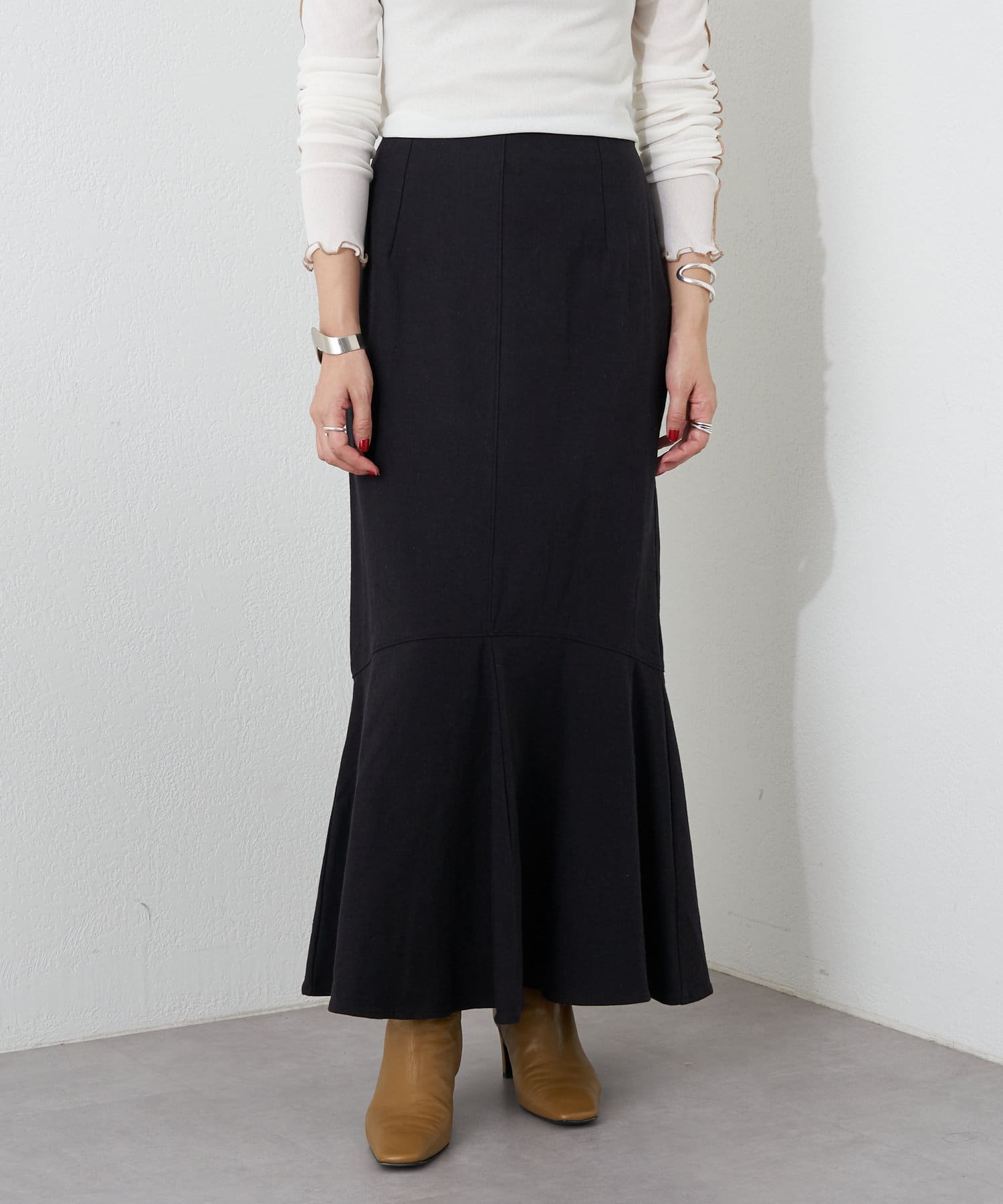 ♦リネン混生地を使用した、ペプラムマーメイドスカート