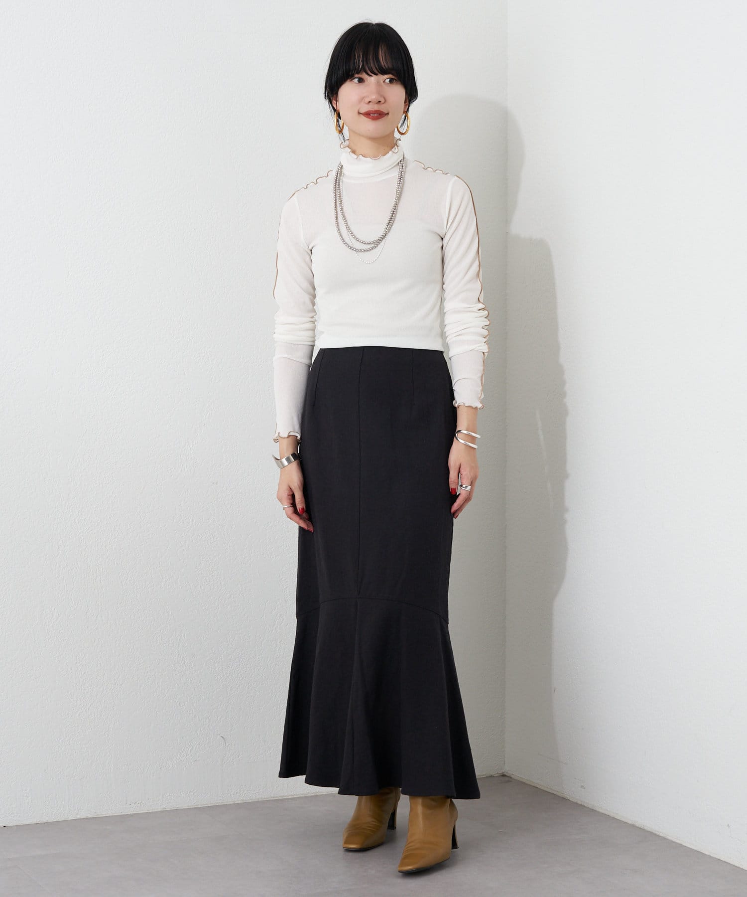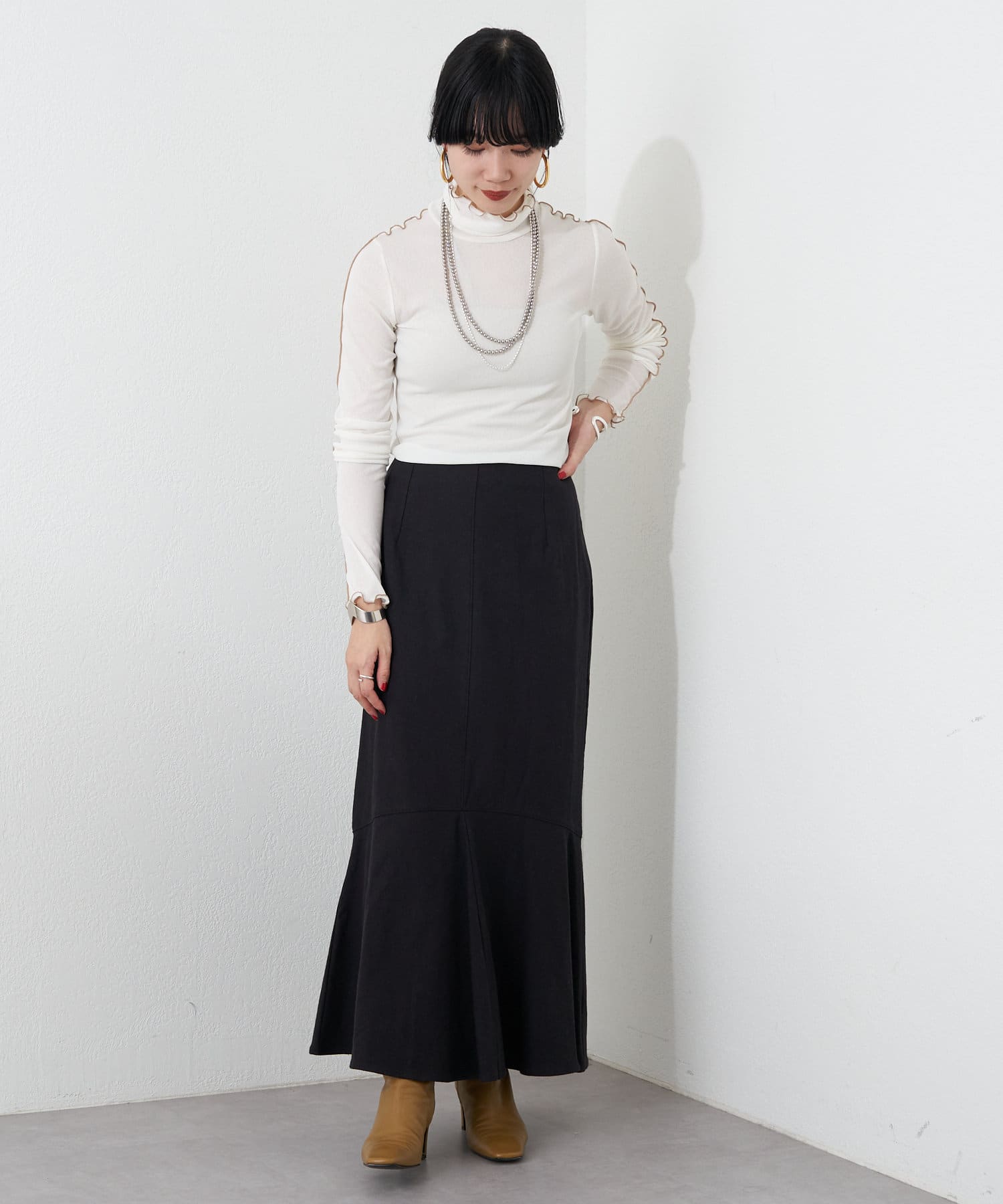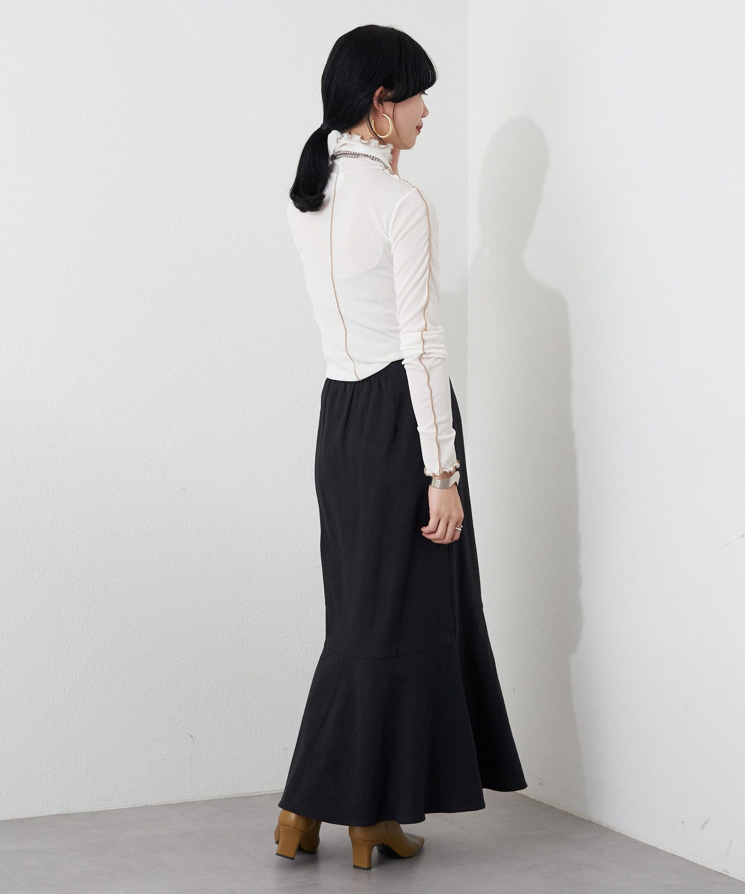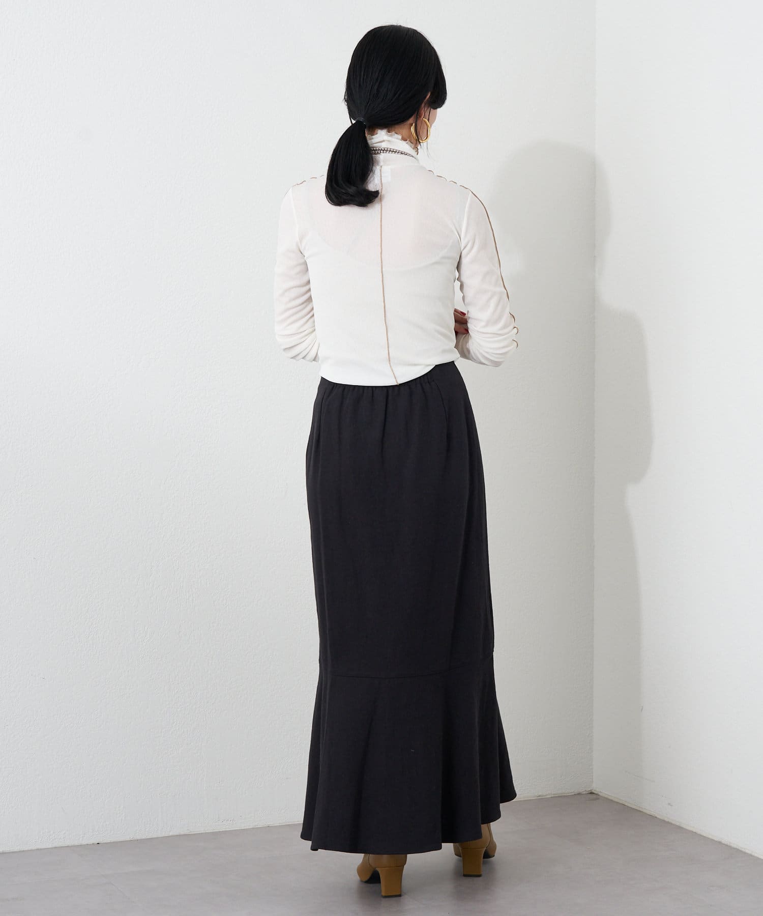 程よいマーメイドラインと後ろに施した部分ゴムでリラックス感もあります。