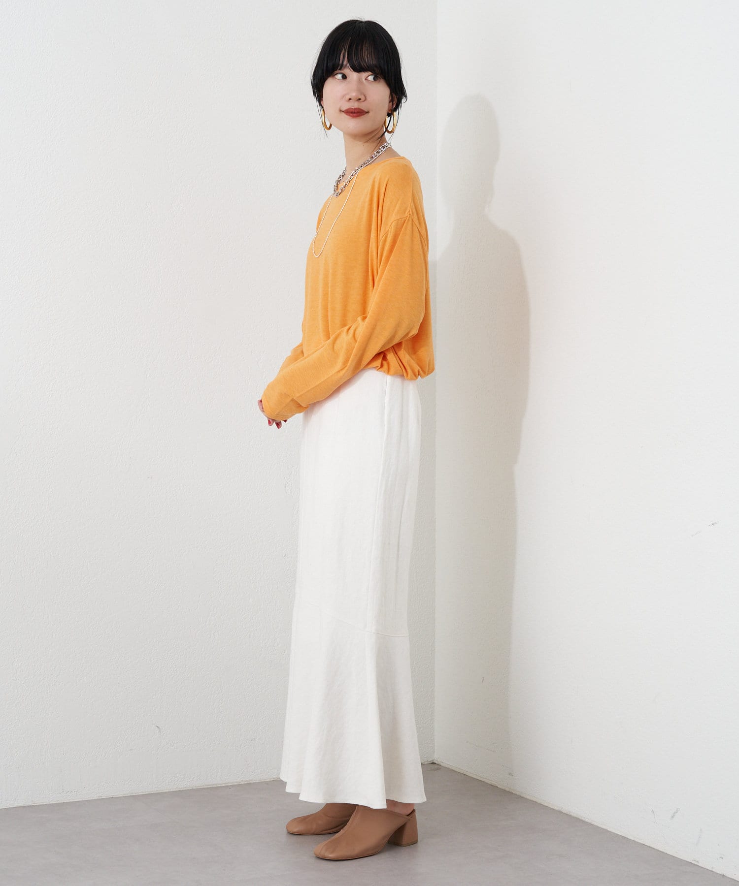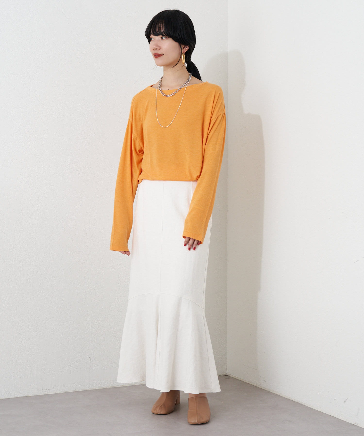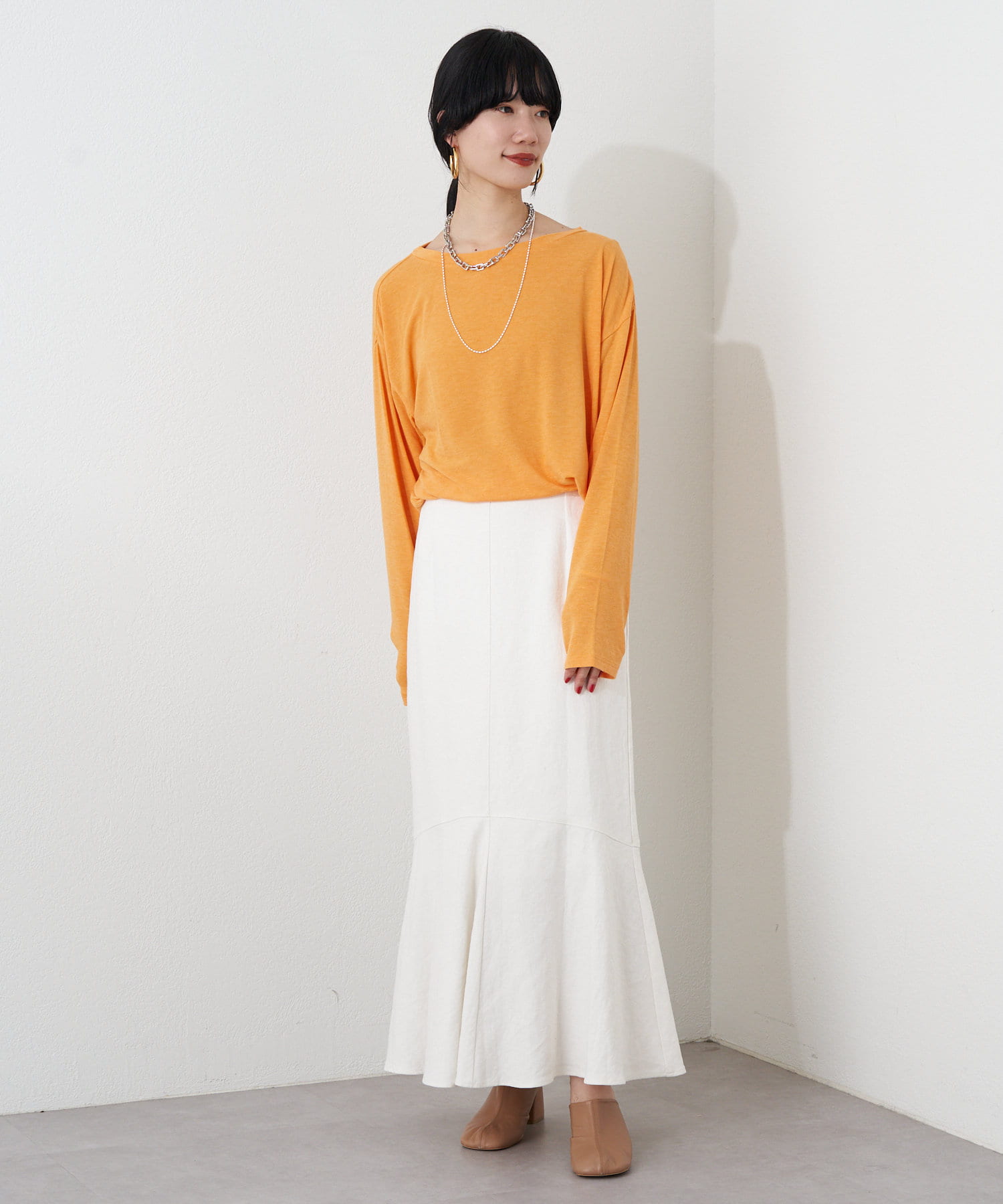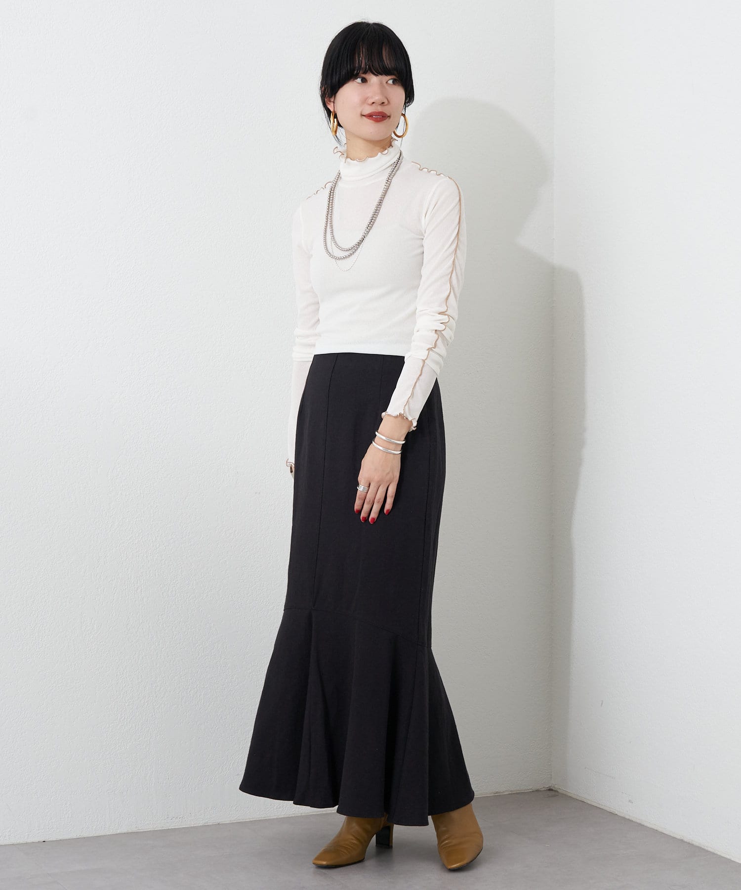 程よいマーメイドラインと後ろに施した部分ゴムでリラックス感もあります。