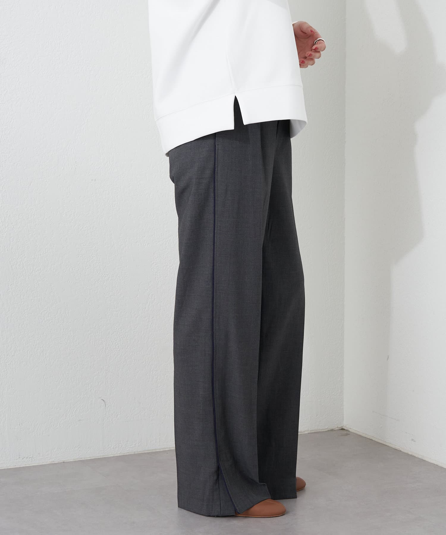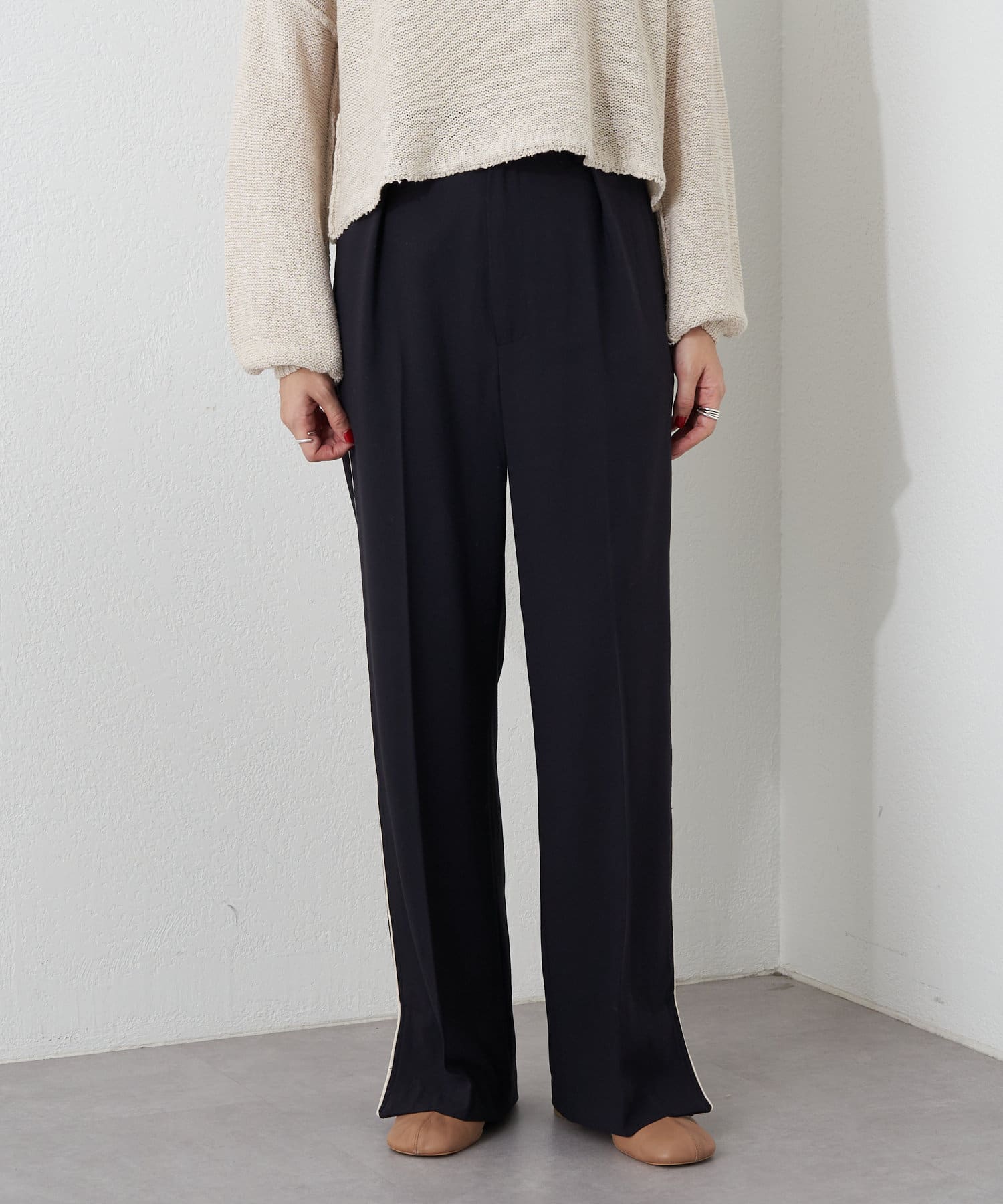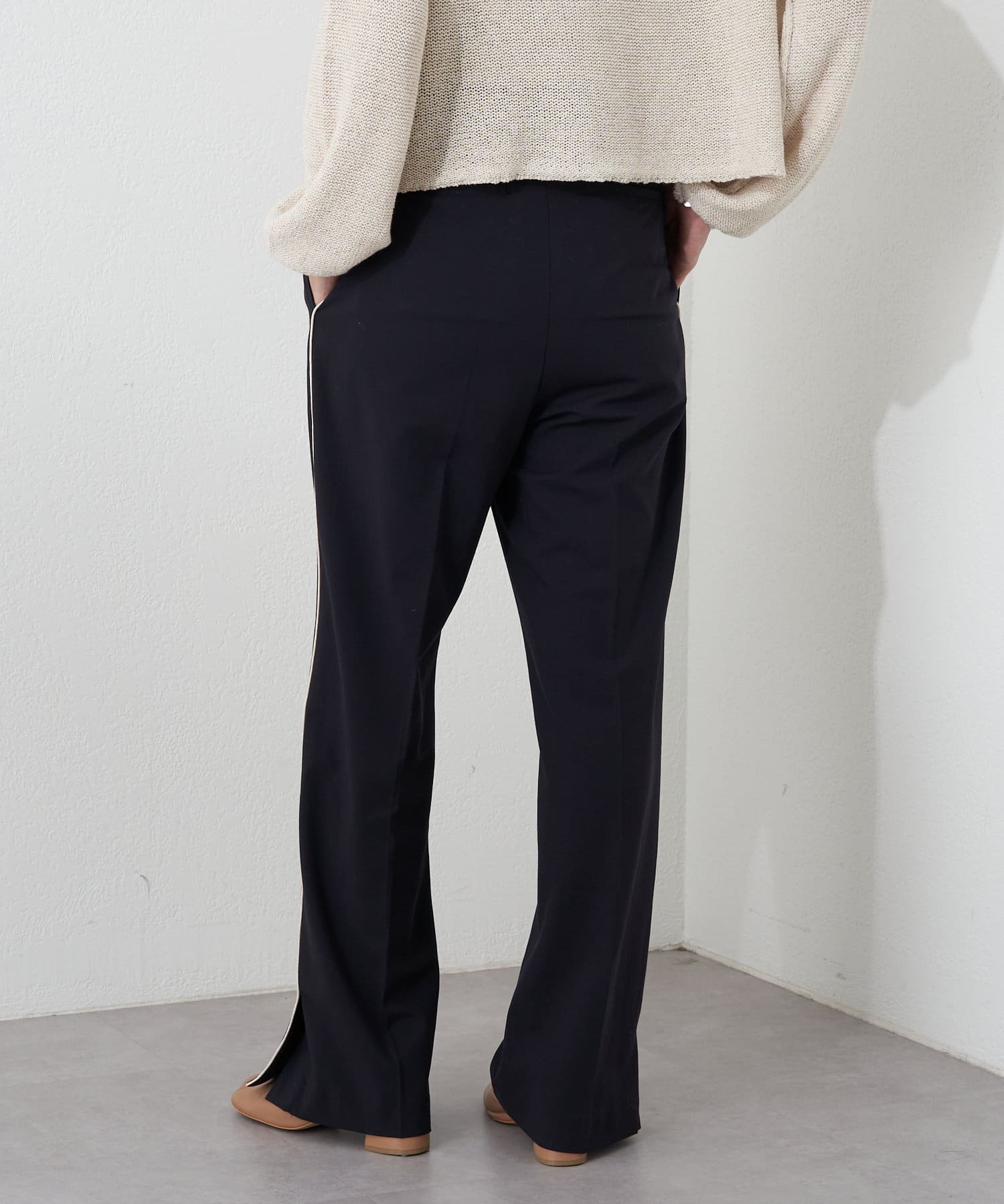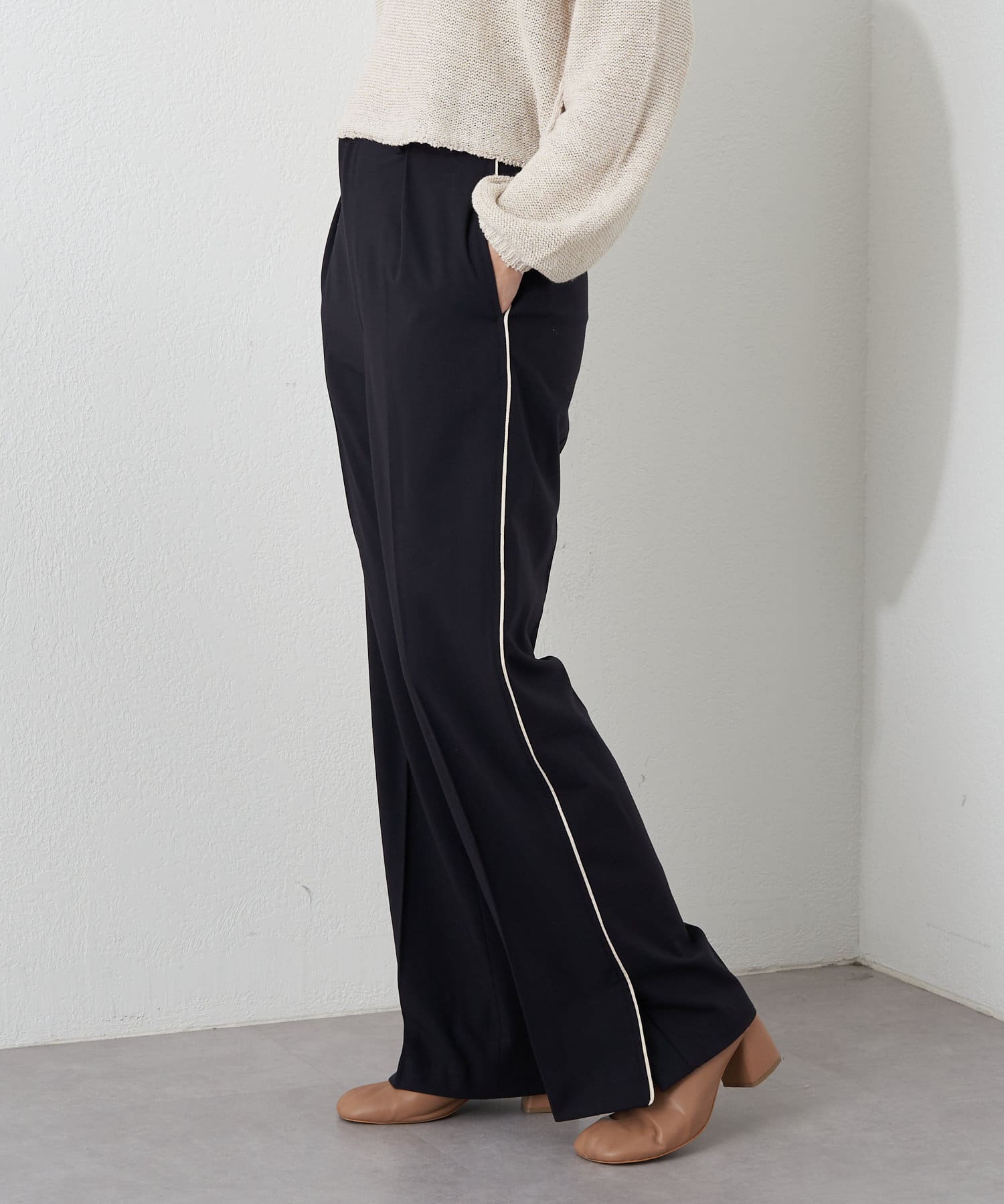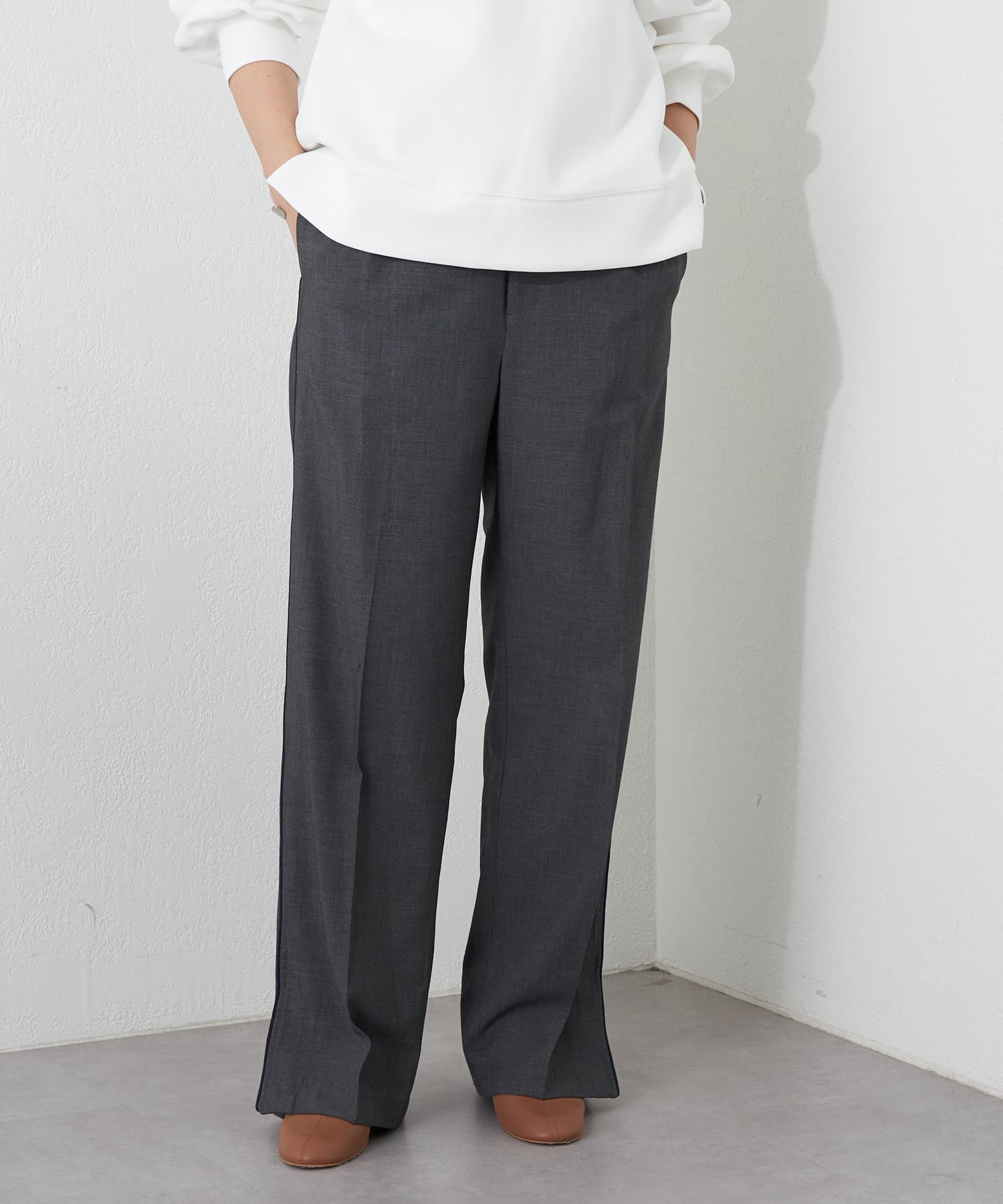 ♦サイドに施したラインコードが目を引くセンタープレス入りのパンツ