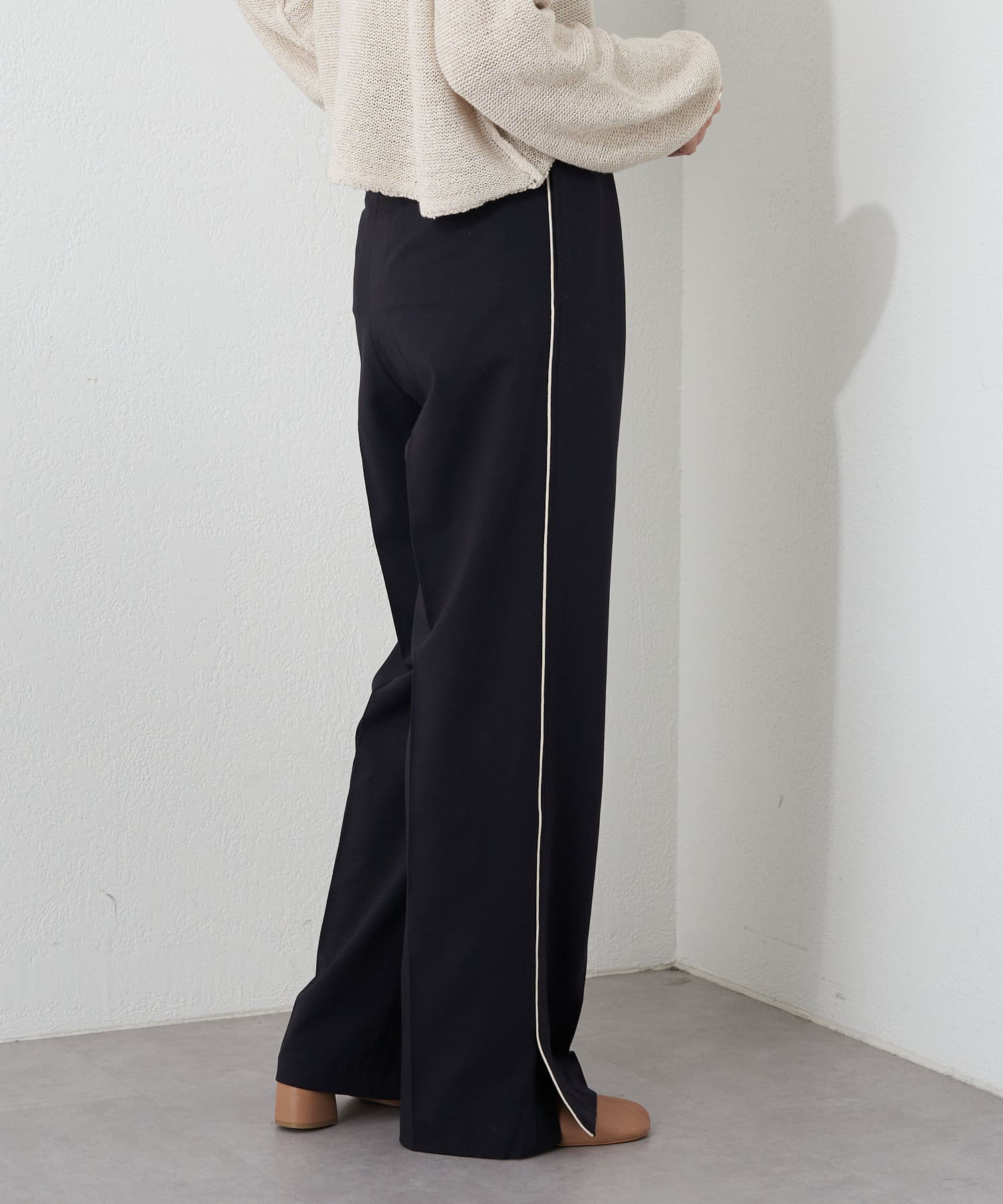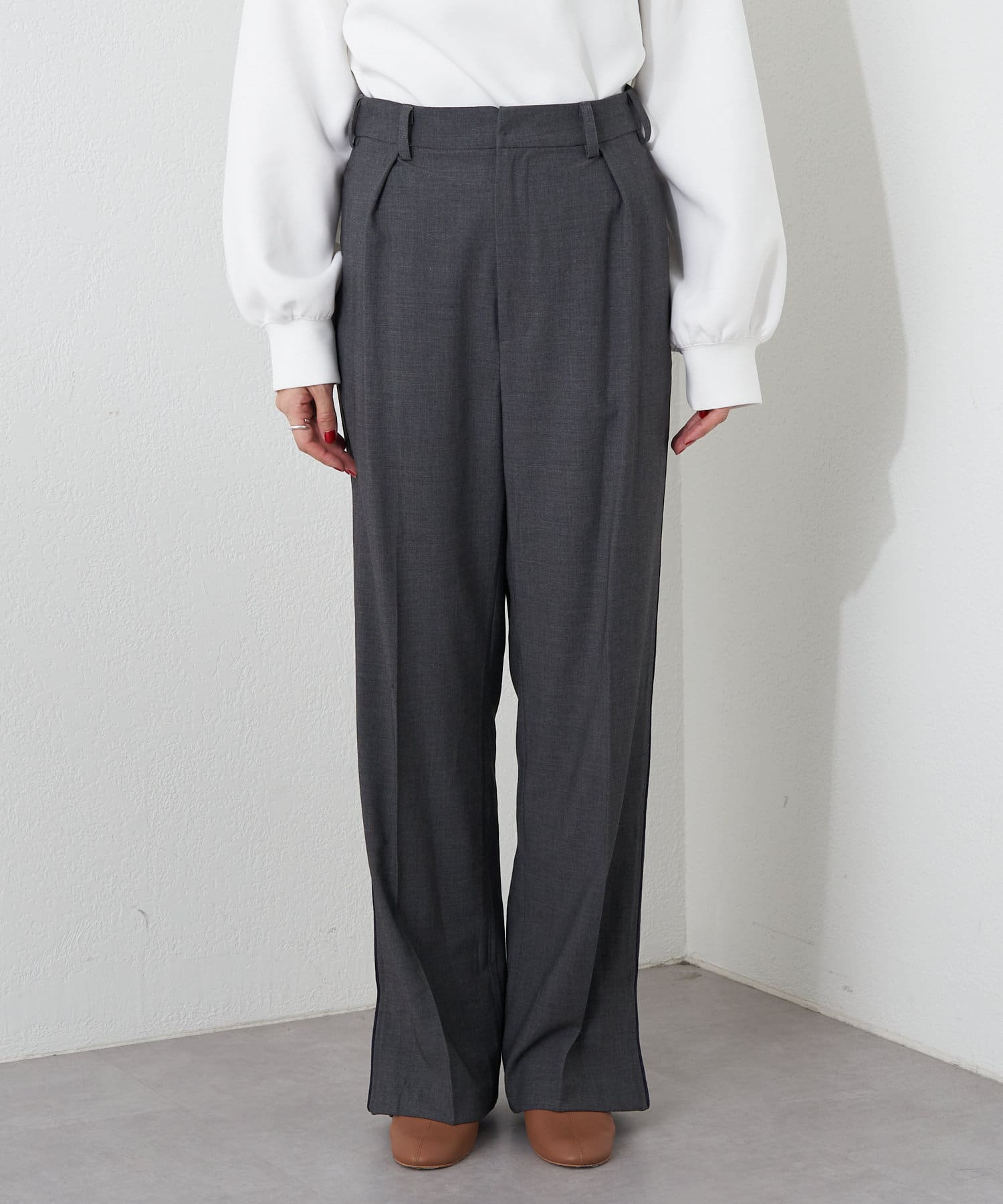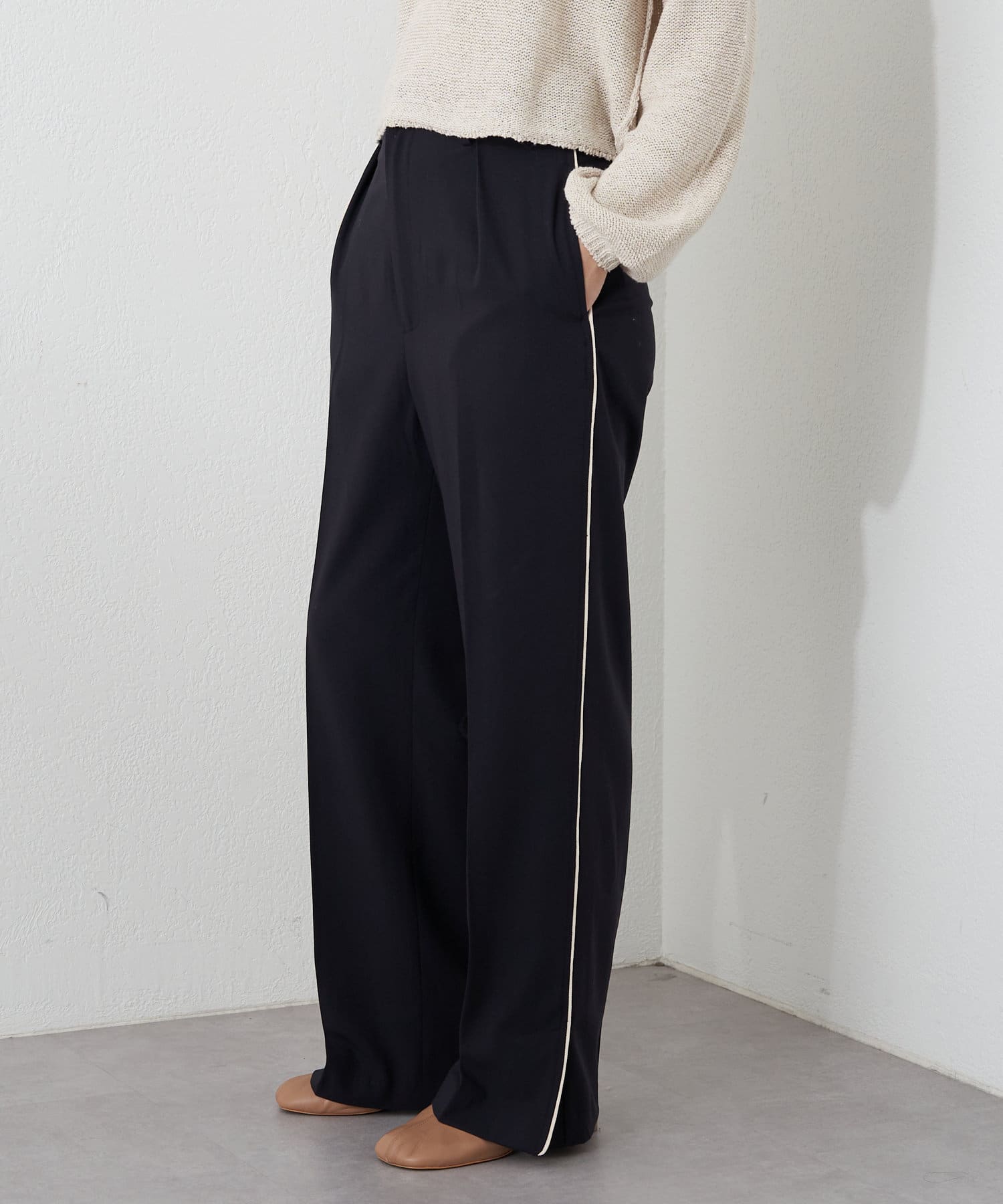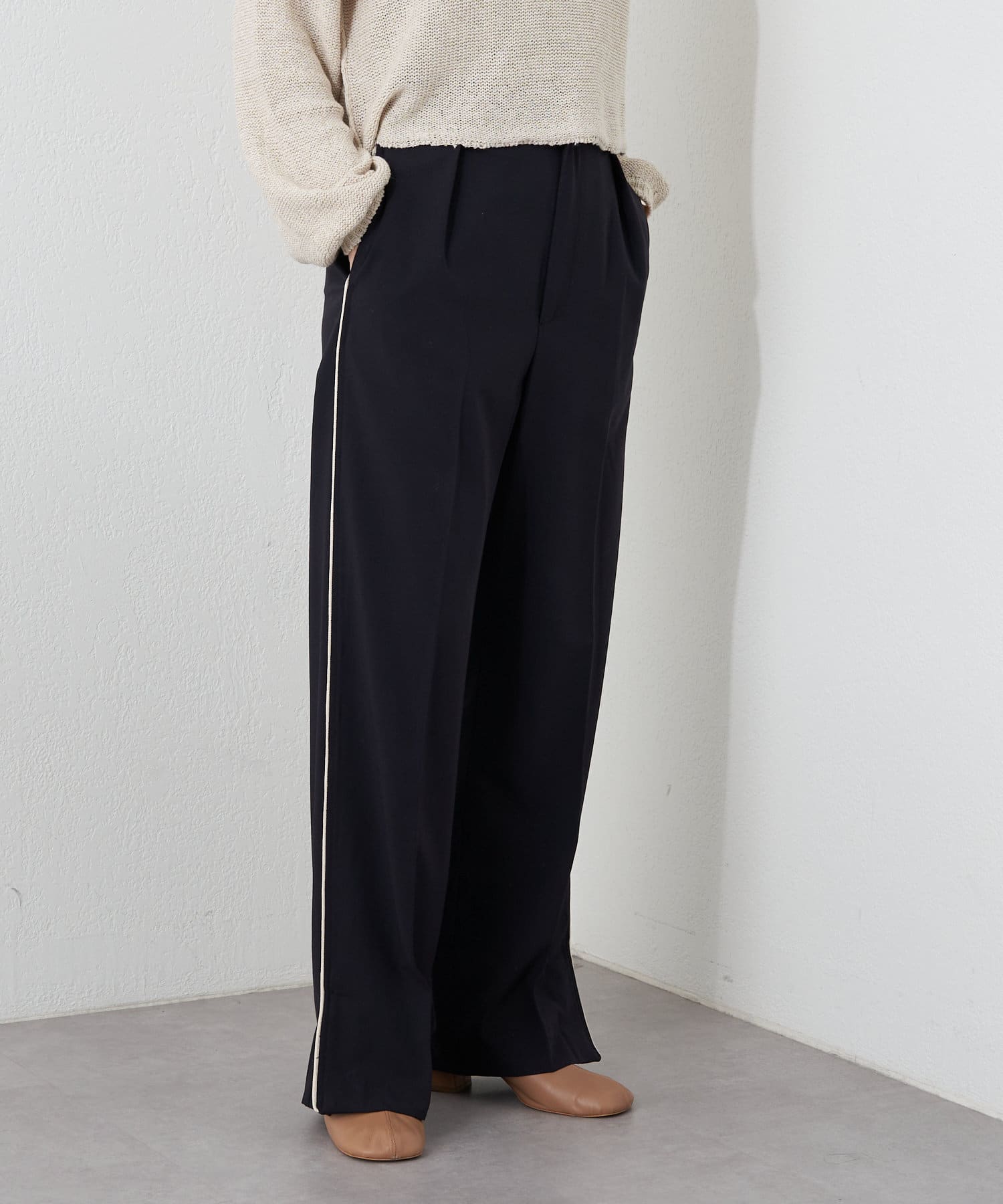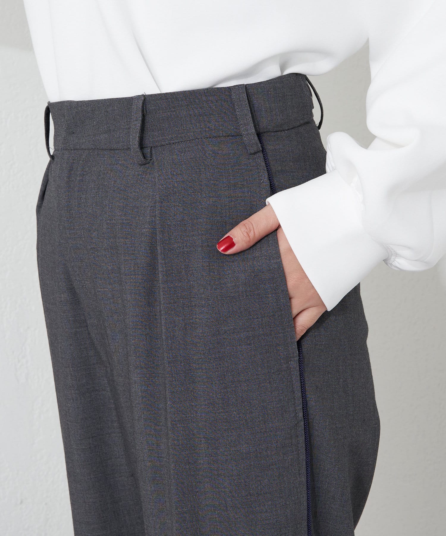 ♦サイドに施したラインコードが目を引くセンタープレス入りのパンツ