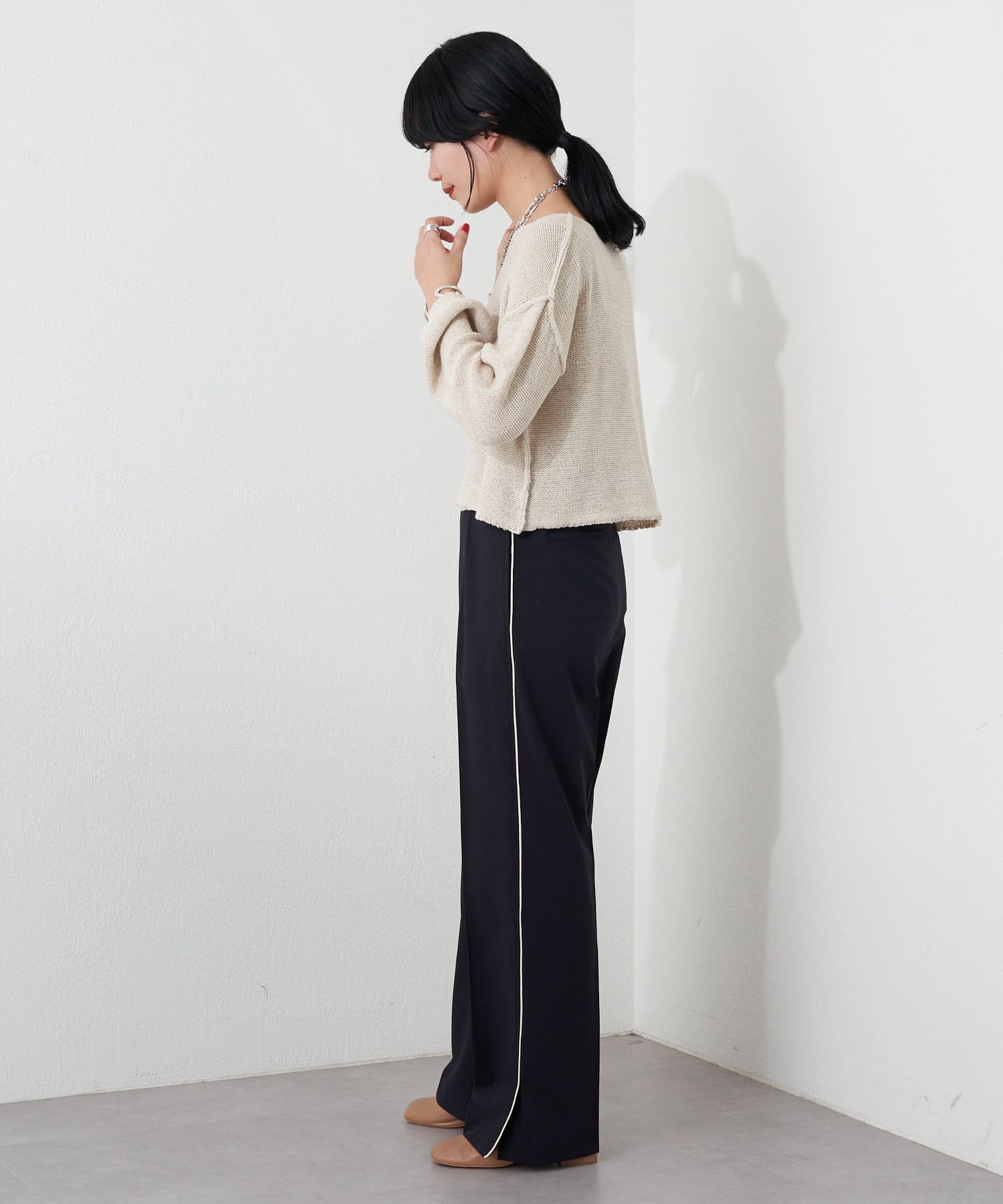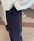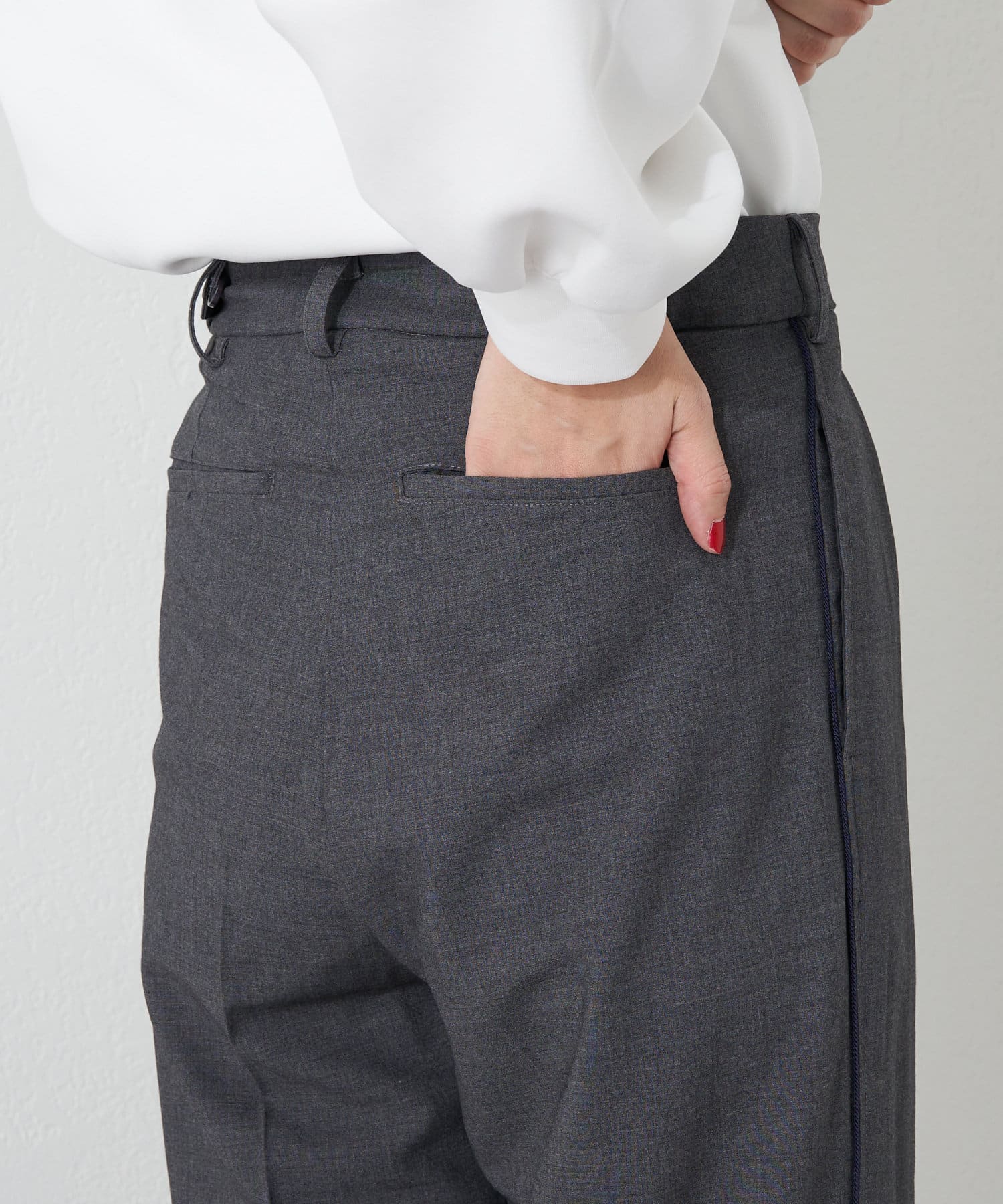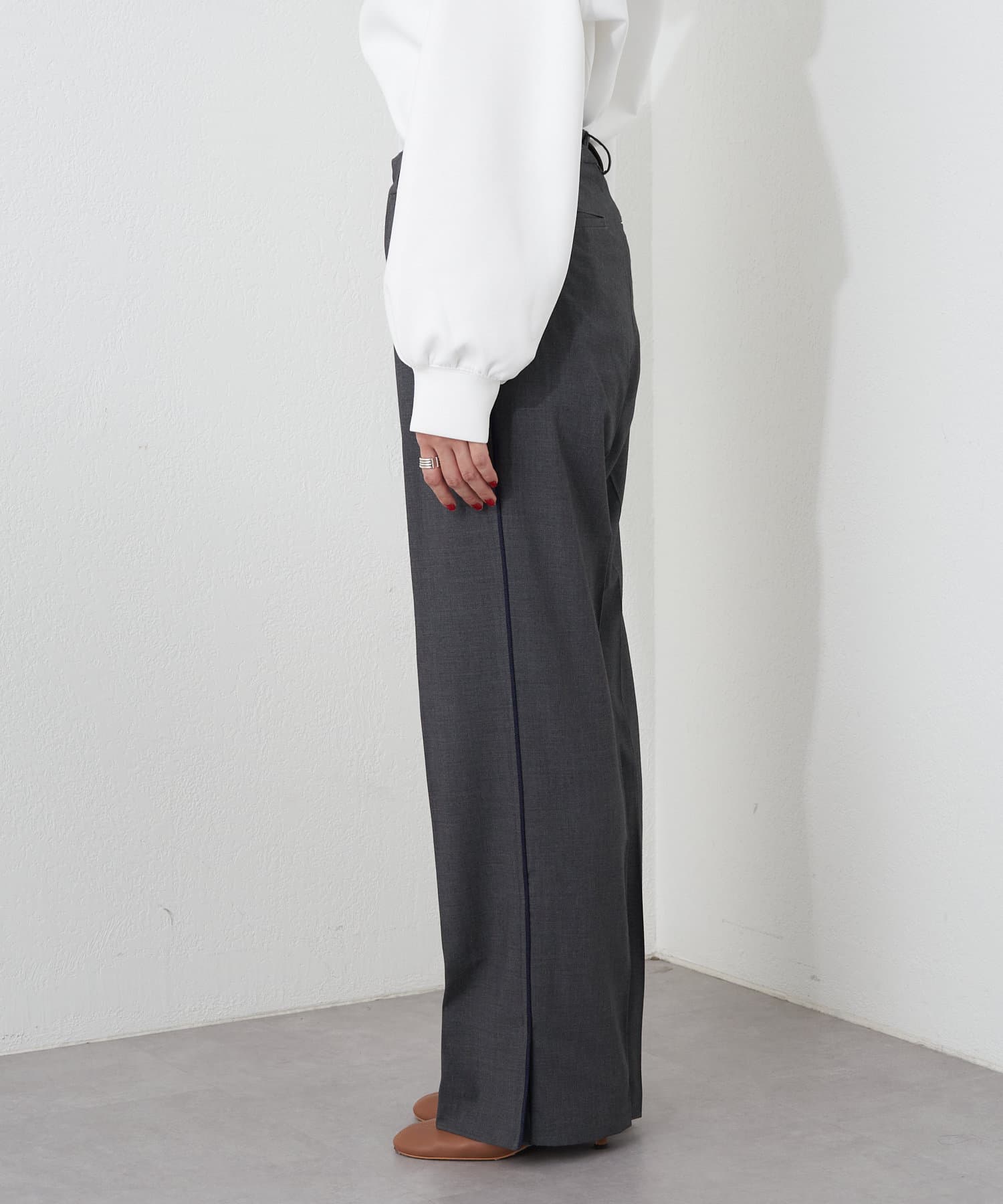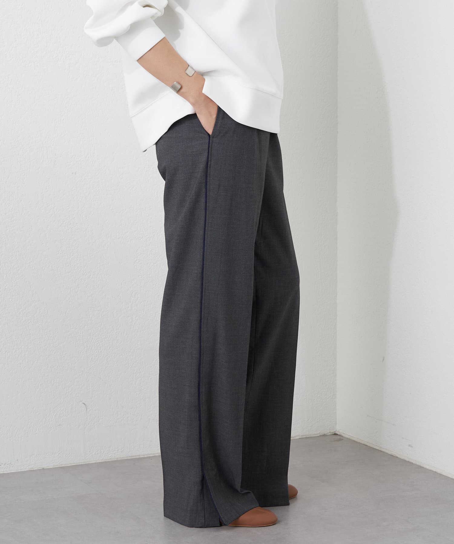 ♦サイドに施したラインコードが目を引くセンタープレス入りのパンツ