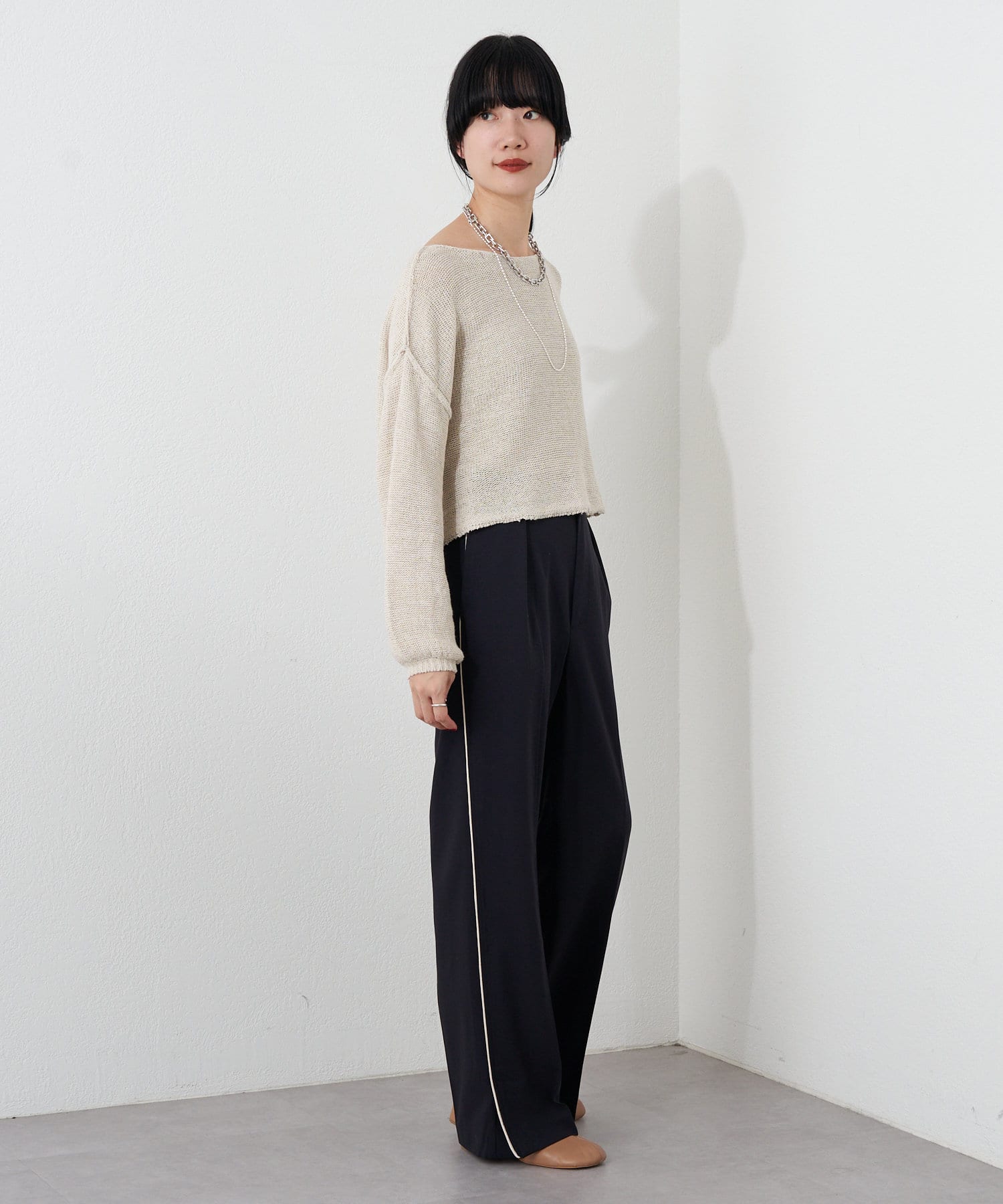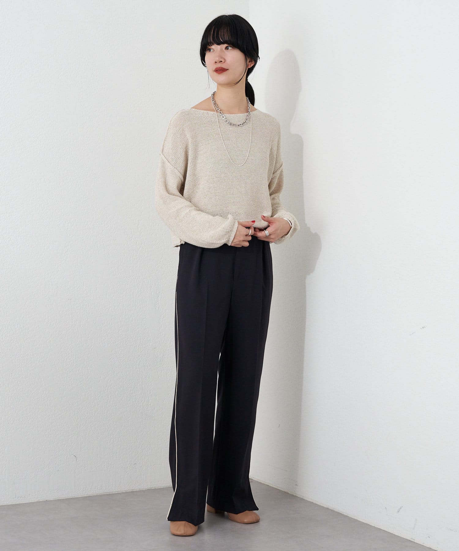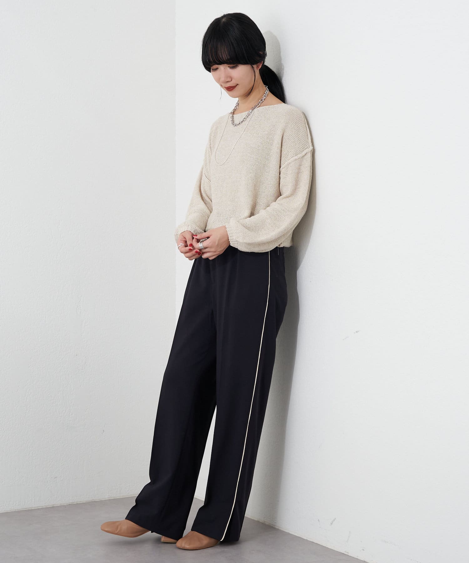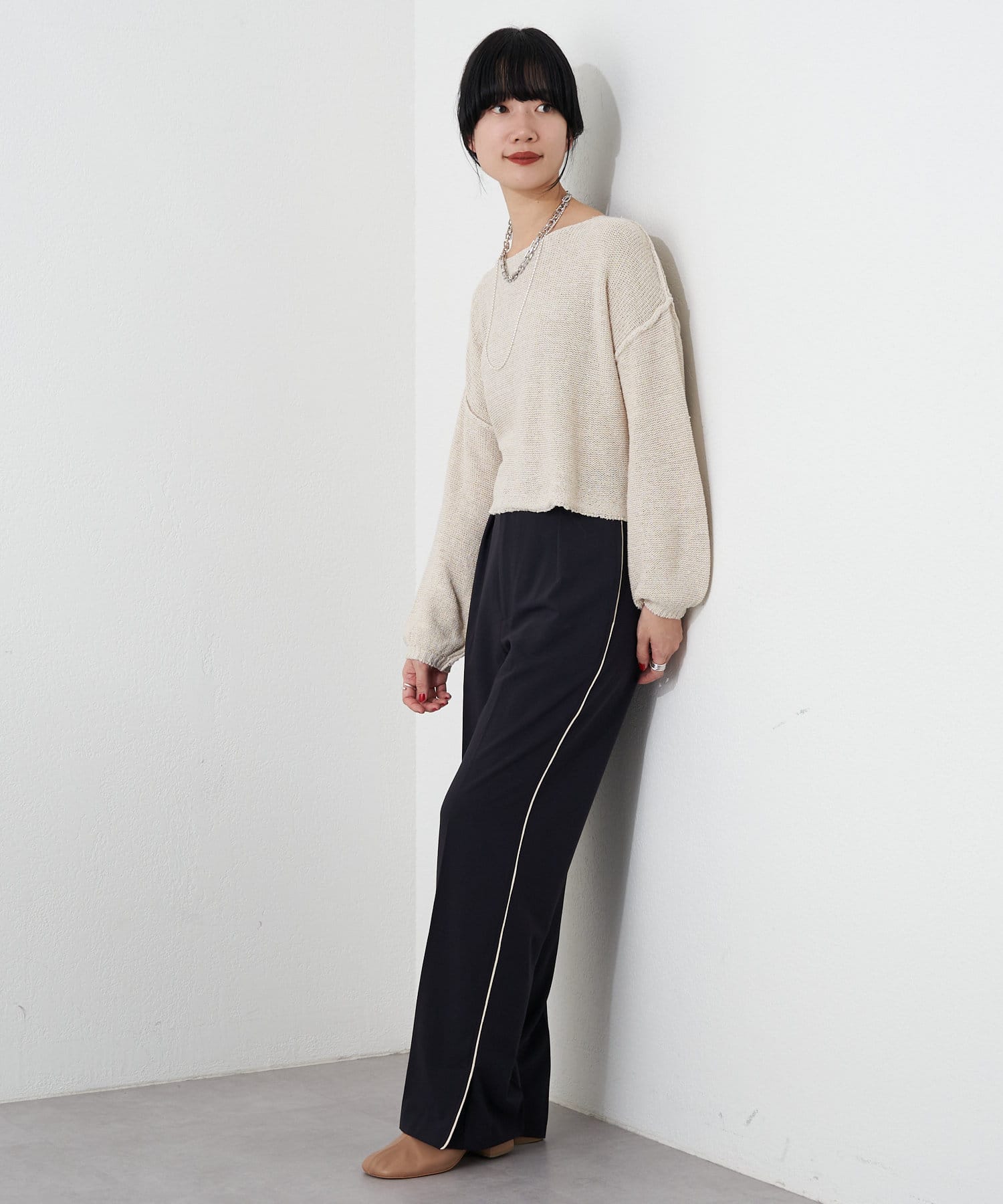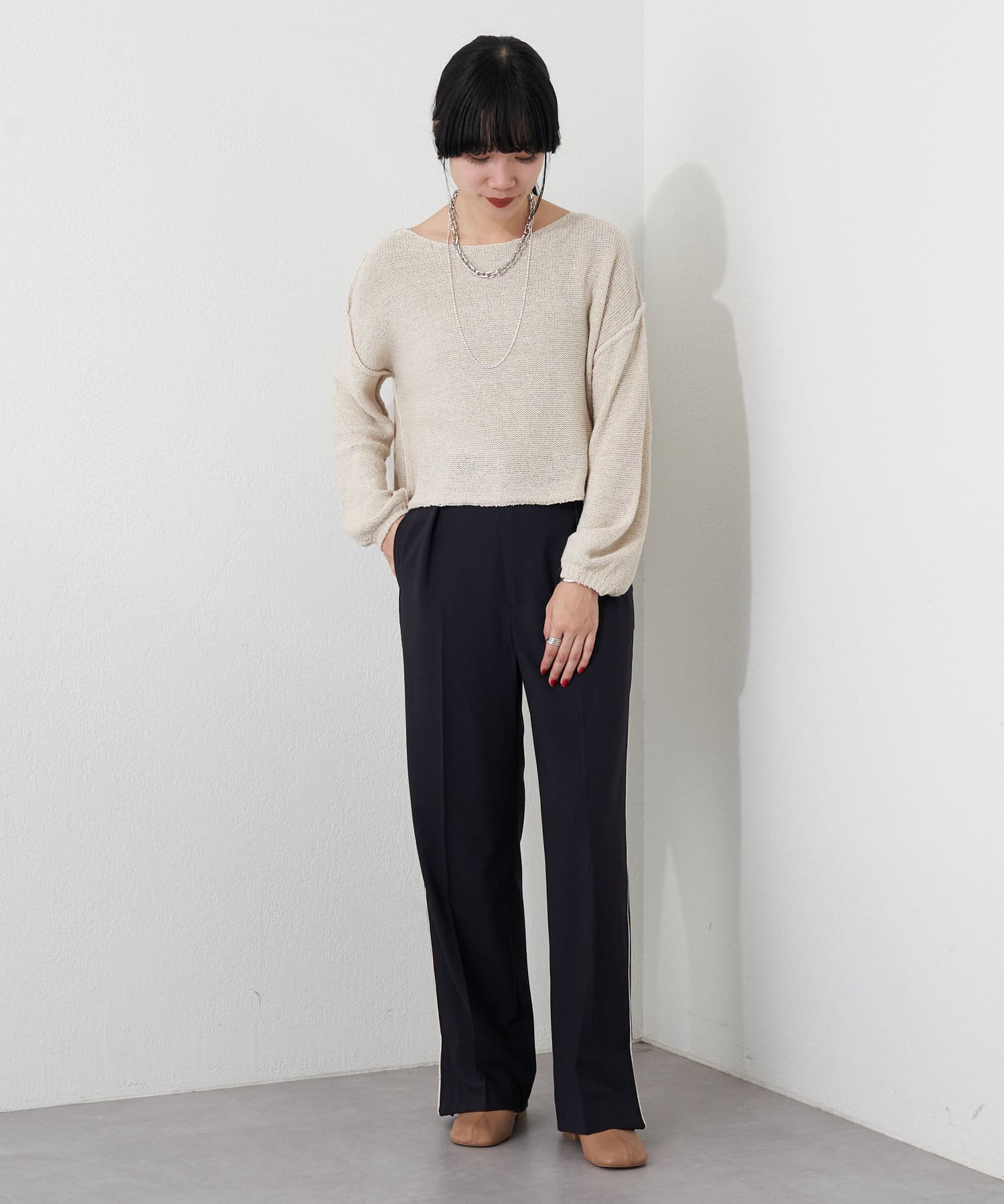 ♦サイドに施したラインコードが目を引くセンタープレス入りのパンツ